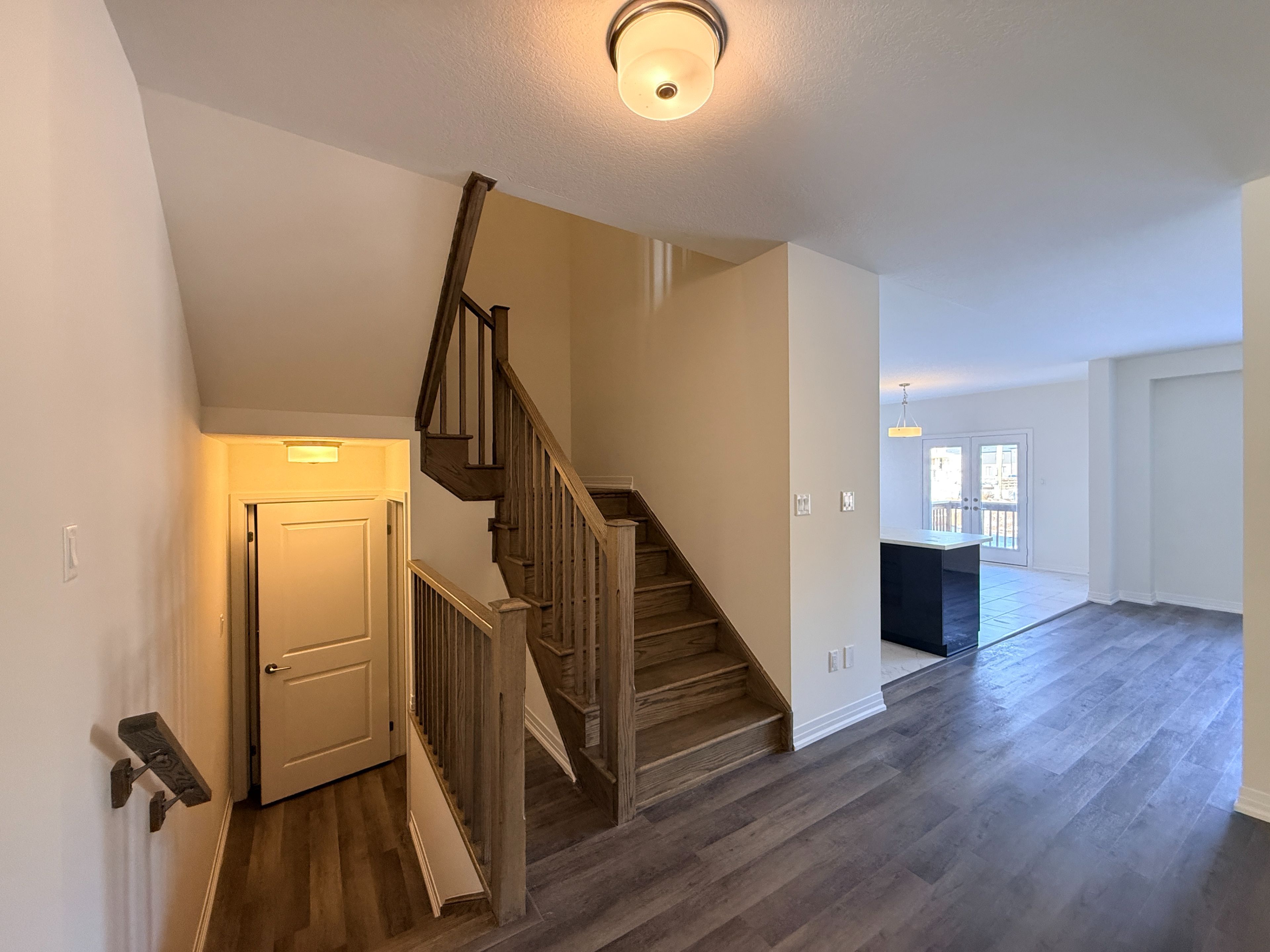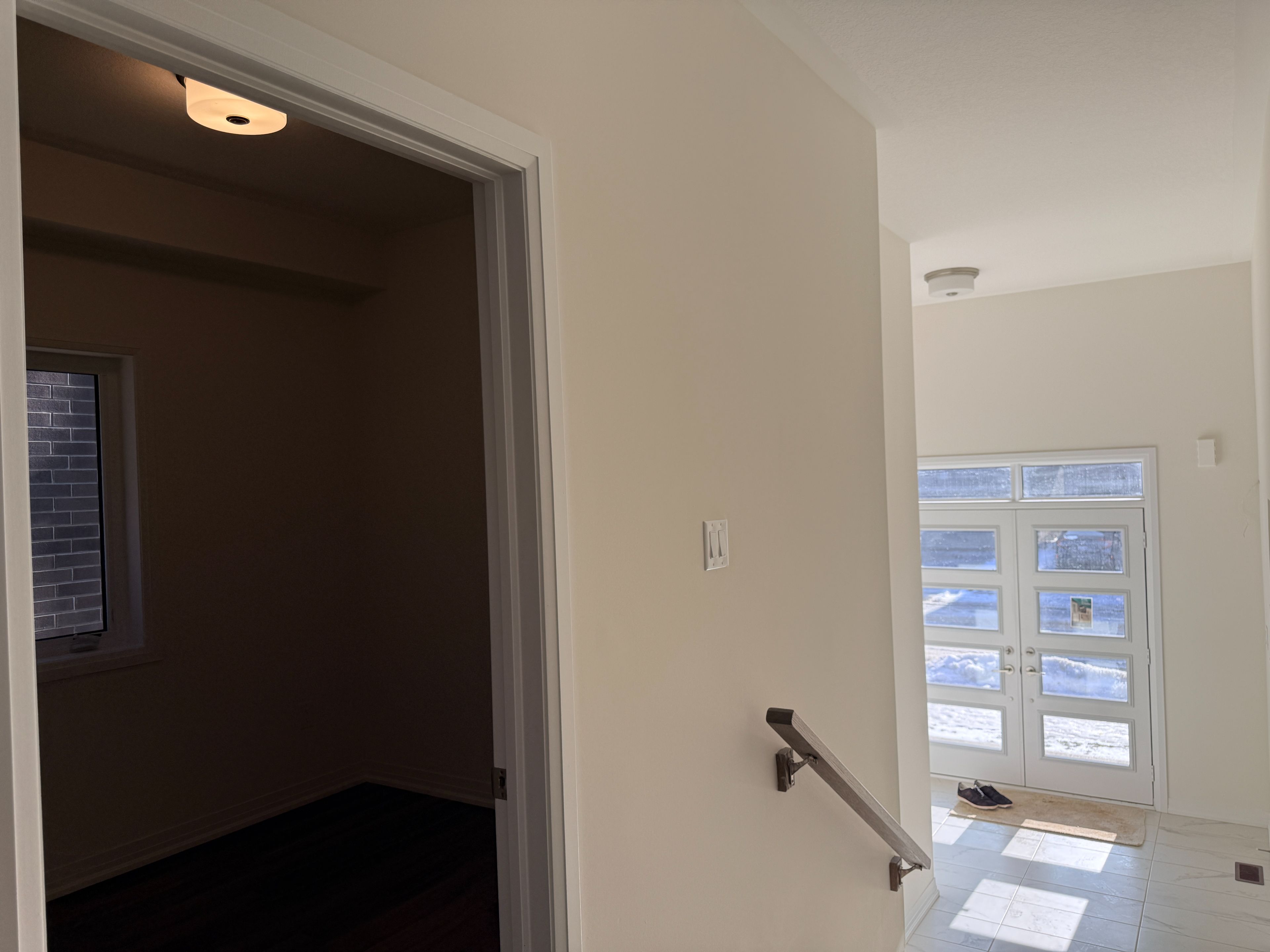Be the first to enjoy this brand-new, over 3,000 sq. Ft. Home located in brantford's newest development. This stunning 5-bedroom, 4-bathroom residence is surrounded by nature trails along the grand river and offers easy access to hwy 403 via the grand oak exit. Built with quality and comfort in mind, this home is filled with natural light throughout. The modern design features 9' ceilings on both the main and second floors. A welcoming front porch leads to a spacious foyer with 10' ceilings, glass doors, and a coat closet. The main hallway showcases a hardwood staircase and an open-to-above design. The open-concept great room features transom windows that maximize natural light and flows into a bright corner living area with four large windows overlooking mature trees. The new high-gloss kitchen offers ample counter space, a breakfast bar seating four, and a breakfast area with a walkout to the deck and backyard. The main floor also includes a laundry room with new appliances coming soon and inside access to the garage. The oversized double garage is bright and airy, complete with glass doors. Upstairs, a sun-filled hallway with a large window leads to the bedrooms. The spacious primary suite features multiple windows, a luxurious ensuite with a freestanding tub and separate shower, and an oversized walk-in closet. The second, third, and fourth bedrooms are generously sized, while the fifth bedroom offers its own private 4-piece ensuite and walk-in closet. Hardwood stairs lead to a large, bright basement with a rough-in for an additional bathroom, offering excellent future potential. Brantford offers via rail service to toronto's union station, access to conestoga college, six nations polytechnic, and wilfrid laurier university, along with a strong industrial base and a beautiful natural setting along the winding grand river.