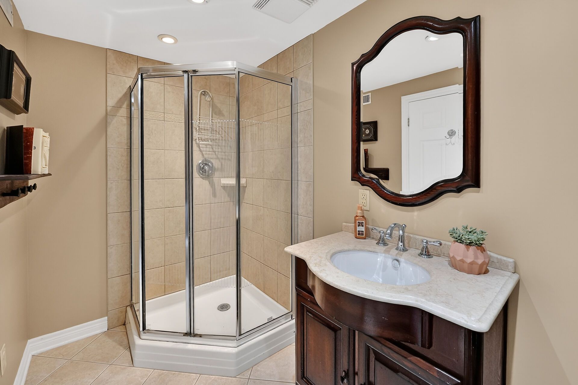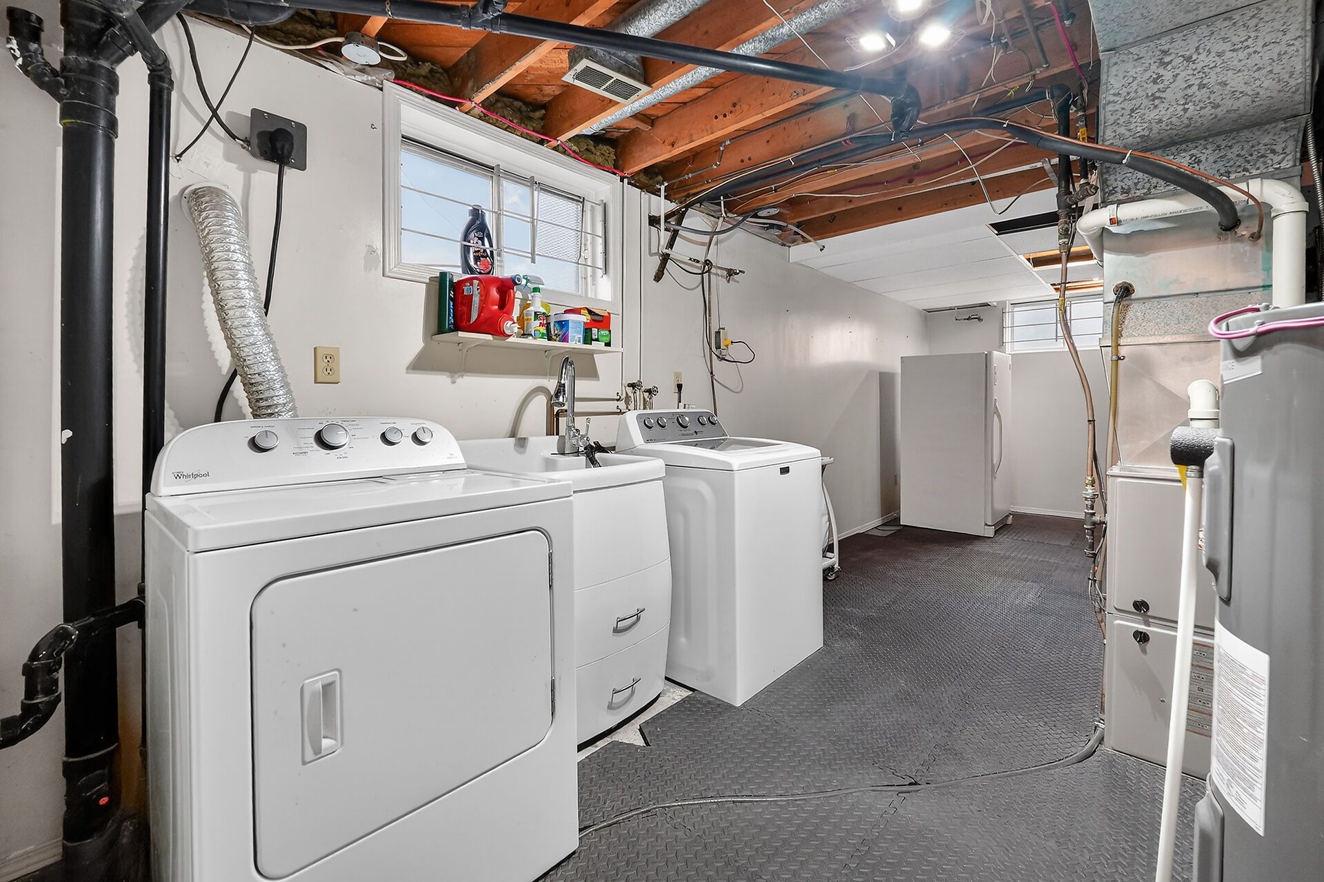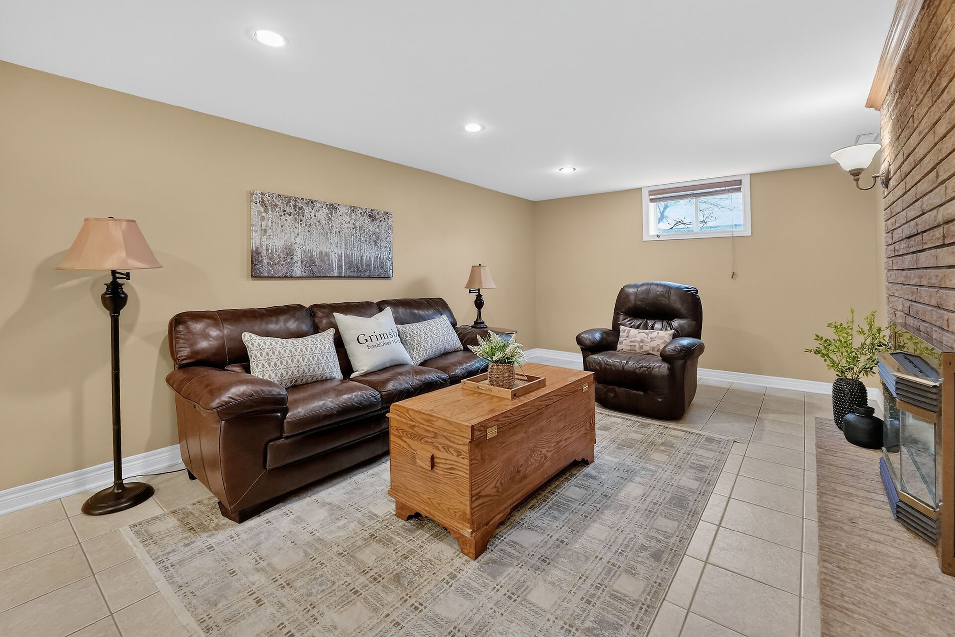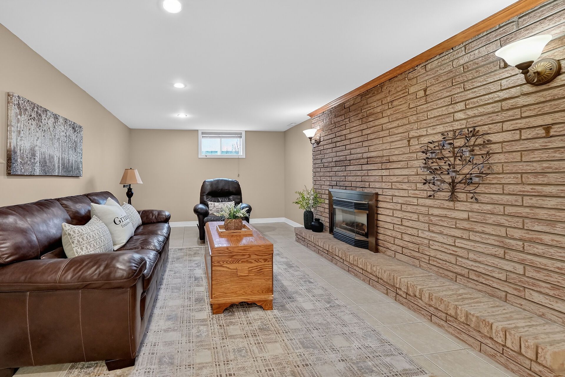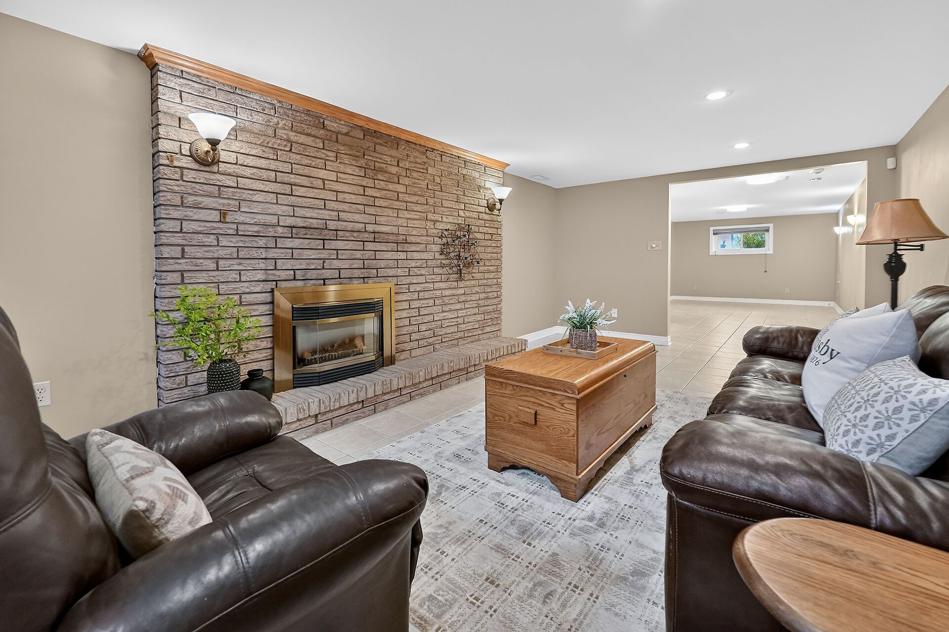 • Finished lower level with recreation room, gas fireplace, and versatile spaces.
