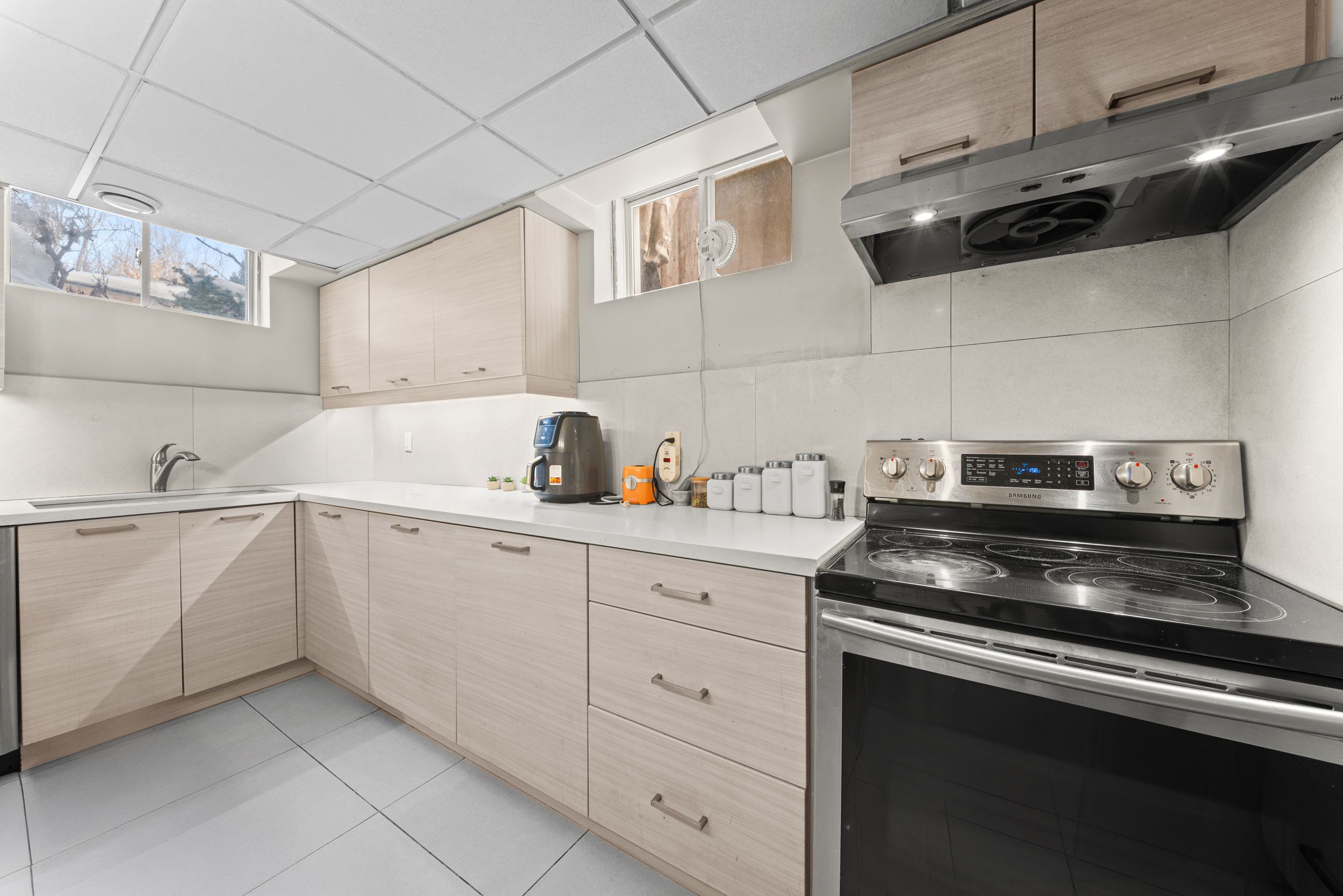 • Fully finished basement with a fireplace and second kitchen for guests.