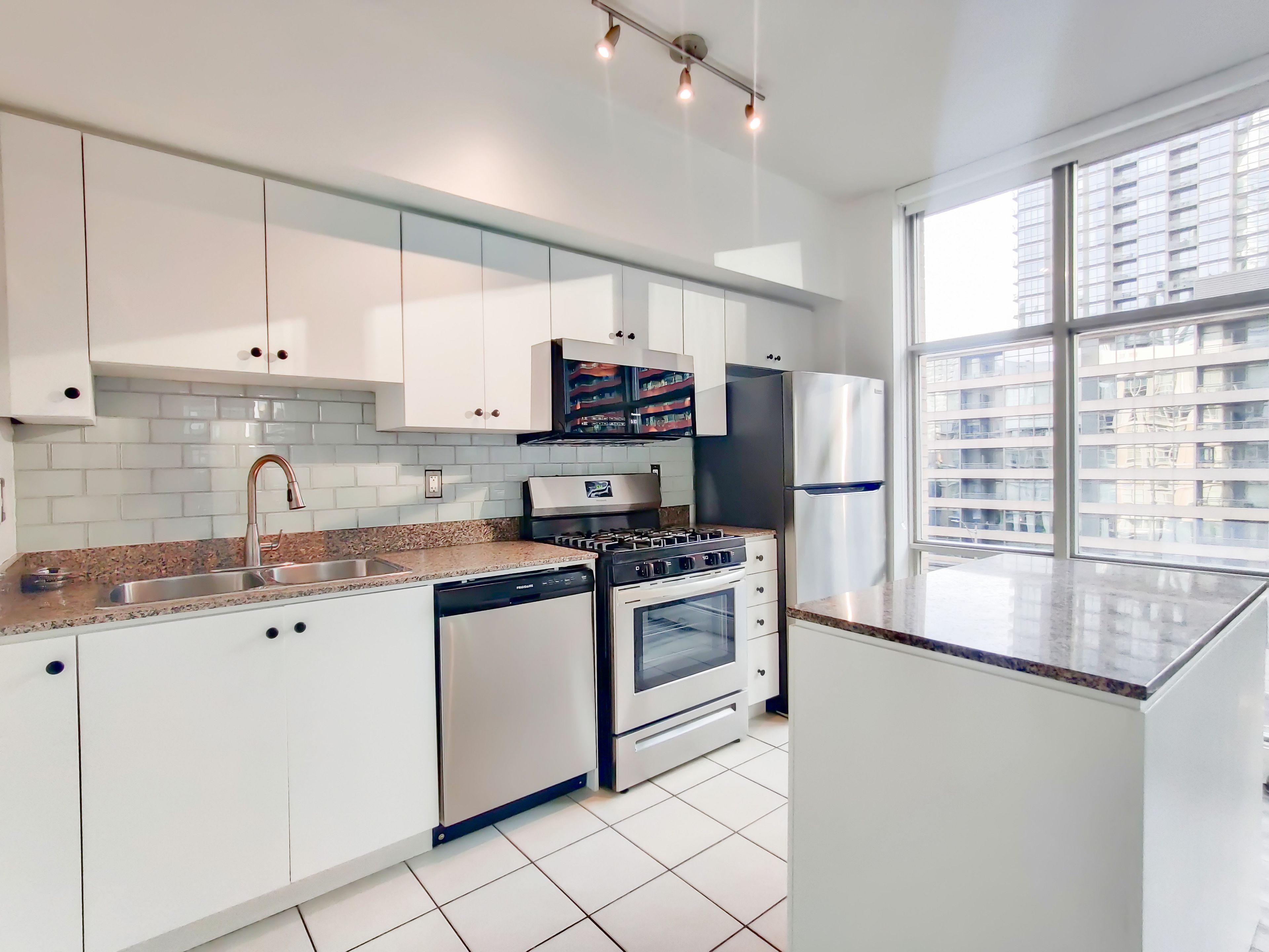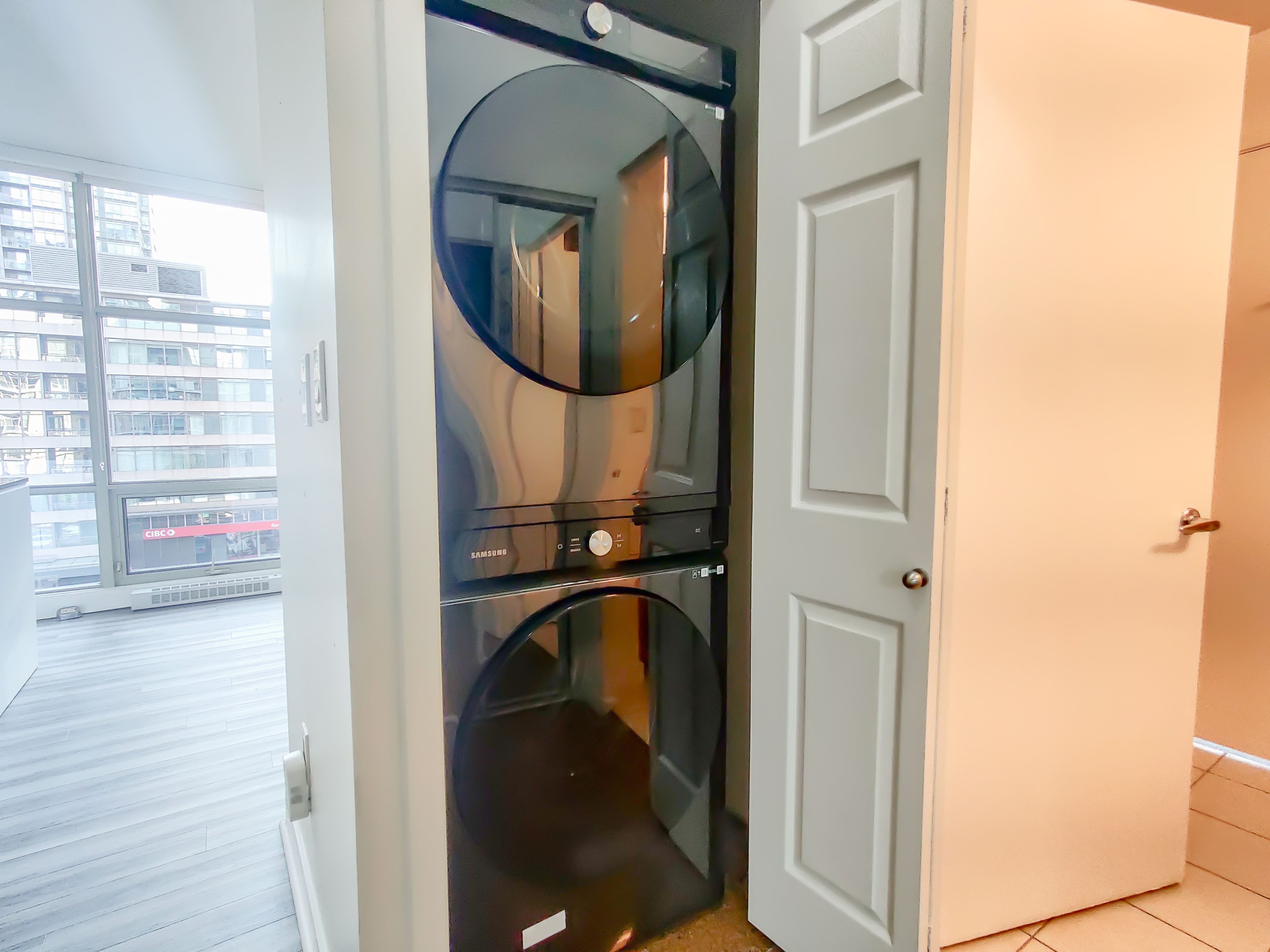 In the center of the financial and entertainment district lies this home! Welcome to 9 spadina, steps away from the waterfront and many restaurants such as starbucks, and the cn tower. This condo enjoys a 30,000 sq ft mega facility which features a pool, gym, basketball court, tennis, track, golf simulator, karaoke, and many more! Right outside public transport and the highway, and one of the bigger corner units in the building, you do not want to miss this! 1 parking is included **extras** existing: s/s appliances: fridge, stove, range hood, dishwasher. Washer/dryer and window coverings, all elfs.
