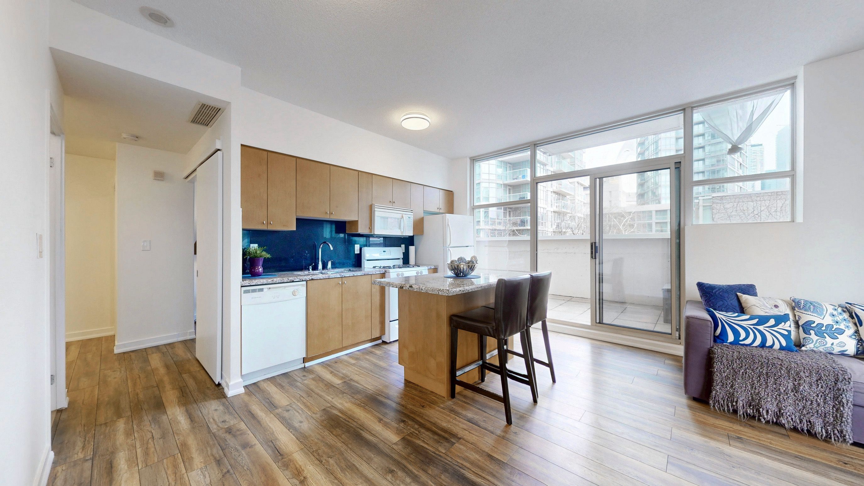 *welcome to harbour view estates in the heart of downtown *rare corner split bedroom layout *9ft ceilings, floor to ceiling windows, laminate flooring throughout & freshly painted *sought after walk-out from kitchen to private sun filled 200+ sf terrace *all-inclusive maintenance fees offers a fantastic value for a unique boutique building *parking space is conveniently located close to the elevator *enjoy full access to 30,000 sqft city place superclub featuring a 25-metre indoor pool, full-size basketball, tennis & squash courts, bowling lanes, billiards, fully equipped gym w/running track, private theatre, party rooms and more *easy highway access, but also steps away to ttc *walk to the well shops & restaurants, coffee shops, restaurants, canoe landing park and community centre, supermarkets, rogers centre and scotiabank arena *minutes to fort york library, queen west, king west, financial district, metro toronto convention centre, and union station (via rail/go transit/up express) *1 parking & 1 locker *don't miss this opportunity to move in and enjoy