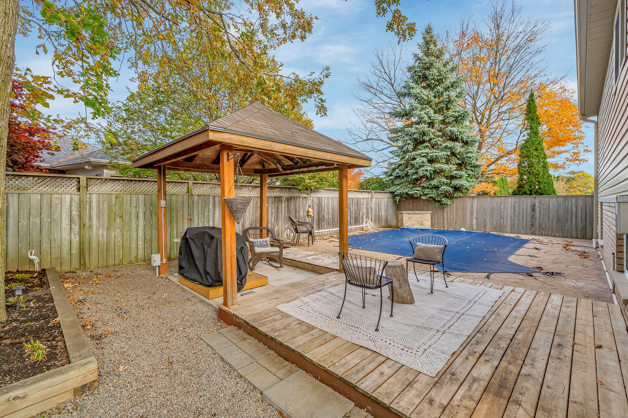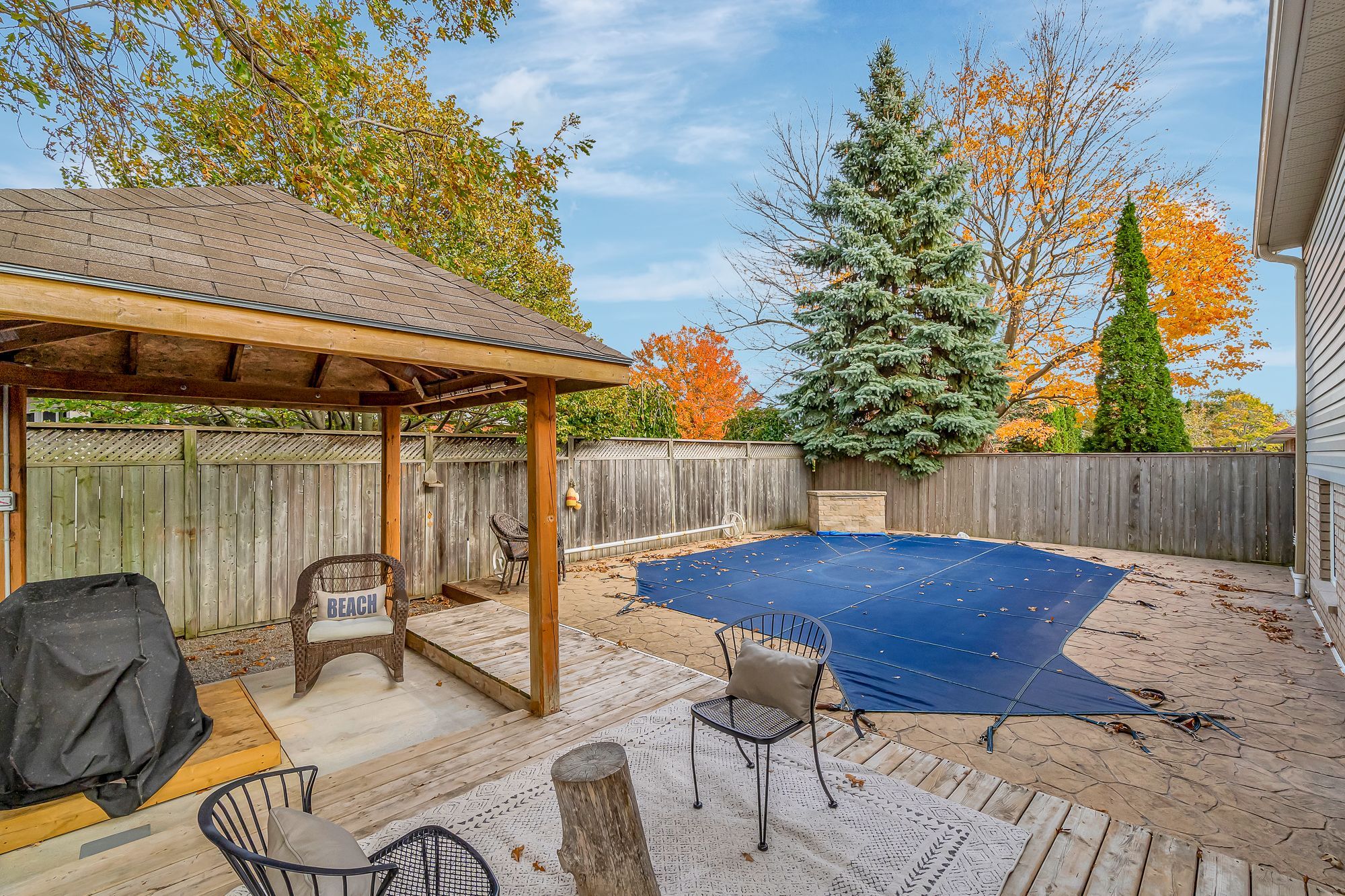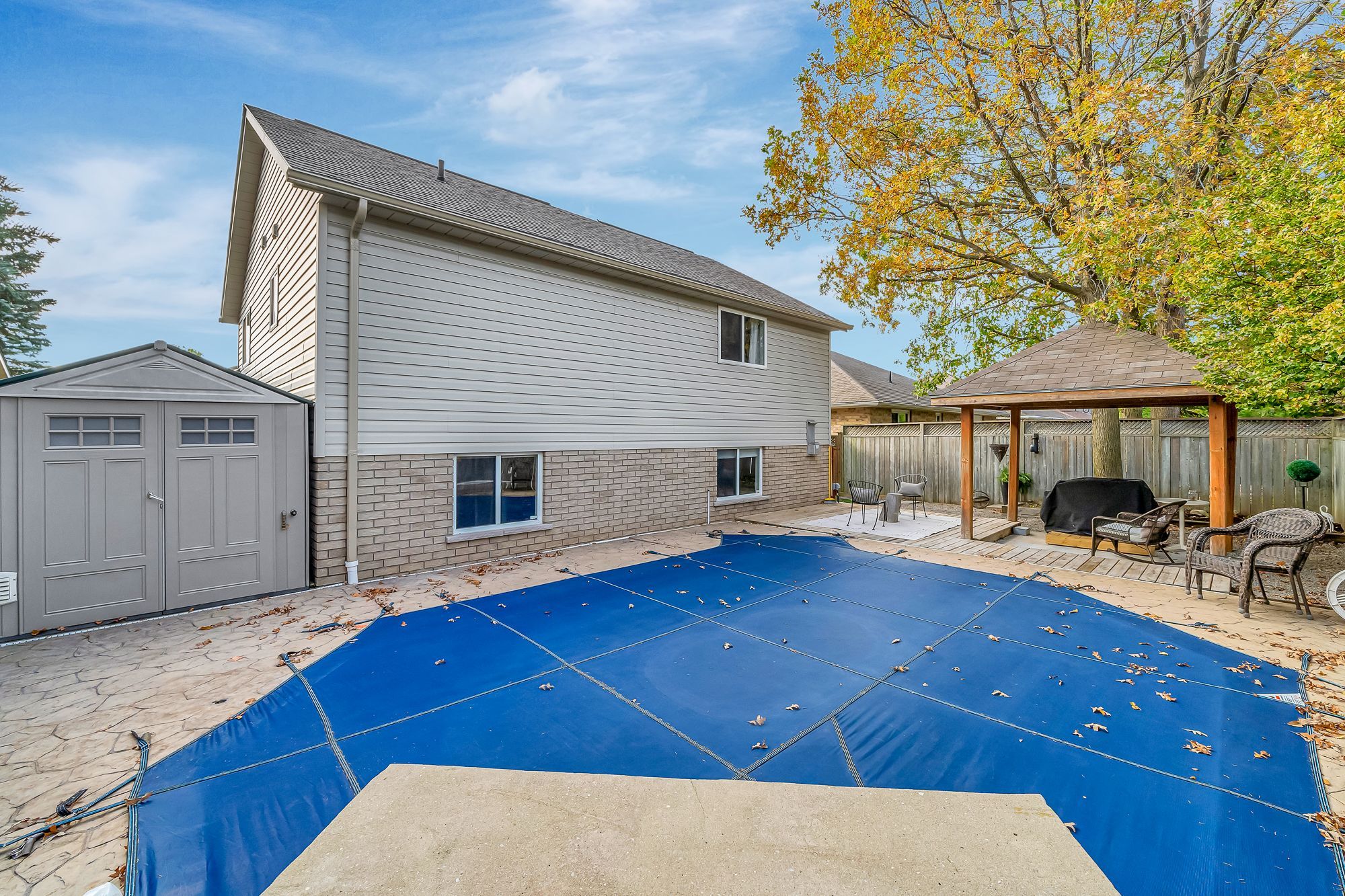 Welcome to 9 spruce gardens, a beautifully updated modern four-level backsplit in belleville's sought-after stanley park subdivision. This home is larger than it appears, offering exceptional space, natural light, and thoughtful updates throughout. The main level features a bright open-concept living, dining, and kitchen area - perfect for entertaining - overlooking a stunning family room with a cozy gas fireplace and a bonus room for your convenience - a fourth bedroom, office, or flexible space to suit your needs. A full bath, laundry area, and walkout to your private backyard oasis complete this level. Step outside to enjoy the heated, 15x20 saltwater in-ground pool, surrounded by a landscaped patio and fully fenced yard. The property also includes an in-ground sprinkler system for both the lawn and gardens, creating a lush, low-maintenance retreat. Upstairs, the home offers three immaculate bedrooms, including an oversized primary suite with a walk-in closet and spacious bathroom - a rare find in this style of home. The lower level provides a versatile rec room or optional additional bedroom, perfect for guests, hobbies, or home office needs. Recent updates include a new furnace (2024), hrv system (2020), eavestroughs, and garage door, along with tasteful cosmetic renovations throughout. This home truly blends comfort, style, and convenience - all just minutes to shopping, parks, schools, and belleville's east-end amenities. A hidden gem in one of the city's most desirable neighborhoods -9 spruce gardens is ready to welcome you home.