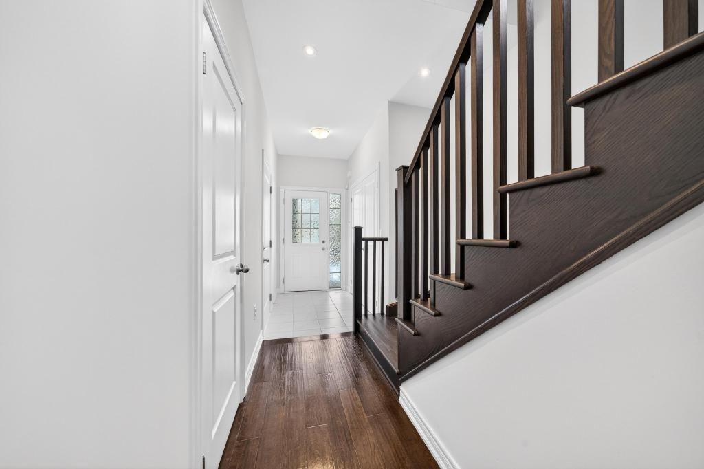 Welcome to 9 starling dr - a stylish semi-detached offering 3 bedrooms and 3 bathrooms in a bright, functional layout that's perfect for families, first-time buyers, or investors. Hardwood flooring runs throughout the main and second floors, complemented by an upgraded hardwood staircase and pot lights for a clean, modern feel. The main level features a spacious living area and formal dining space, ideal for everyday living and entertaining. The kitchen is both practical and polished, complete with quartz countertops, stainless steel appliances, a pantry, and ample storage. Upstairs, you'll find three generous bedrooms, including a comfortable primary retreat with an ensuite bath, and two walk-in closets. The basement offers large windows, a laundry room, as well as a rough-in, leaving it open for endless possibilities. Step outside to a professionally interlocked private backyard, accessible from both the living and dining rooms - perfect for summer gatherings or quiet evenings at home. Located just minutes from schools, recreation centres, parks, goodlife fitness, cf lime ridge mall, grocery stores, and countless restaurants, this home delivers comfort and convenience at your doorstep.