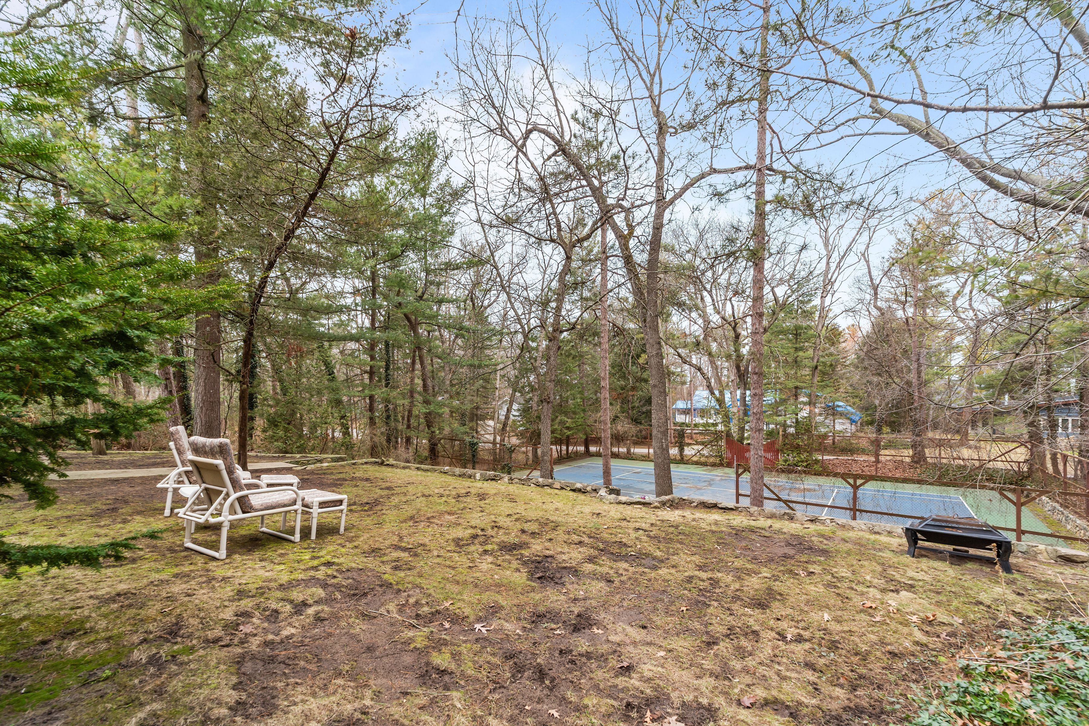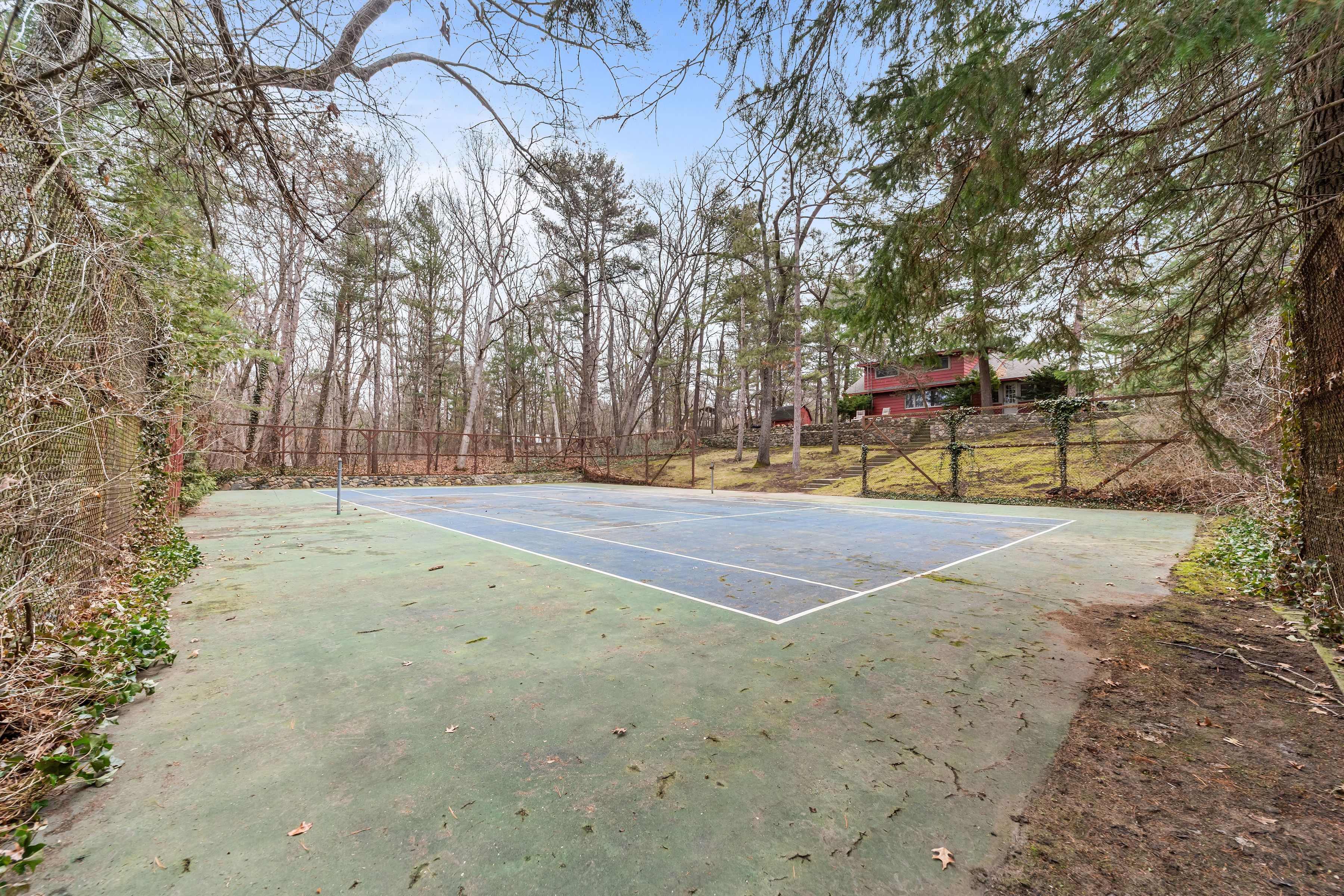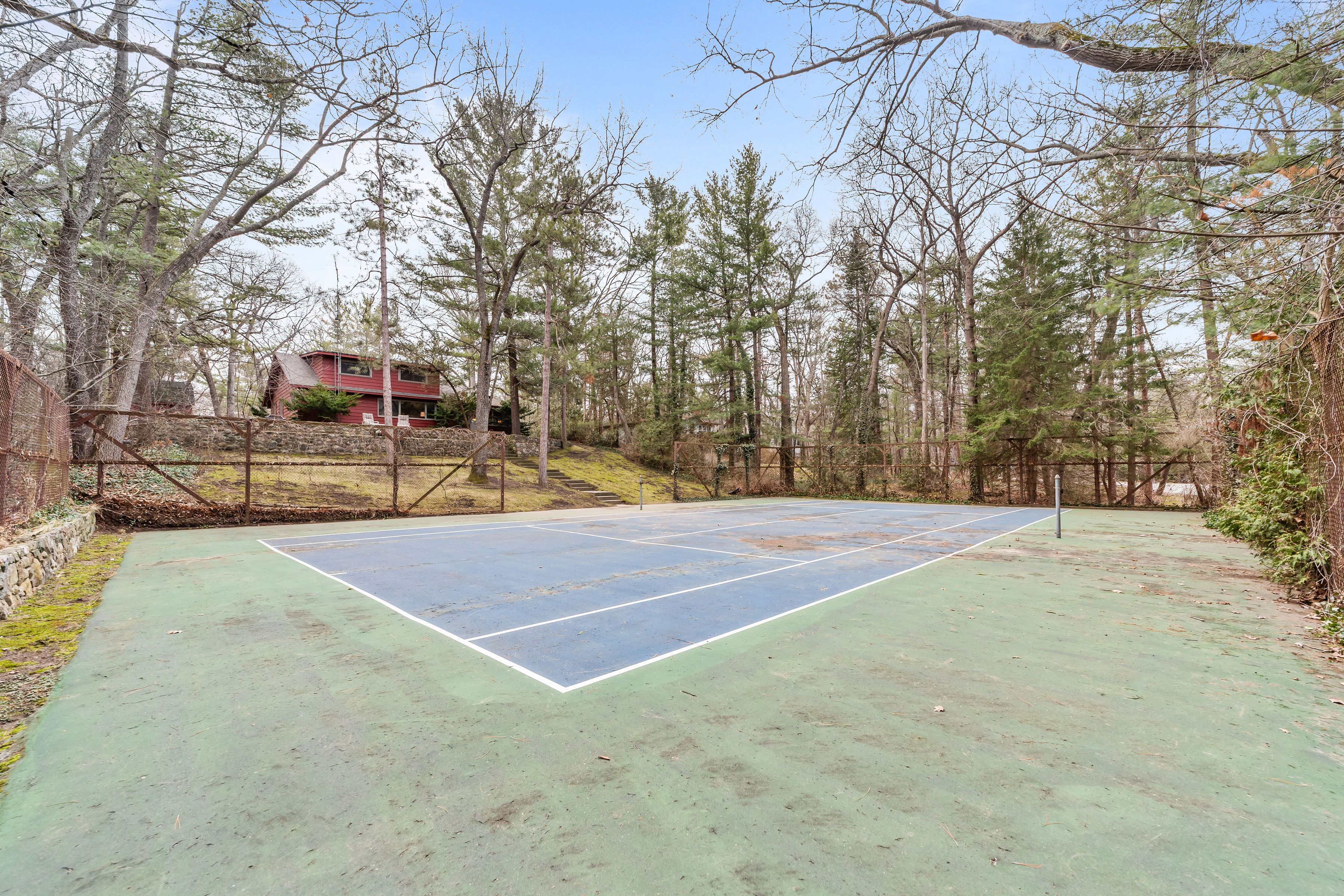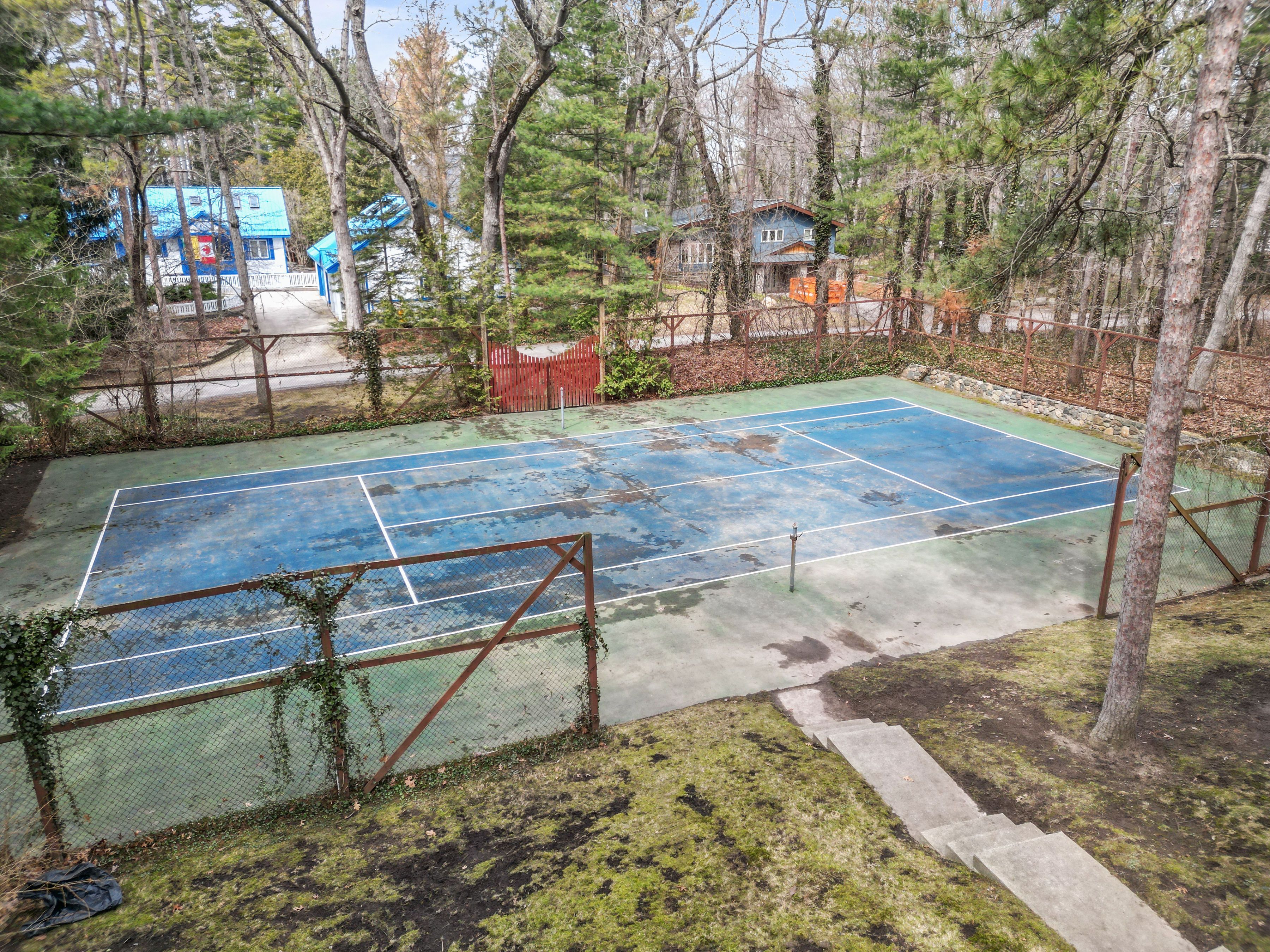 • Spacious treed lot with dual access and a private tennis court.