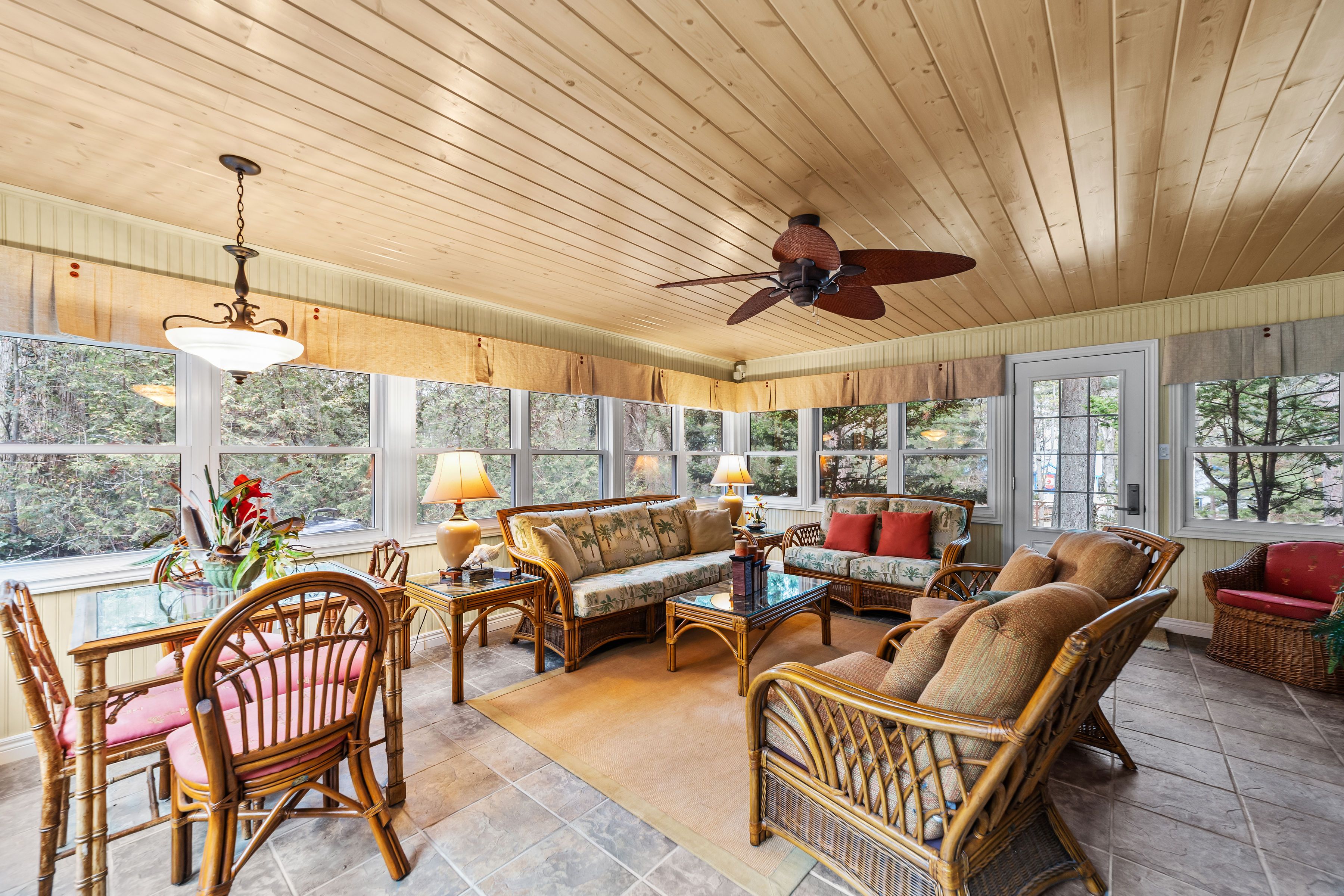 Set on an huge treed lot measuring approximately 99. 23 ft x 261. 77 ft with dual access from both the front and rear, a private tennis court, and exceptional entertaining spaces on both sides of the property, this is one of the rarest offerings available in oakwood park. If you've been trying to get into a private beach community in grand bend, this is one of the few chances you'll get. Perched up on a hill and surrounded by mature trees, the setting delivers a level of privacy and presence that's almost impossible to replicate. The depth of the lot creates multiple outdoor living zones, whether you're hosting, relaxing, or just trying to escape everyone for five minutes. The home itself is full of original charm, warm, inviting, and full of character you just don't get in newer builds. A gorgeous sunroom floods with natural light and acts as the heart of the home, while the tucked-away dining area, wrapped in windows, creates a quiet, almost hidden space to gather. Step outside and you'll find a fully enclosed tennis court, giving the property a true lifestyle edge that's rarely seen in this community. Combined with ample parking and the ability to access the property from both the front and back road, the functionality here is just as strong as the experience. From your front door, it's a short 2-3 minute walk along private paths to exclusive resident-only beach access, offering a quiet, sandy stretch of lake huron shoreline without the crowds. Oakwood park is a gated, tightly held lakefront community on the north side of grand bend, known for its privacy, private beach, and proximity to everything while feeling completely removed from it. Freehold ownership with an annual fee of approximately $800 covers private roads, beach access, and community upkeep.