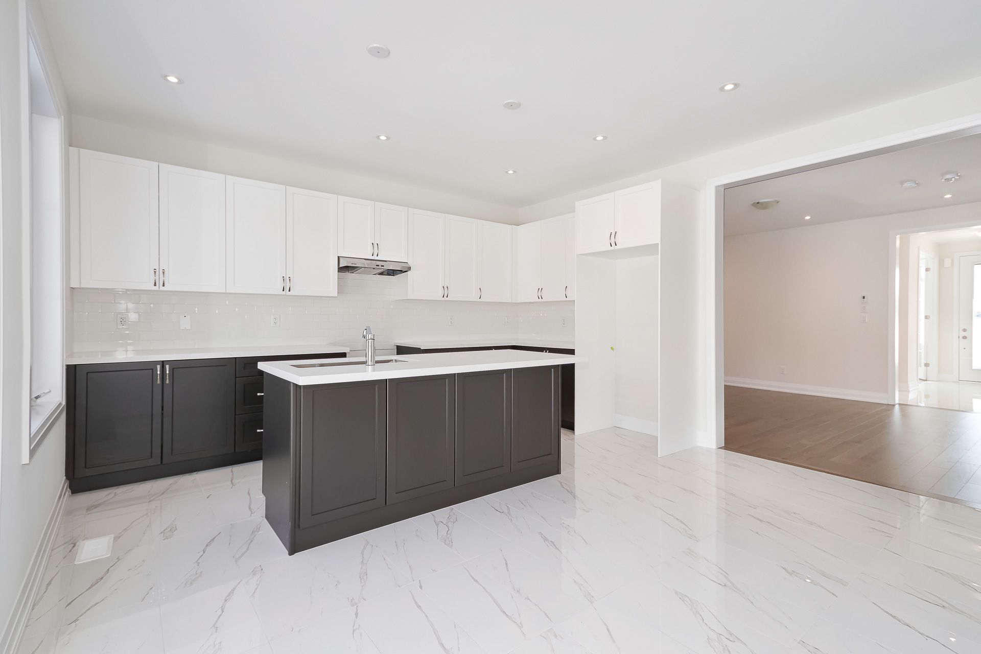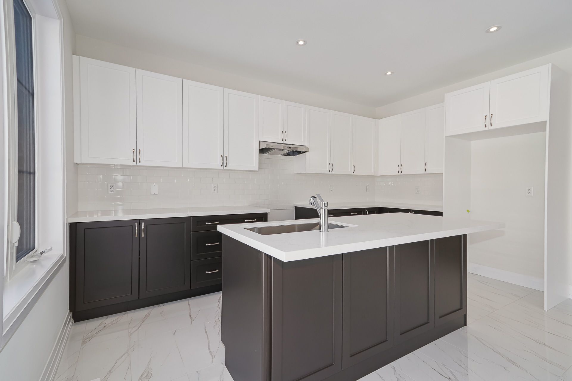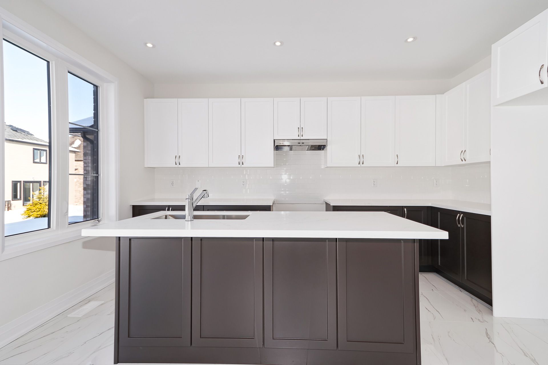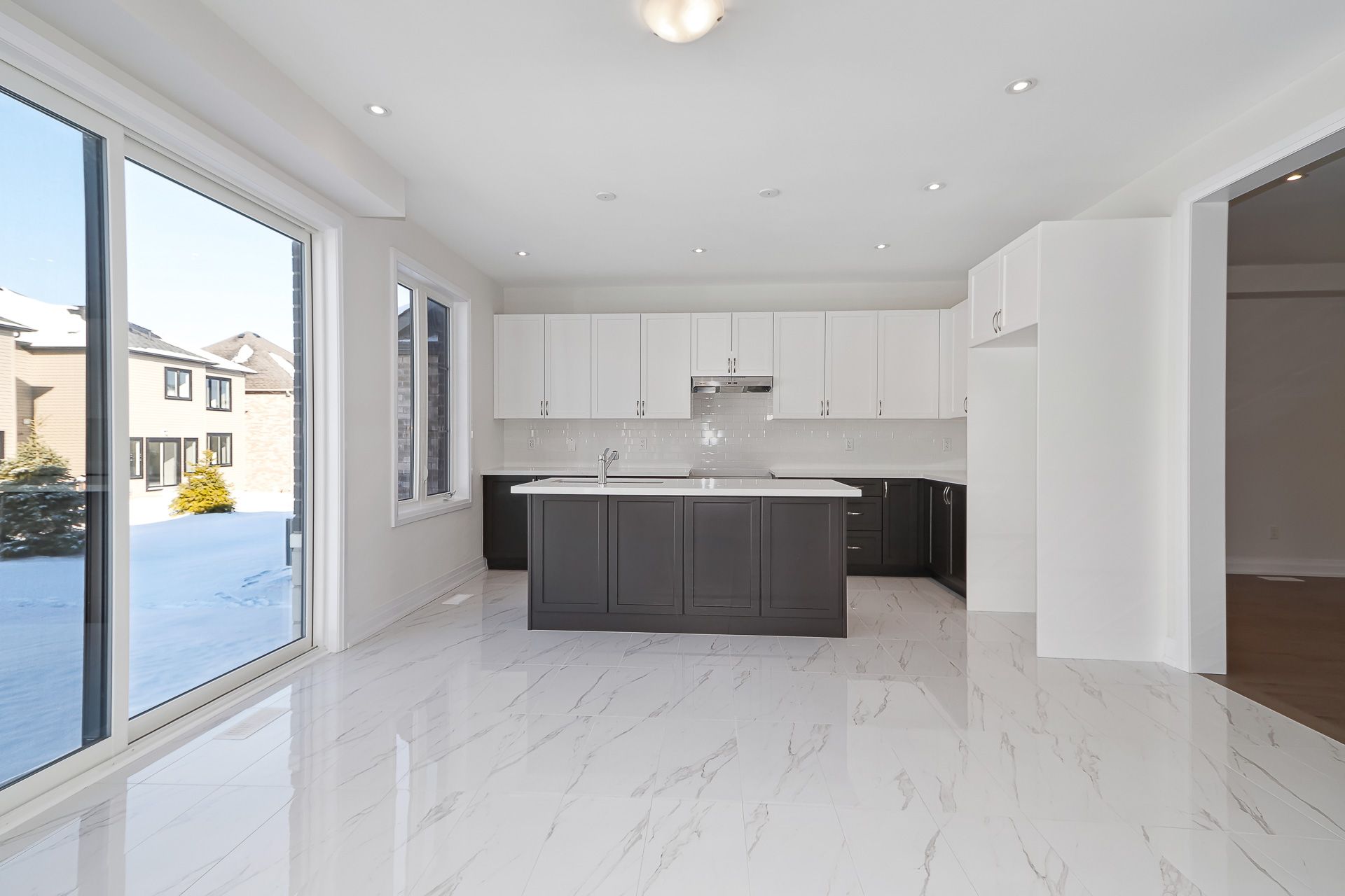 • Modern kitchen with a center island, perfect for entertaining guests.