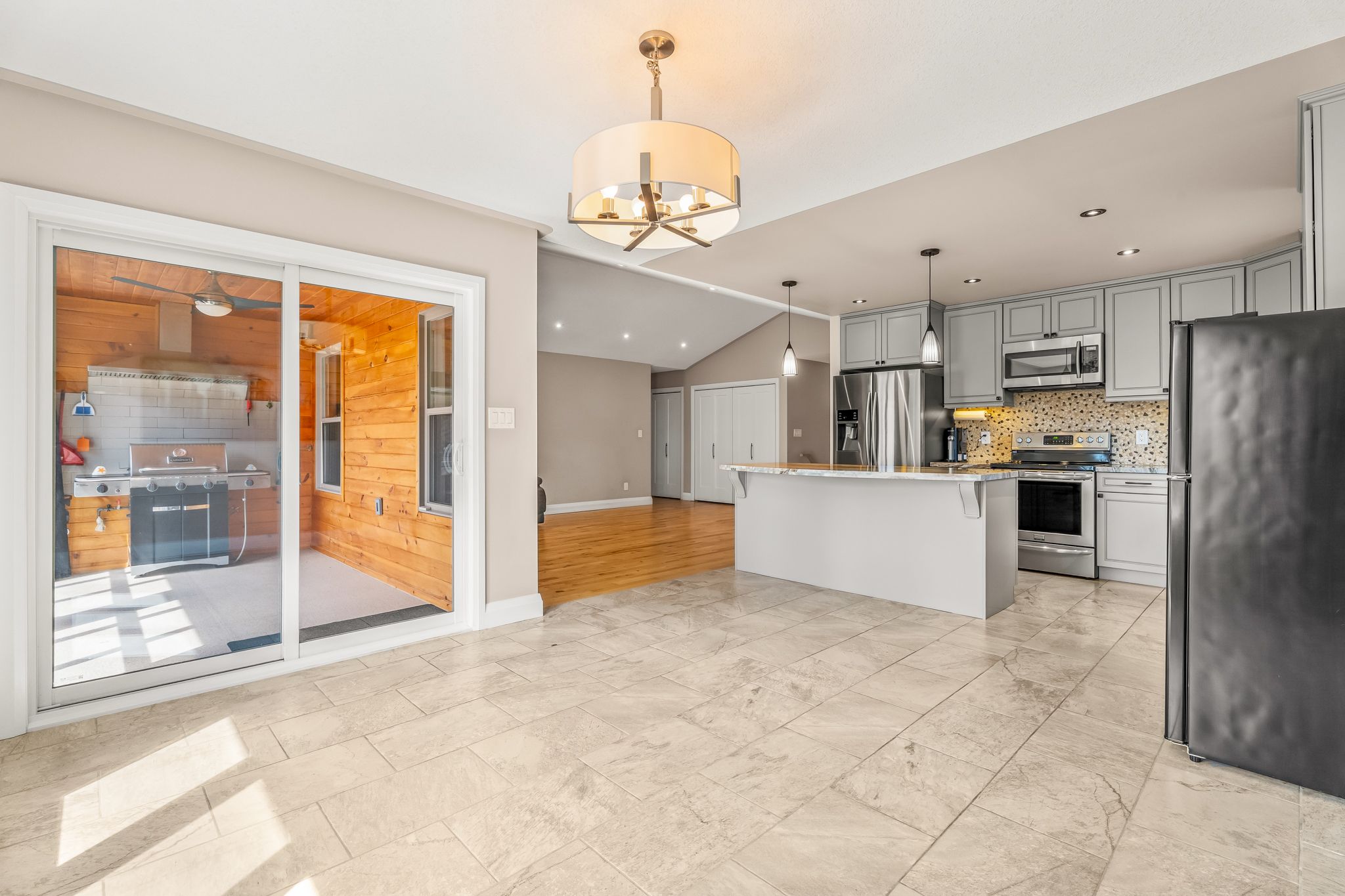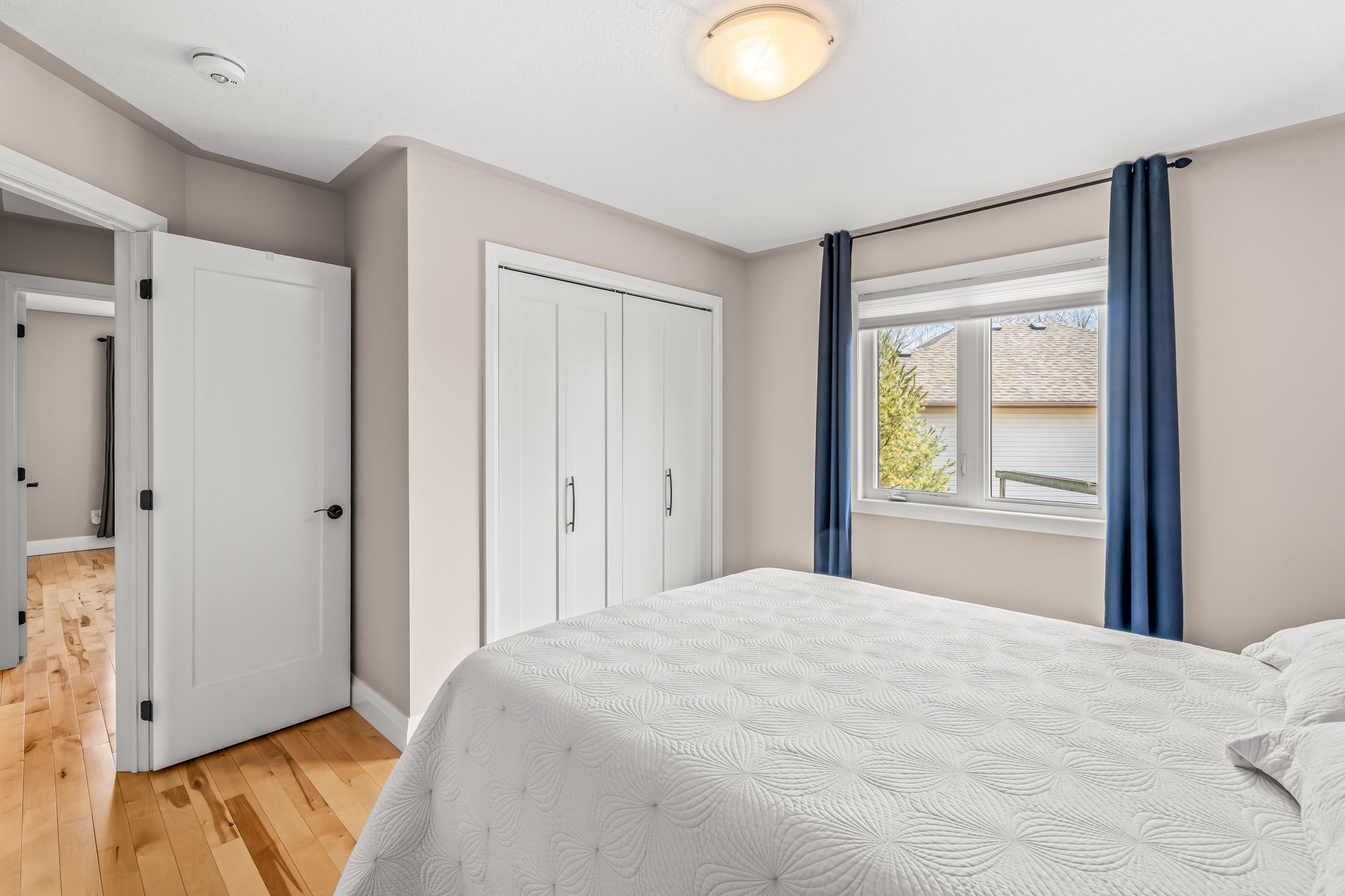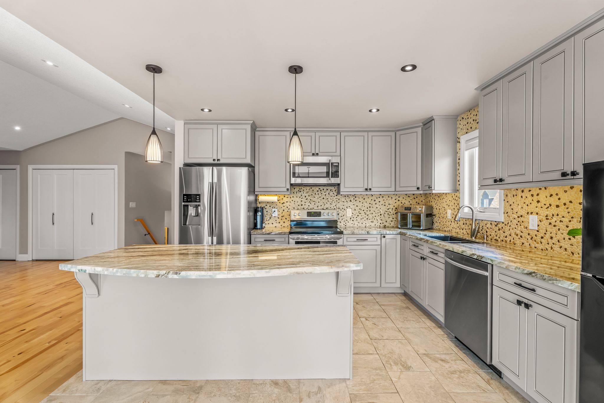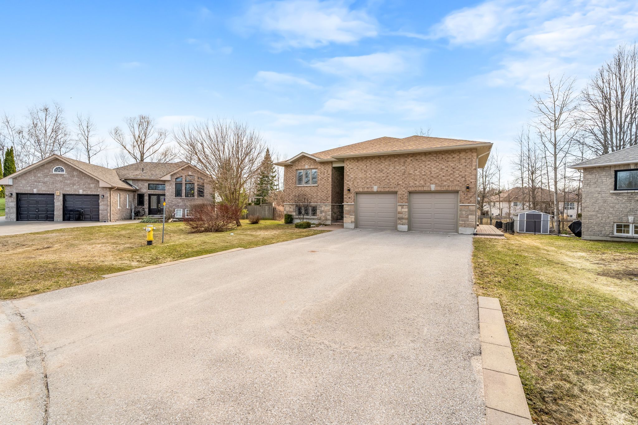 Your family's next chapter might be waiting in wasaga beach in the sought-after royal beech / blueberry trail area - this stunning custom-built raised bungalow offers the kind of space families dream about . Built in 2017 by a custom builder, this well-maintained raised bungalow offers approximately 3,200 sq ft of finished living space with room for everyone to live comfortably under one roof. The main level features an open-concept layout with vaulted ceilings, maple hardwood flooring, and a natural gas stone fireplace-creating a warm and inviting space for everyday family life. The kitchen is thoughtfully designed with custom cabinetry, granite countertops, backsplash, soft-close drawers / cabinets , and a large island perfect for meals, homework, and entertaining. The primary bedroom includes a walk-in closet and a 4-piece ensuite with soaker tub and separate shower. Two additional bedrooms, a full bathroom, and convenient main floor laundry complete this level. Walk out to the upper deck, enclosed with a plexiglass garage-style door, offering a versatile 3-season space for relaxing or hosting. The fully finished lower level provides incredible flexibility for extended family, older children, or guests, featuring 3 additional bedrooms, a full kitchen, bathroom with dual access, separate laundry, and a bright living area with large windows and a walkout to the covered patio. Situated on a fully fenced, pie-shaped lot, this property is ideal for families with kids and pets, including a fire pit area, and inground sprinkler system for easy maintenance. Additional features include; central air conditioning (a/c), hrv, and central vacuum, no carpet throughout, natural gas hookups on both upper and lower outdoor spaces ,double car garage with hot and cold water, storage and loft. Parking for up to 6 vehicles total . Located on a quiet cul-de-sac in a family-friendly neighbourhood. Walking distance to sandy beaches of georgian bay , public schools and shopping .