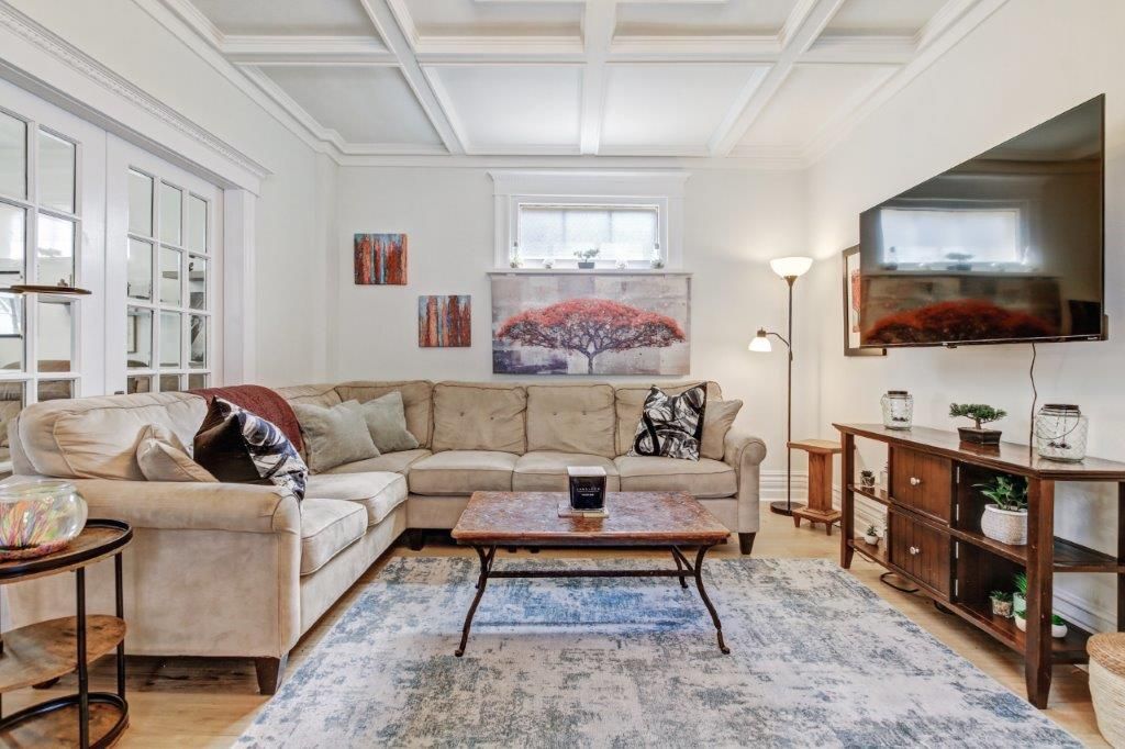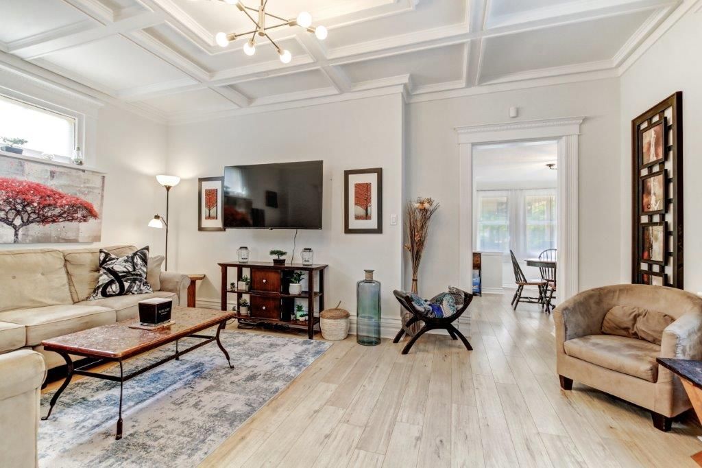 Welcome to 9 sycamore street, a spacious and stylish yellow brick home that beautifully blends timeless character with thoughtful modern upgrades. With 3 bedrooms, 1. 5 baths, and an inviting layout, this two-storey gem offers both comfort and versatility. Step through the classic wooden front door into a bright main level featuring high ceilings, elegant trim, and updated flooring and light fixtures throughout. Just off the foyer, a stunning stained-glass window casts warm light into a flexible front room ideal as a formal dining space, cozy office, or reading nook. French doors lead into the adjoining living room, which impresses with rich coffered wood ceilings and an airy layout perfect for both everyday living and entertaining. At the heart of the home, the modern kitchen showcases custom cabinetry, quartz countertops, a sleek backsplash, stainless steel appliances, and a charming breakfast nook with views of the backyard. A stylish two-piece bath and convenient main-floor laundry area complete the main level, which opens directly onto a brand-new backyard deck, perfect for outdoor dining and summer gatherings. The fully fenced yard offers privacy, space to garden or play, and is already equipped for a hot tub. Upstairs, you'll find three comfortable bedrooms and a full 4-piece bathroom. The clean basement provides generous storage and potential for a workshop, hobby space, or future living area. Located just steps from silverwood park & pool and close to major routes, schools, and everyday amenities, this move-in-ready home is an ideal fit for first-time buyers or families looking for charm, convenience, and lasting value.