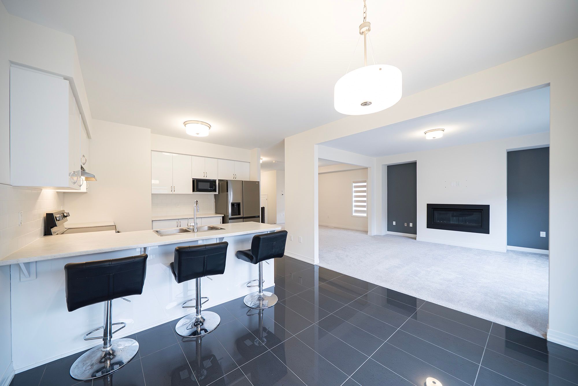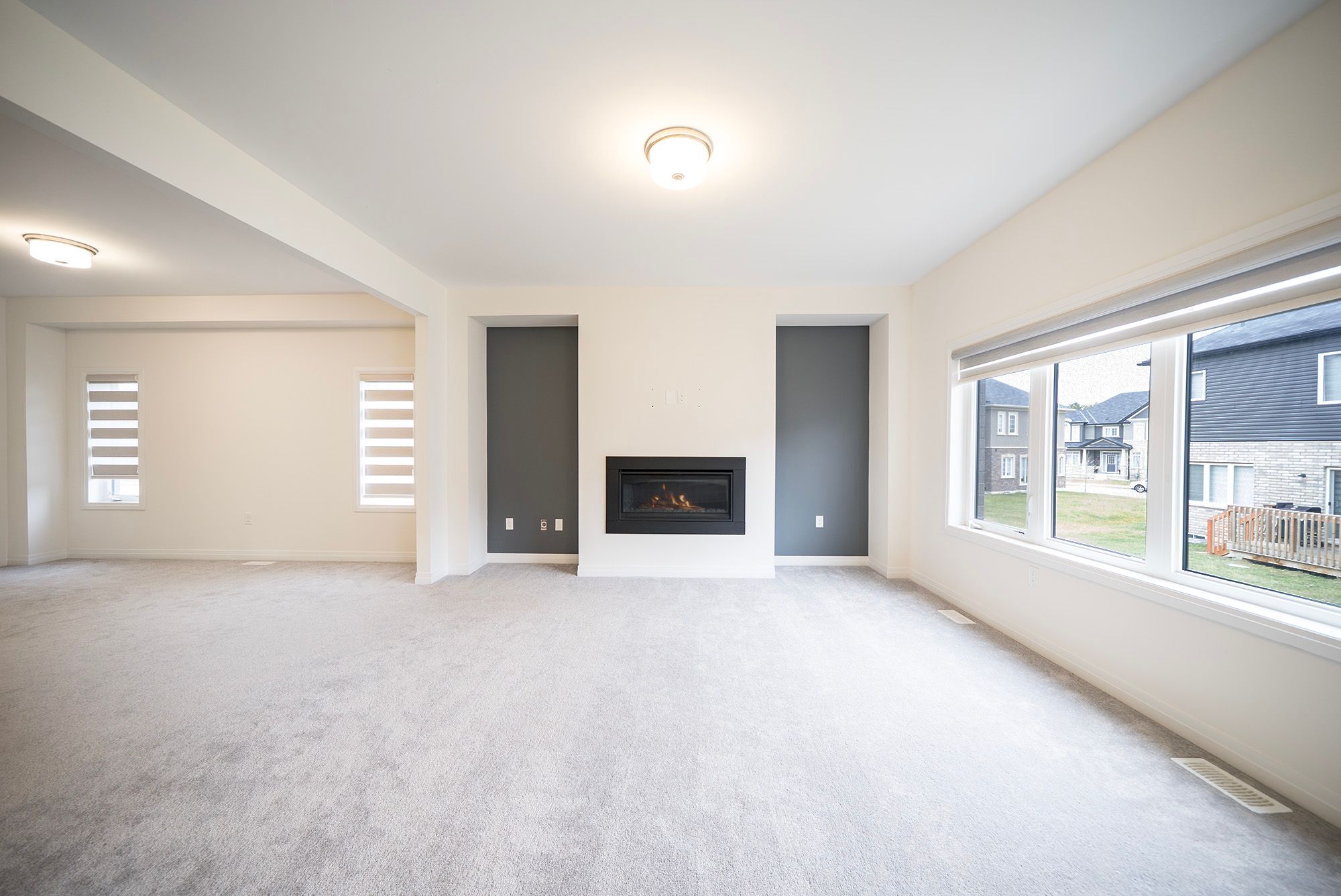 • Open-concept main floor with 9-foot ceilings and a cozy gas fireplace.