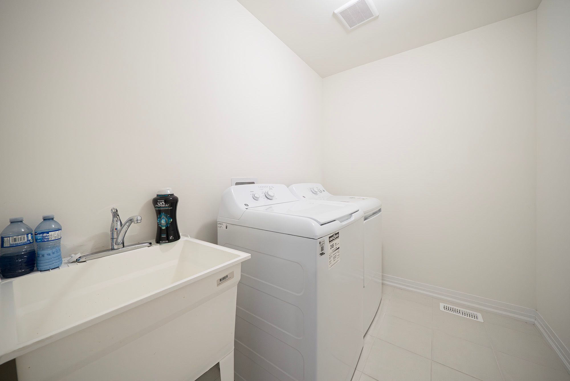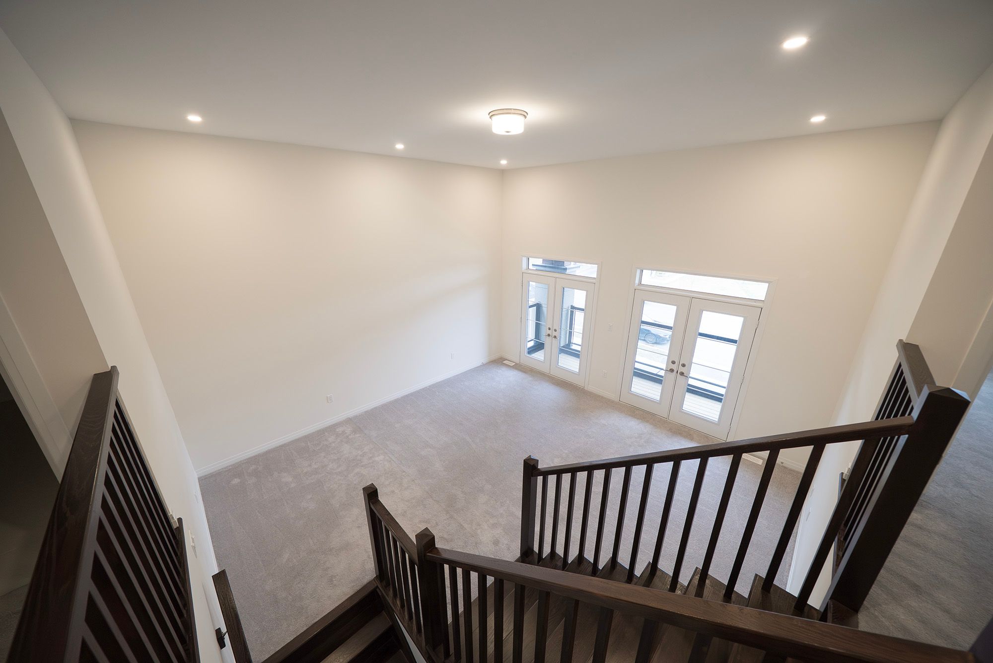 Welcome home to 9 tarrison street in brantford, a stunning two-storey home located in brantford's nature's grand community by liv. The well-maintained exterior features an attached two-car garage and double-door entry. This spotless 2,519 sq ft home offers 3 bedrooms and 2. 5 bathrooms. The tiled front foyer includes a large closet and a 2 piece powder room. The main floor features 9 foot ceilings and an open-concept layout defining the dining and living rooms, with the living room featuring a gas fireplace. This space connects seamlessly to the spacious kitchen and light-filled breakfast room, with a sliding door to the rear of the home. The bright kitchen features crisp white cabinetry and stainless steel appliances, including a built-in dishwasher. An oak staircase leads to a spacious upstairs family room with recessed lighting and two sets of double french doors opening to a balcony above the garage, overlooking the front of the home. A few steps up is the bedroom level, which offers 3 bedrooms, including a primary bedroom with a walk-in closet and a 4 piece ensuite featuring a tub and separate shower. This level also includes a 4 piece bathroom and a convenient laundry room. The unfinished basement offers high ceilings, large windows, and a 3 piece rough-in. The backyard features a deck off the rear of the home, providing easy indoor/outdoor living. Located in a growing, family-friendly neighbourhood minutes to the grand river and highway 403.
