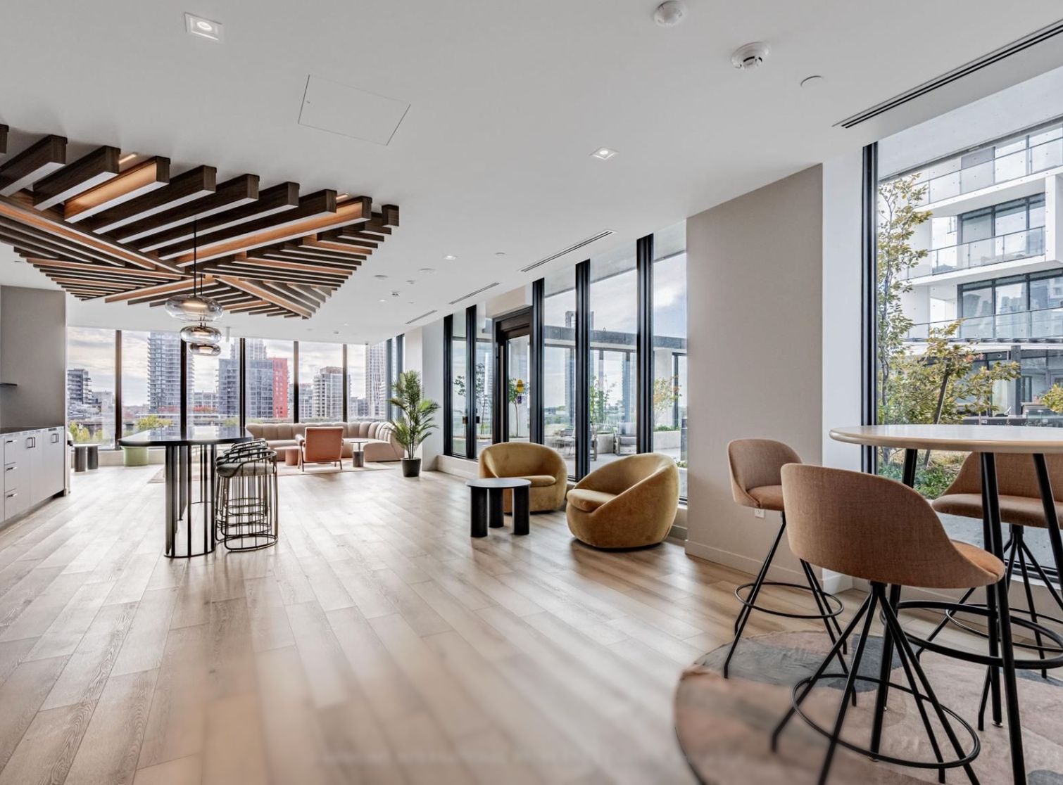 • Luxury amenities include a concierge, gym, and co-working spaces.