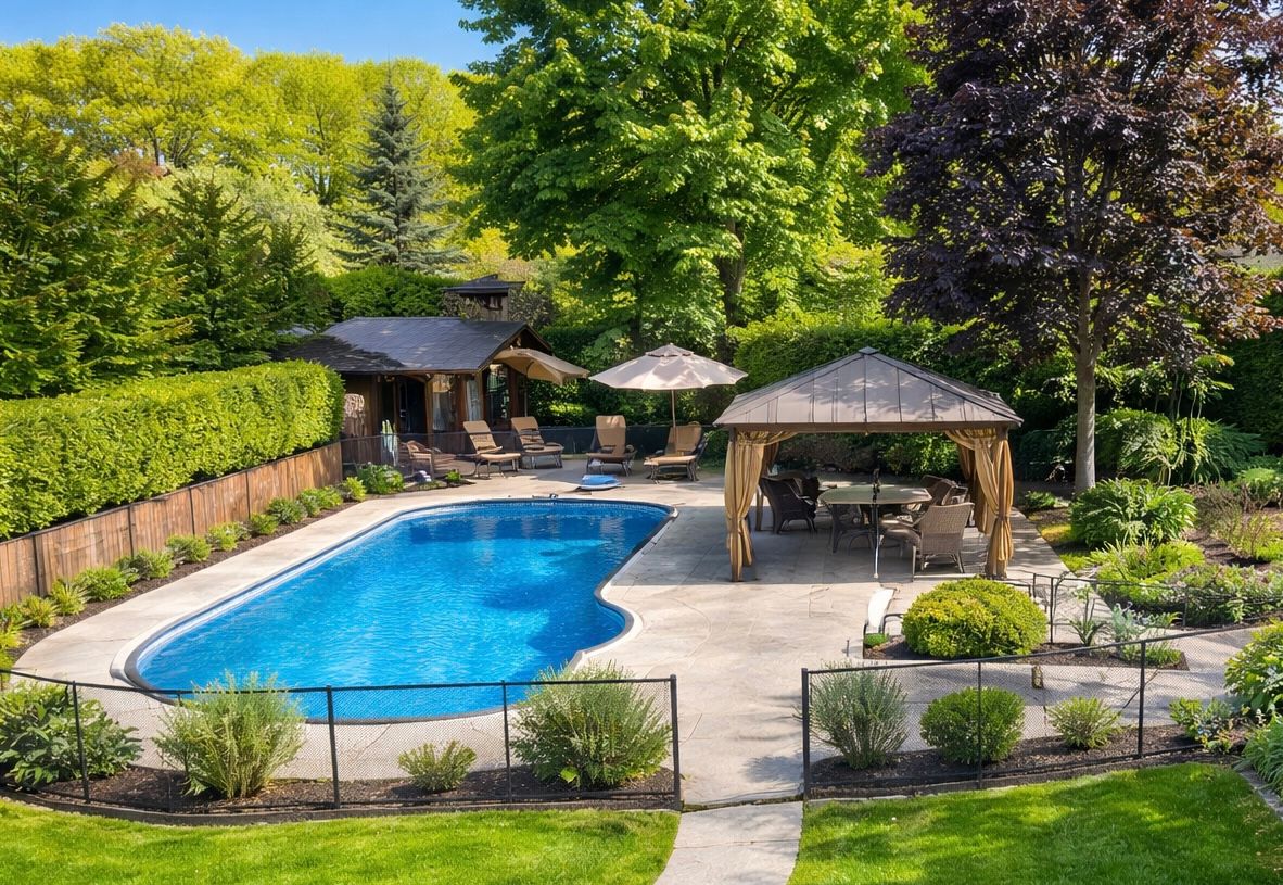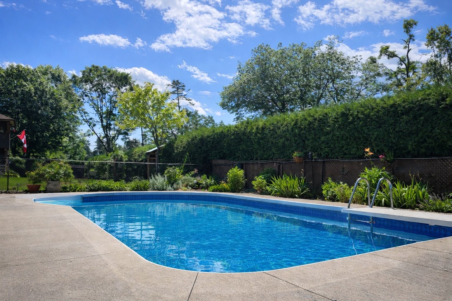 • In-ground pool and pool house for summer fun.