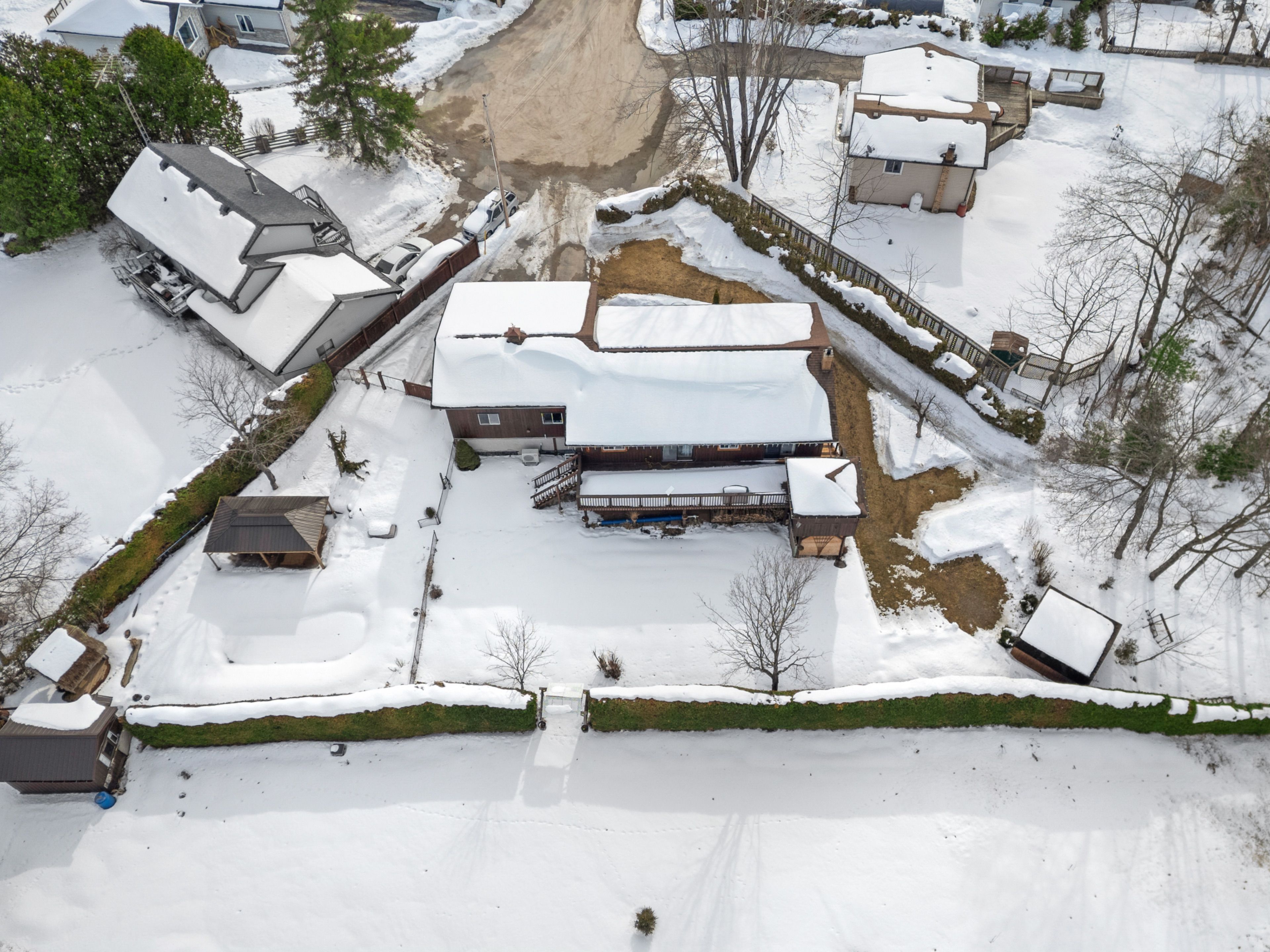Welcome to this spacious 4-bedroom, 2-bath bungalow located in a desirable waterfront community just outside of lindsay. The bright main floor features a large kitchen with plenty of natural light and a walkout to a deck that stretches across the back of the home-perfect for relaxing or entertaining. An attached heated double-car garage with direct access to the house adds everyday convenience. The fully finished walkout basement offers a warm and inviting family room complete with a cozy wood stove and dry bar, creating a great space for gatherings or quiet evenings at home. Set on a large pie-shaped lot with perennials gardens, manicured cedar hedges for privacy and multiple road frontages, and this property is designed for family living and summer fun, featuring an in-ground pool and pool house. Some updates include new windows in the basement, remodeled pool house, furnace and heat pump. Enjoy deeded access to a nearby canal leading directly to sturgeon lake and the trent-severn waterway, offering miles of boating and exploration. A wonderful opportunity to enjoy the lifestyle and beauty the kawarthas are known for.