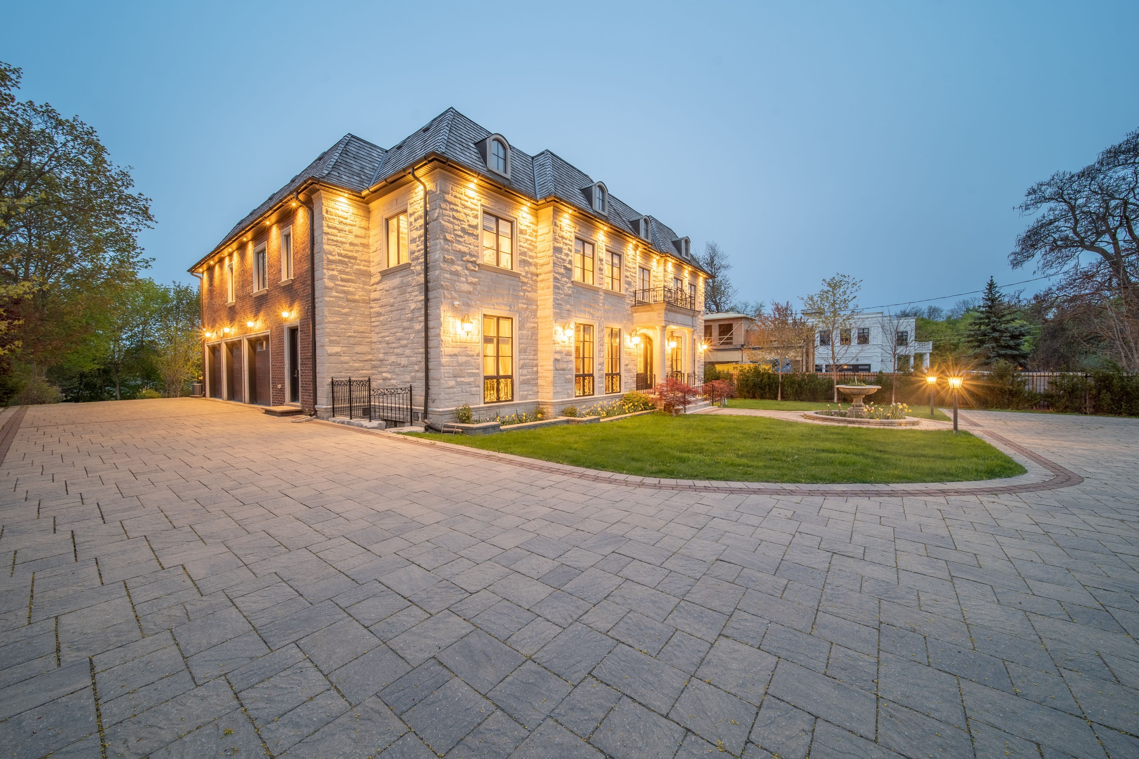 Welcome to iconic 9 thornbank road, a residence of rare distinction set on one of thornhills most prestigeous streets. Situated on a stunning 100 x 270 ft manicured lot, this grand stone and brick estate exemplifies architectural excellence and timeless craftsmanship. Spanning approximately 11,000 sq. Ft. Of luxurious living space, this custom-built masterpiece has been thoughtfully designed for both grand-scale entertaining and refined family living. Step into the dramatic 22-ft waffled-ceiling great room, where natural light, rich millwork, and heated floors create an atmosphere of warmth and elegance. The chef-inspired gourmet kitchen features an expansive pantry, a sunlit breakfast area, and multiple walkouts to private terraces, ideal for seamless indoor-outdoor living. Each bedroom offers private ensuite bathrooms and designer finishes, while the walk-out lower level provides a full lifestyle experience, complete with a home theatre, fitness studio, and private elevator for effortless access throughout the home. This is more than a residence, it's a bold expression of prestige, presence, and perfection.