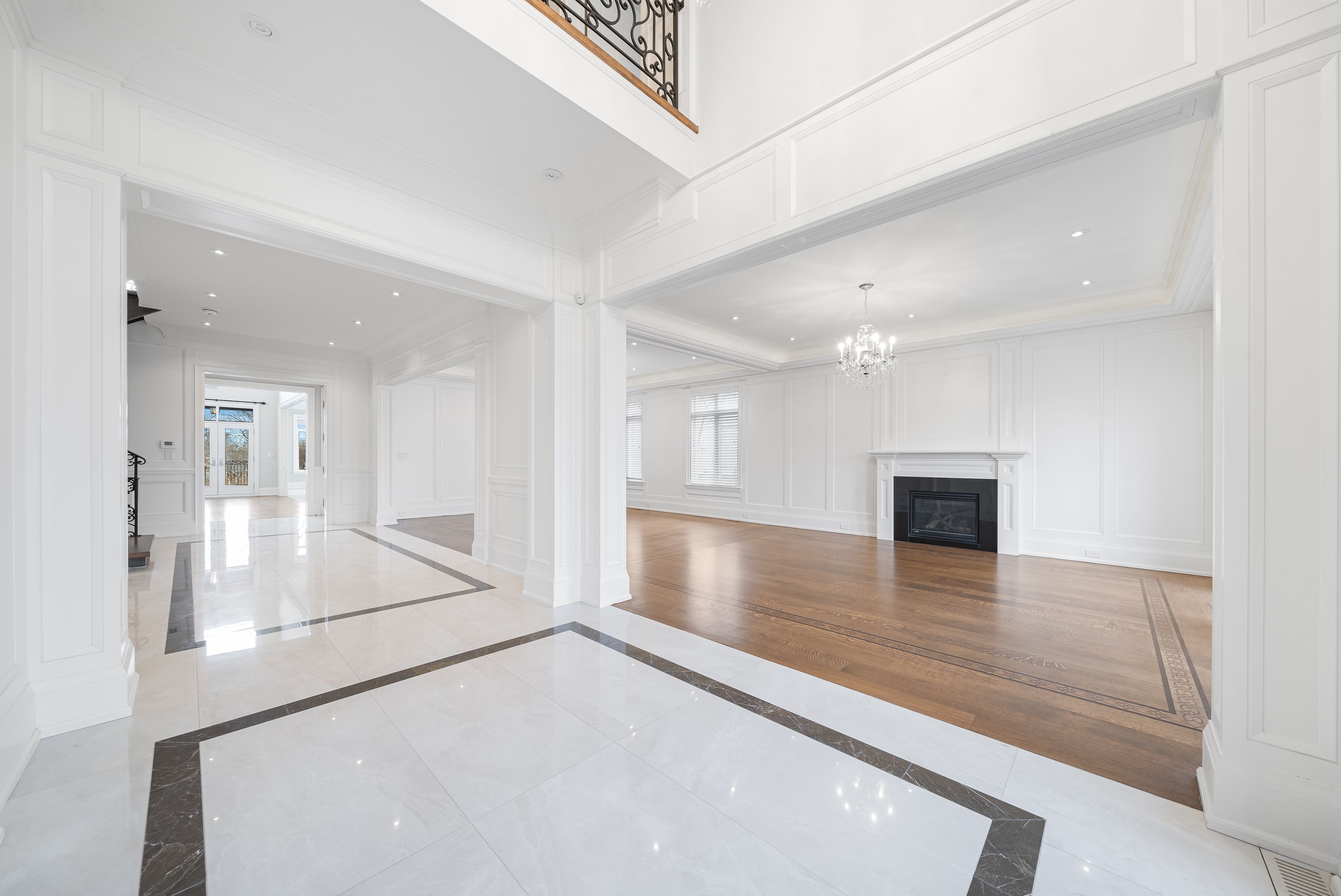 • Great Room boasts 22-ft ceiling, natural light, and heated floors.