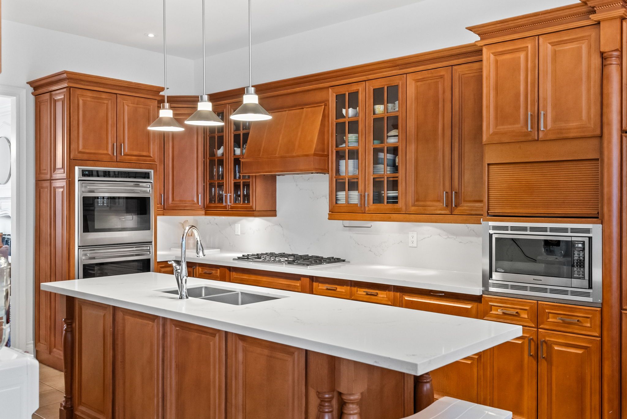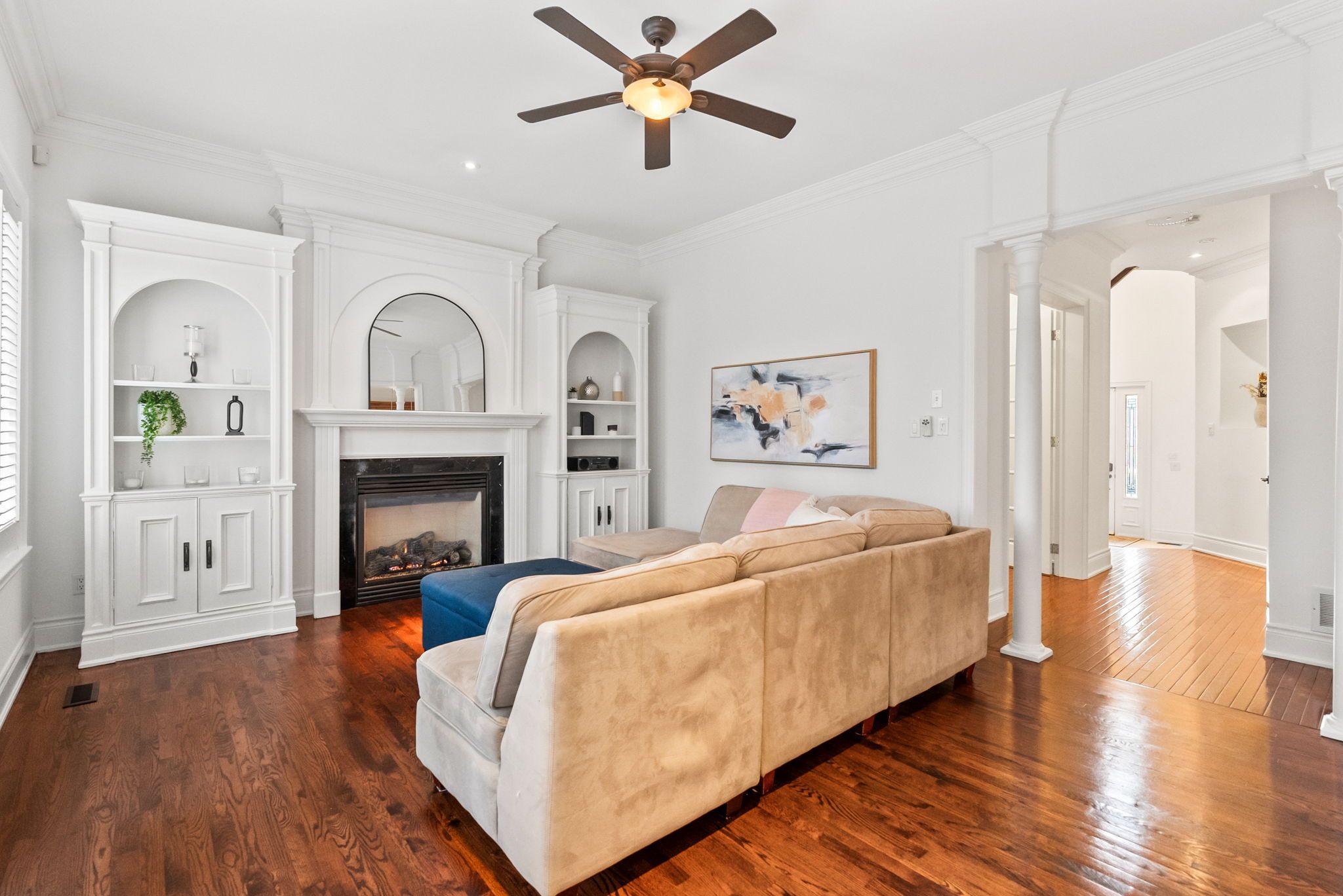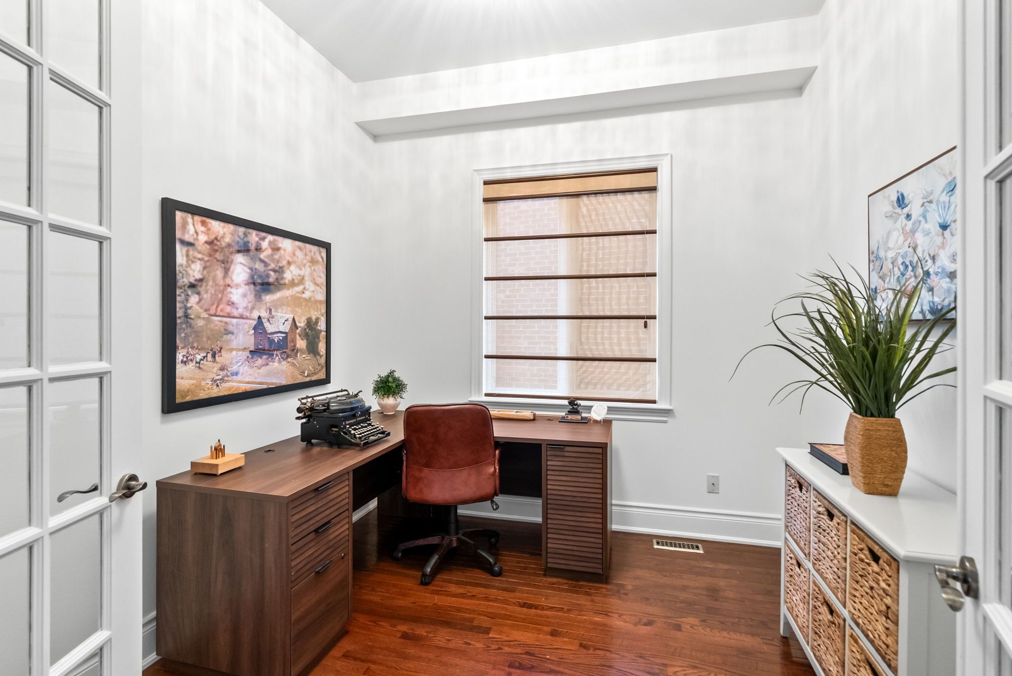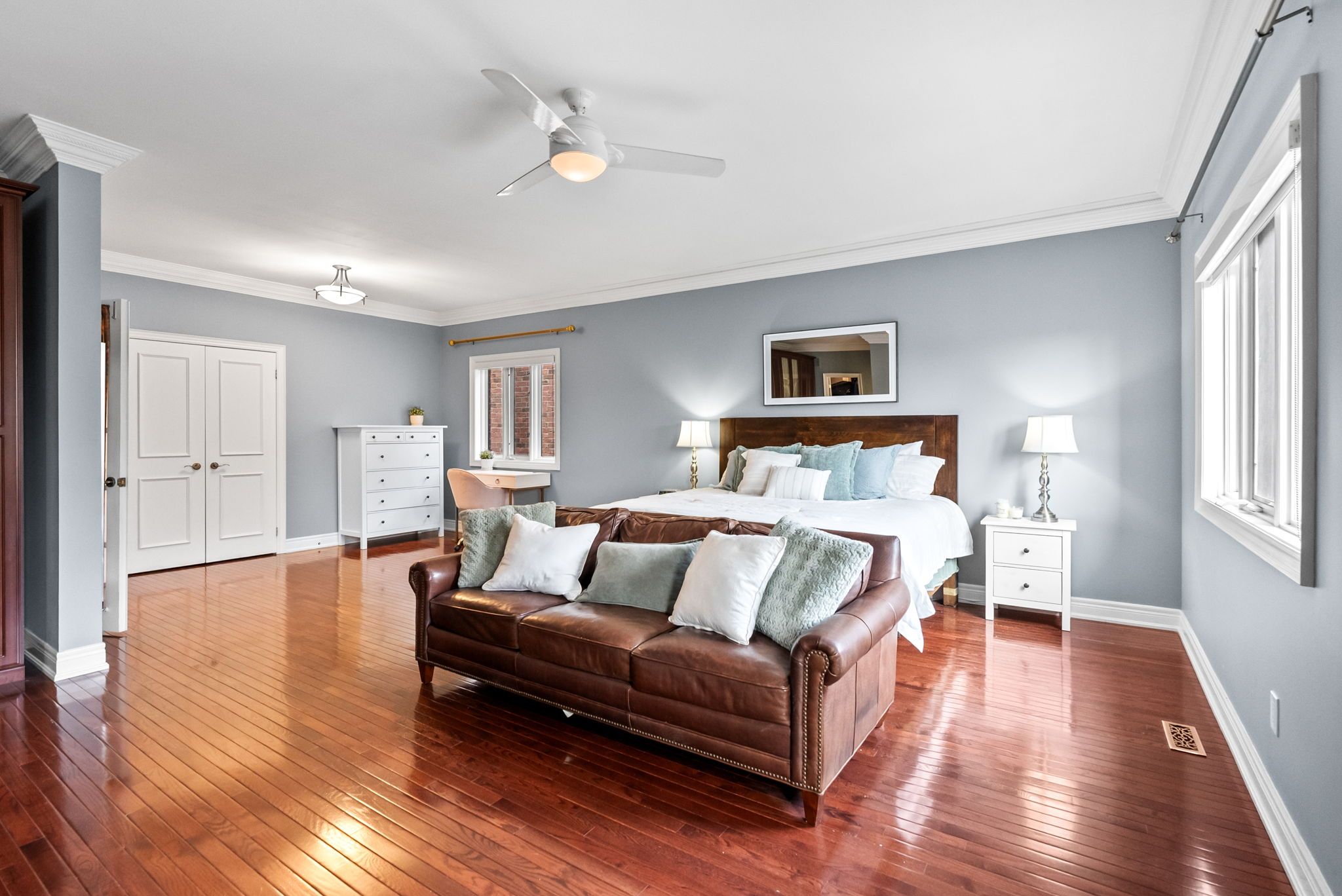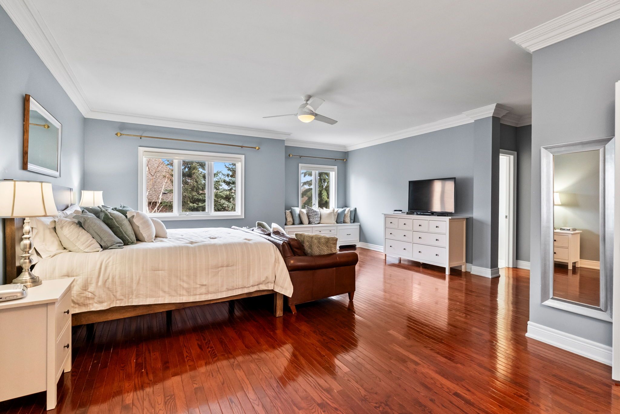 • Soaring ceilings and mahogany flooring add elegance throughout.