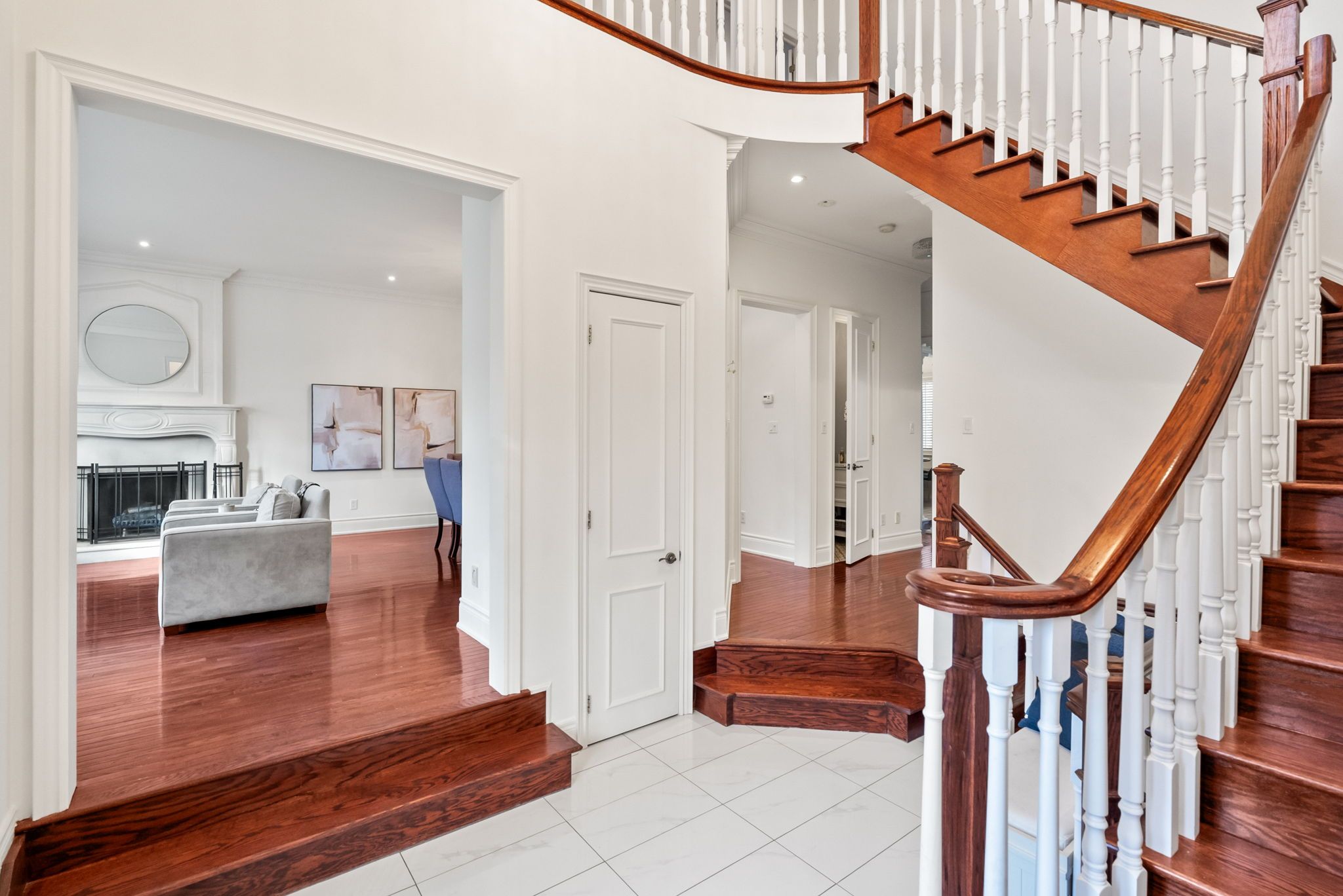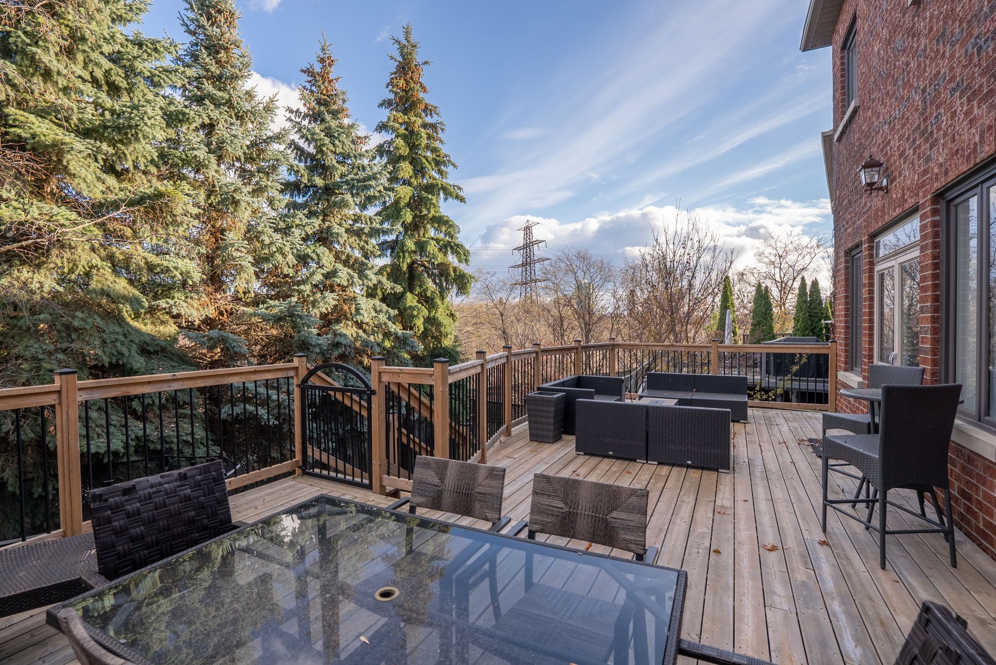 Welcome to 9 true davidson, a grand home nestled at the end of cul de sac in the coveted neighbourhood of governor's bridge, a peaceful tree-lined pocket perfect for families seeking tranquility and privacy with an easy 15-min drive to downtown and uptown toronto. Charm and elegance exudes from the house as you are greeted by soaring ceilings, a marble-lined foyer and mahogany flooring throughout. The home features three bedrooms including a double-sized primary bedroom with walk-in closet and ensuite bathroom, multiple entertaining spaces with working wood and gas fireplaces, custom kitchen, finished basement, patios you can walk out to from the living room and basement, and an attached garage with two-car parking with private drive. Discover your new home in this gorgeous turnkey house in the neighbourhood everyone wants to be.