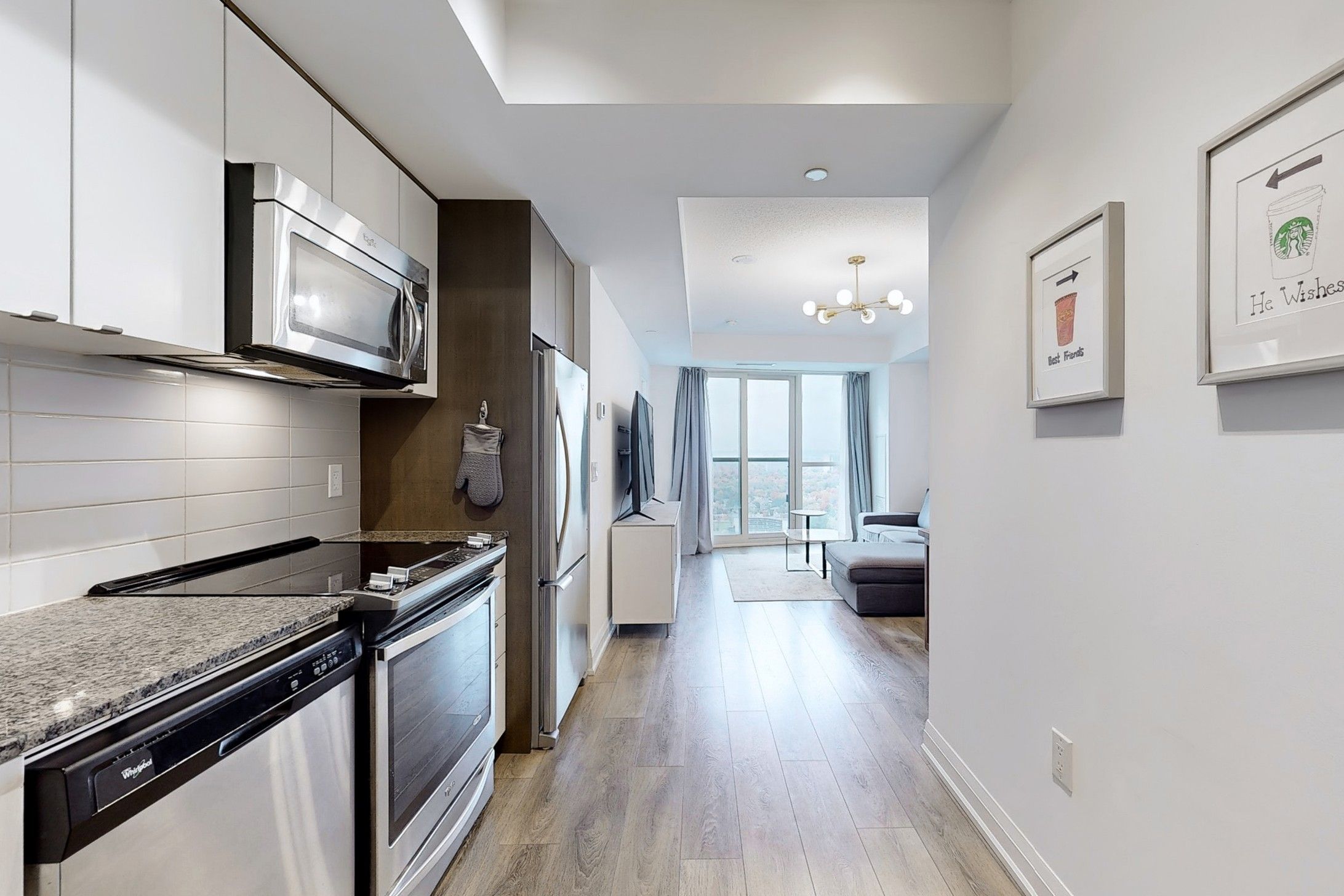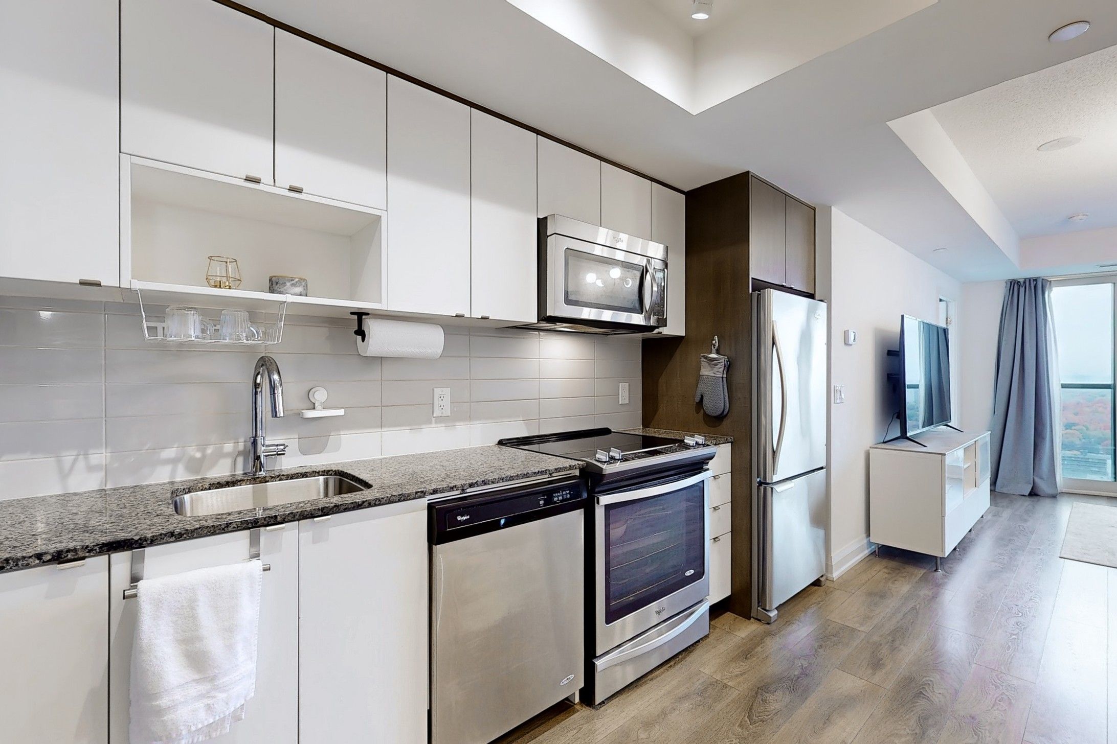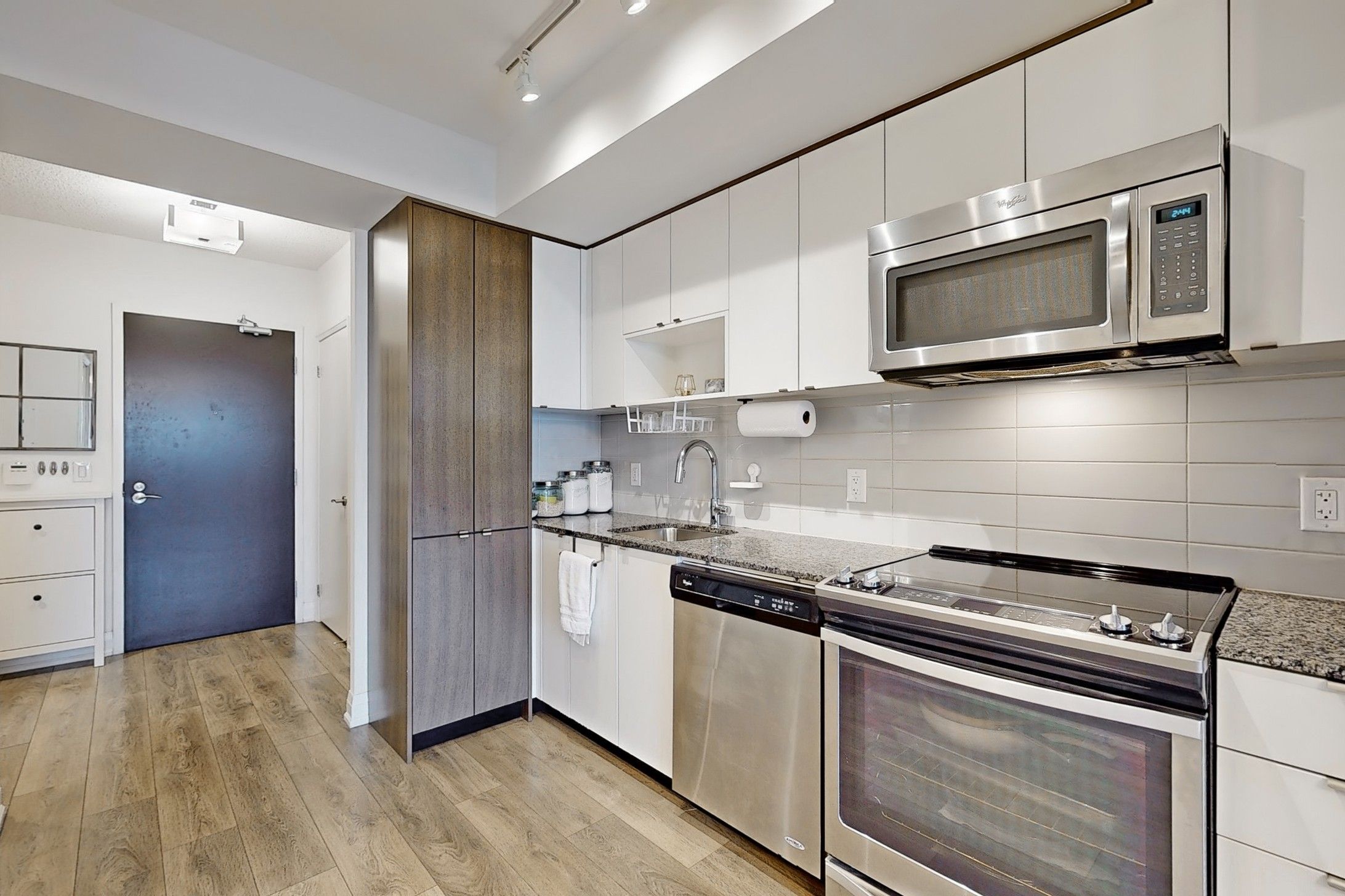 Location, location, location! Welcome to the triumph at valhalla-where comfort meets convenience in a prime etobicoke neighbourhood. This bright and spacious west-facing 1+1 bedroom unit offers abundant natural light and unobstructed views, making it ideal for first-time buyers, down-sizers, or investors. The versatile den features a removable sliding door, offering added privacy. The stylish kitchen features modern cabinetry, stainless steel appliances, and granite countertops, complemented by laminate flooring throughout the living/dining area and bedroom. Enjoy unbeatable accessibility to downtown toronto, highways 427/401/400, gardiner expressway, ttc transit, pearson airport, sherway gardens, restaurants, corporate offices, and nearby parks. Residents enjoy exceptional amenities including an indoor pool, whirlpool, sauna, fully equipped gym, and party room. A beautiful, move-in-ready condo you won't want to miss!