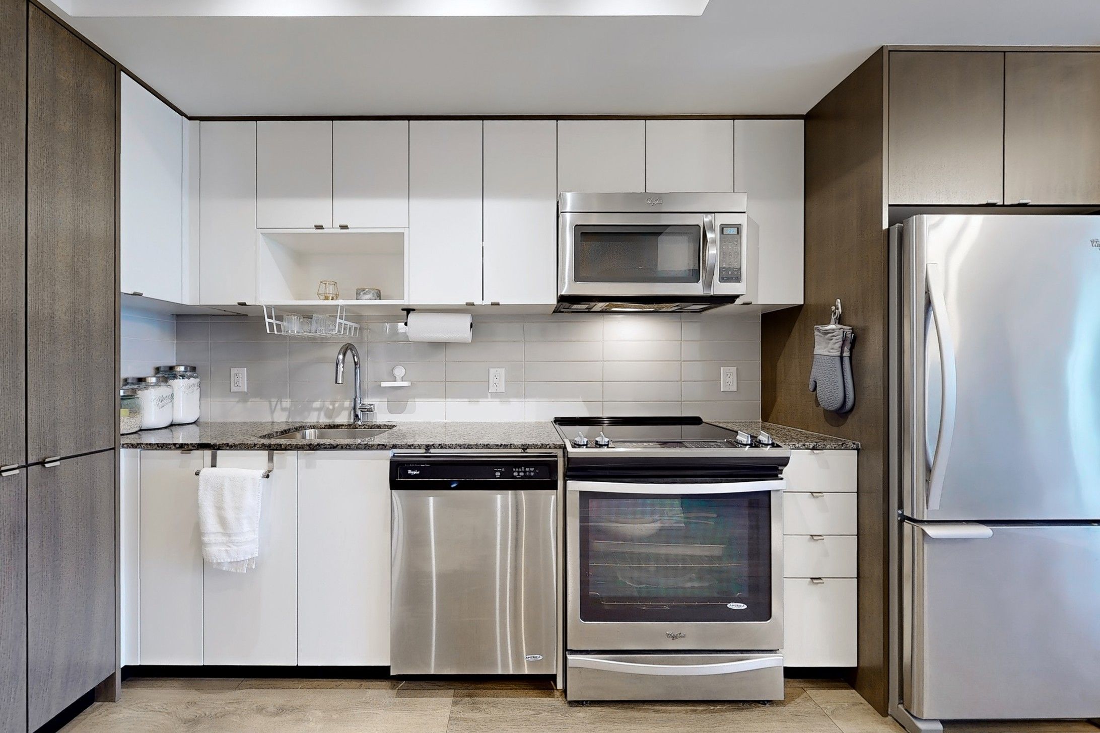 • Stylish kitchen featuring modern cabinetry and stainless steel appliances.