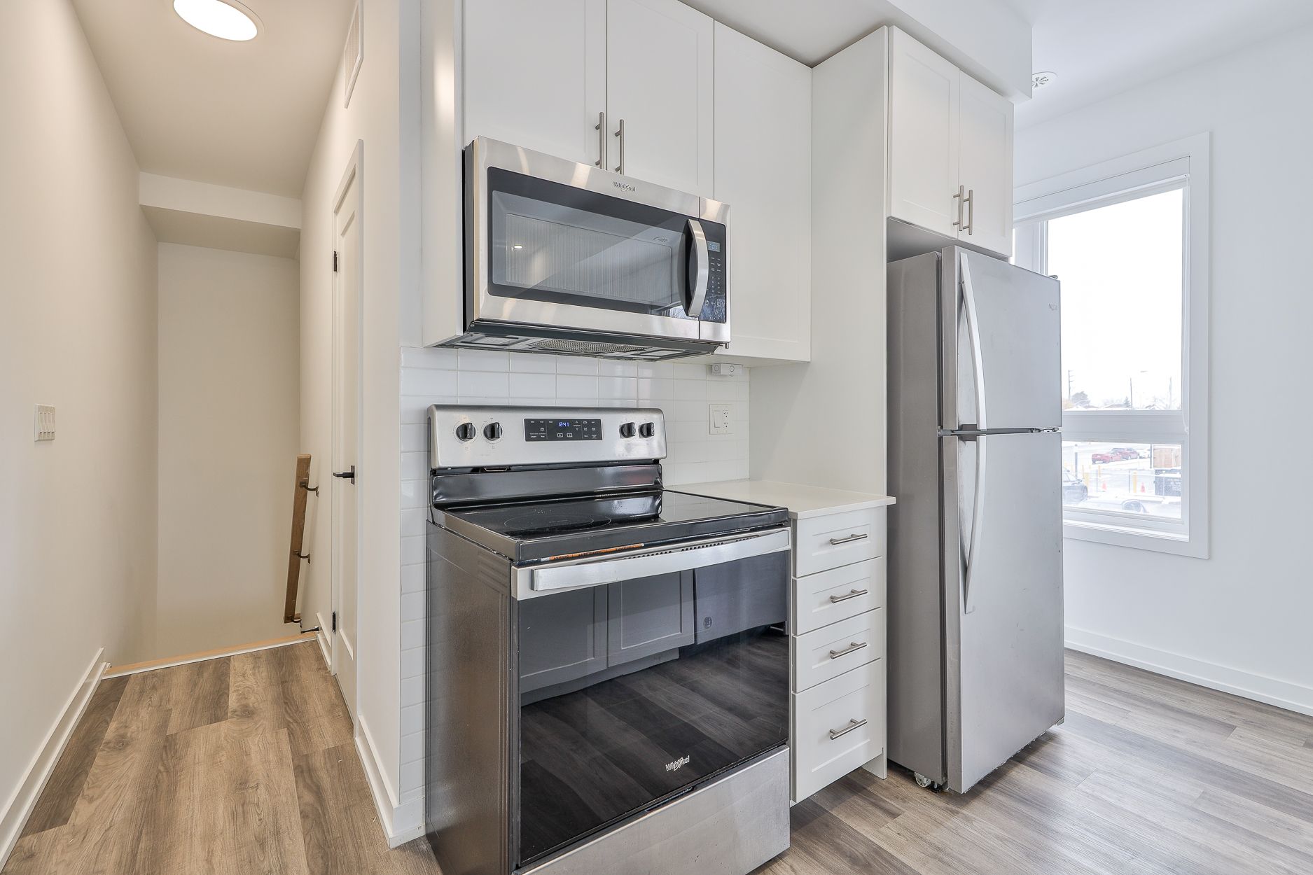 Bright 3-bedroom, 2. 5-bath corner stacked condo townhouse in cliffcrest, move-in ready and completely carpet-free with laminate flooring throughout, oak stairs, and filled with natural light. Open-concept living and dining area, modern kitchen, direct street-level entrance, oversized terrace with bbq hookup, and primary suite with private ensuite and walkout balcony. Just a 5-minute walk to the go station with ttc at your doorstep and steps from top-rated schools, parks, trails, and cliffcrest village shops and cafes. This modern 3-year-old boutique home is ideal for families, young professionals, or anyone seeking a bright, corner unit in a convenient, highly sought-after neighbourhood.