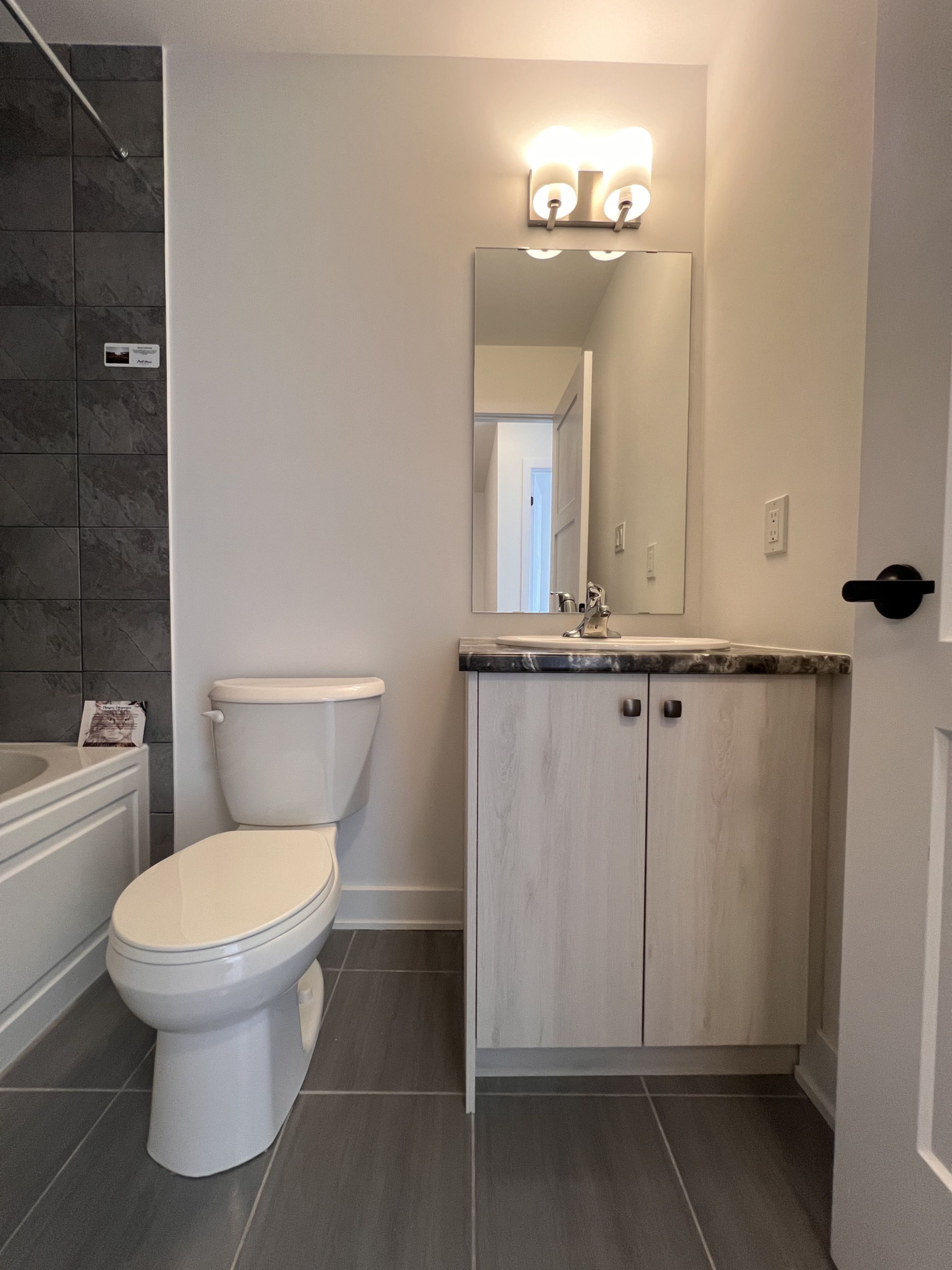 Welcome to hewitt's gate in the south end of barrie. 2 year new, bright, super clean 2 bedroom + den 2. 5 bath townhome available immediately. Minutes to go train, highway, schools, banks, grocery stores and all amenities. 1,073 sq ft with 1 car attached garage with inside entry. Oak stairs to main floor and second floor. Ground floor with a closet and a powder room. Main floor with a modern kitchen with walk out to a private balcony. Living room opens to a den with french double doors. 2nd floor with 2 good sized bedrooms, one with ensuite bath & walk in stand up shower. Appliances included: washer, dryer, dishwasher, fridge, stove. Application, references, credit check, first and last month deposit required. Book your private viewing today!