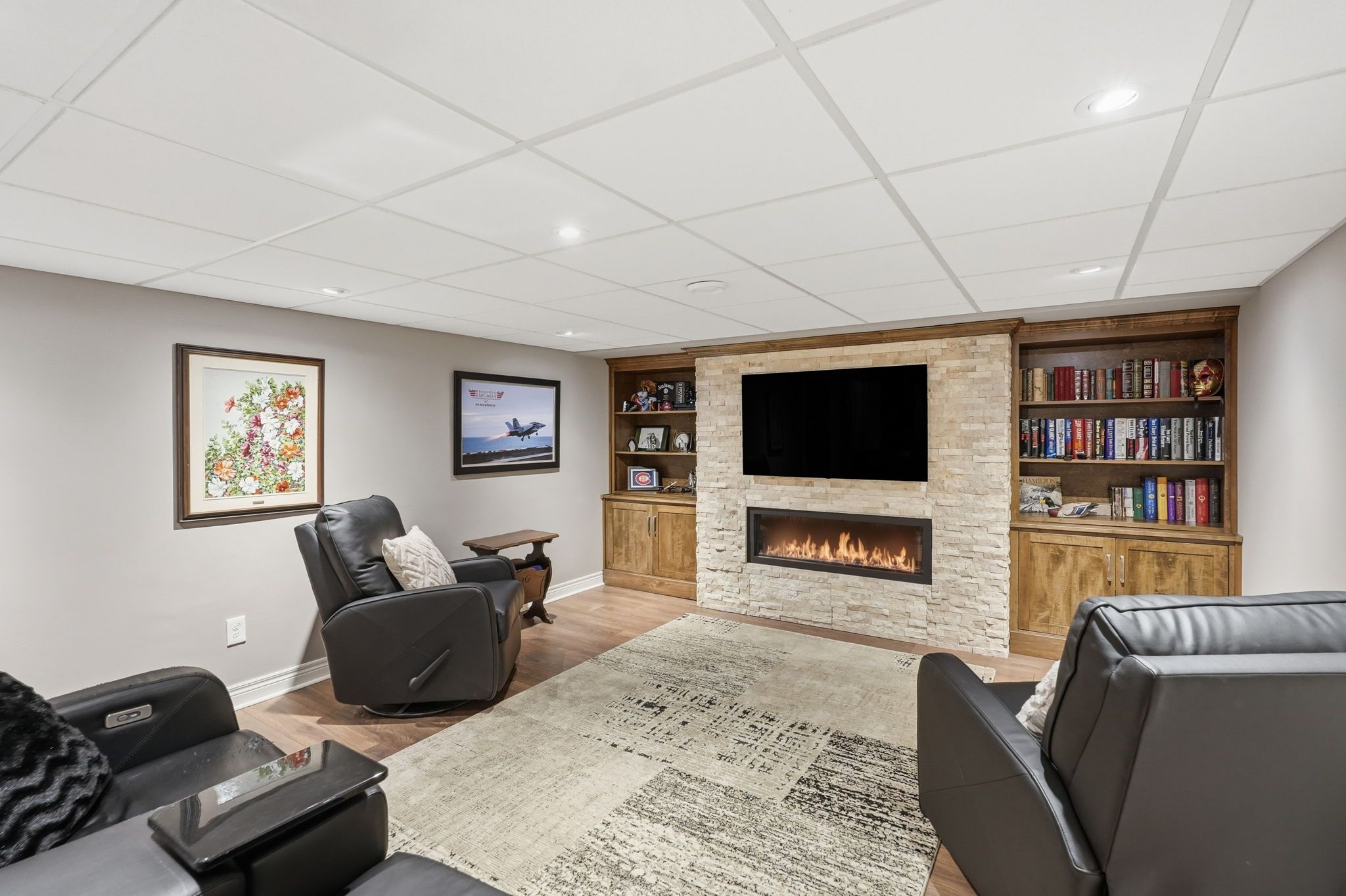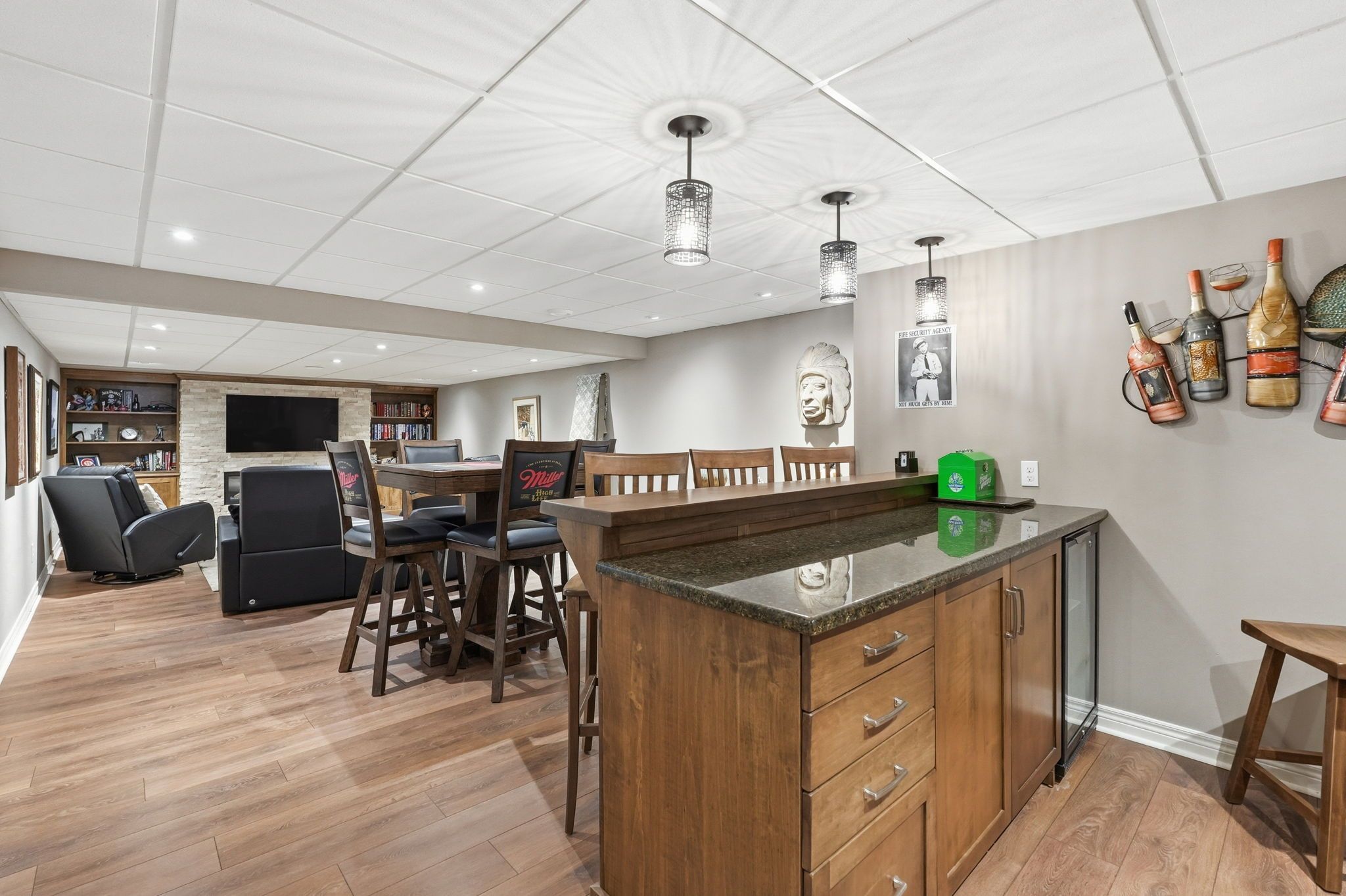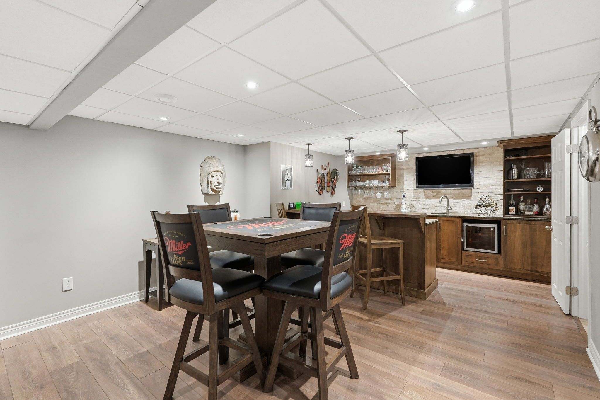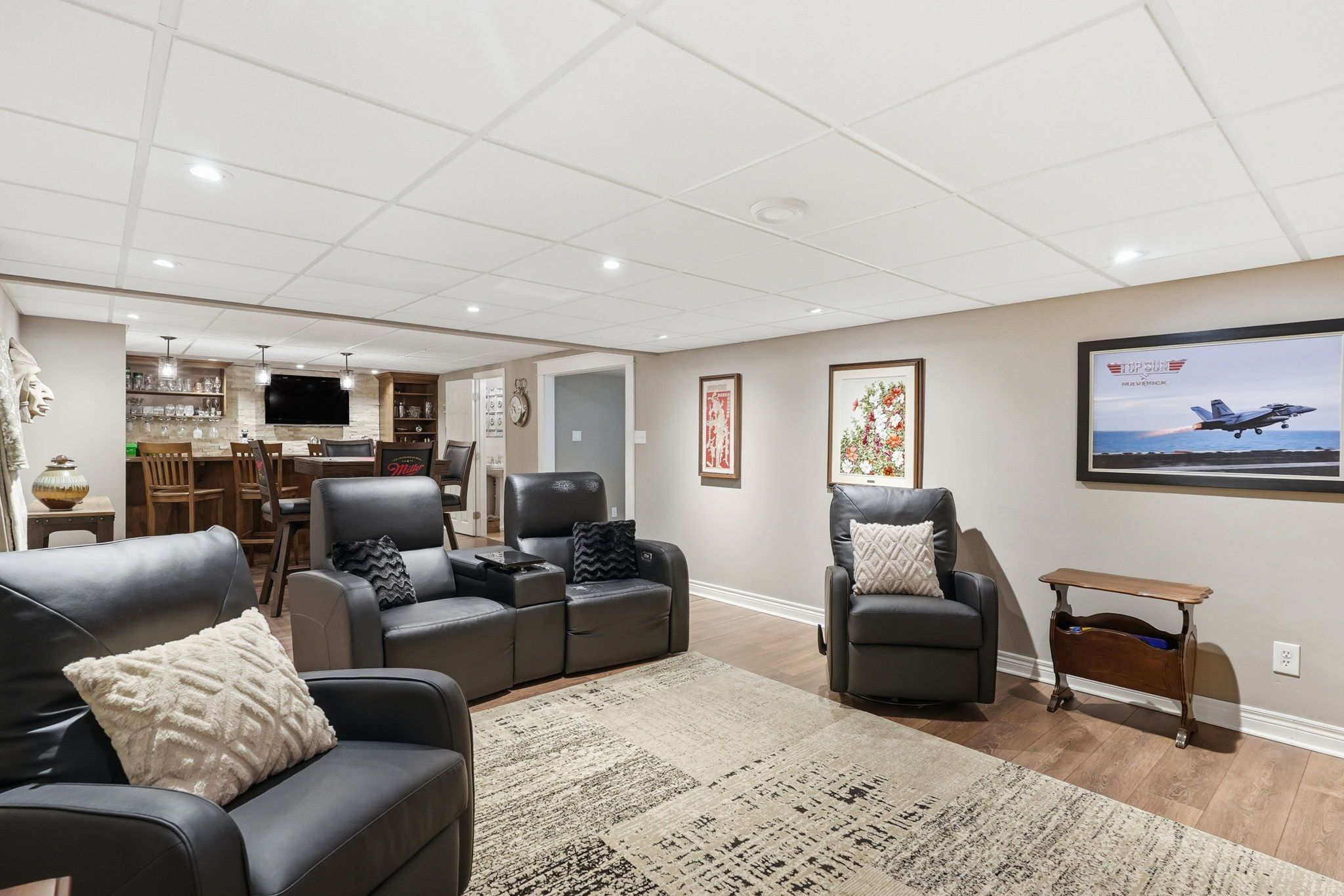 • Finished basement includes entertainment area and plenty of storage.