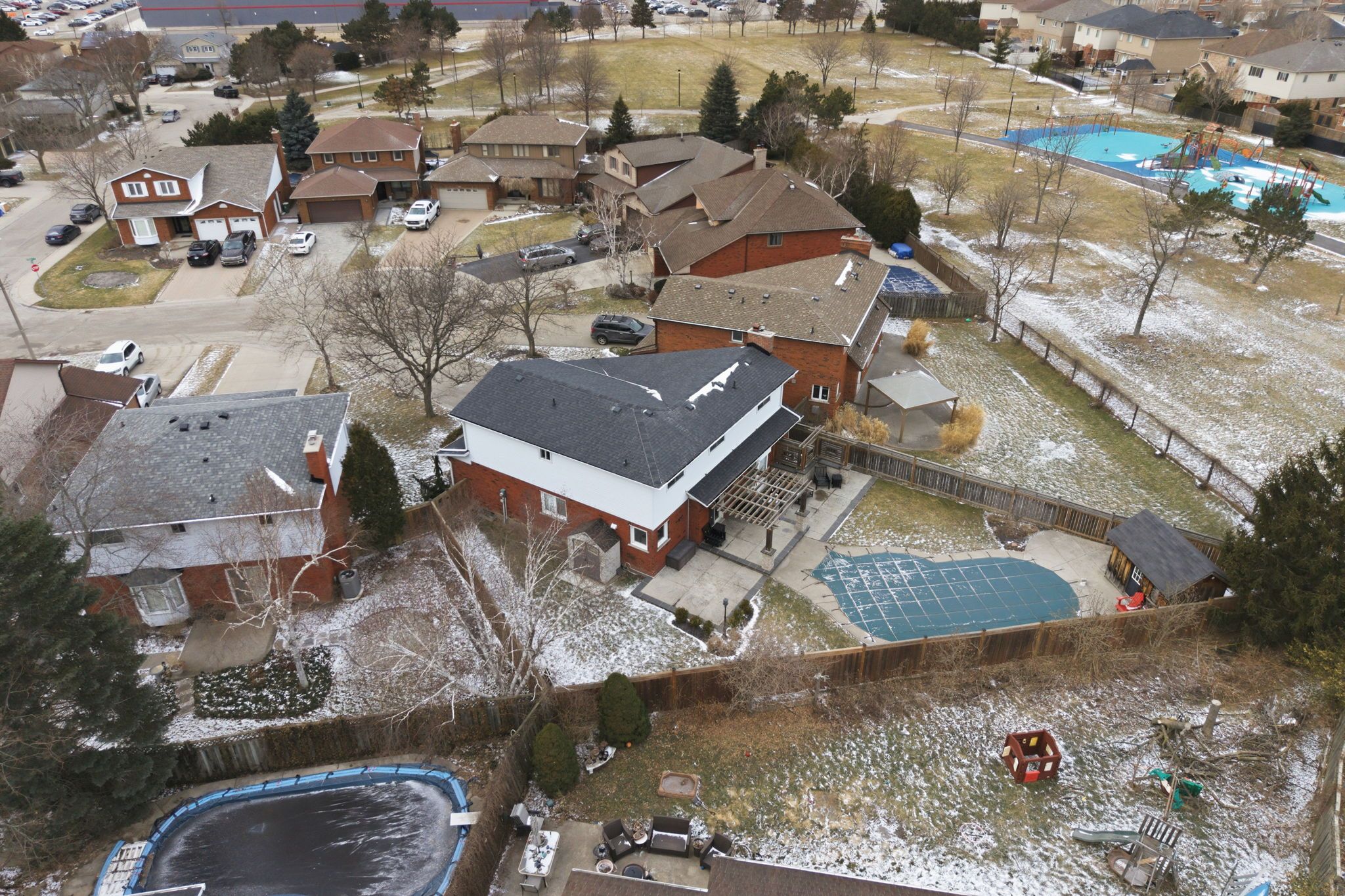 Welcome to 9 waldorf court! A classic brick two storey family home tucked away on a quiet court beside thorner park. This spacious property offers a double car garage, 4+1 bedrooms, and 2 full plus 2 half bathrooms. The main floor features two comfortable living spaces, hardwood flooring throughout, and a bright eat in kitchen with quartz counters, sleek white cabinetry, and a gas stove. A separate dining room creates the perfect setting for family gatherings. Upstairs, the primary suite includes a beautifully updated ensuite and his and hers closets, along with three additional well sized bedrooms. The finished basement adds even more living space with an entertainment and bar area, an extra bedroom, a crafts room, and plenty of storage. Step outside to enjoy the private backyard with a concrete deck, wood pergola, gas line for the bbq, and an inground heated pool with a brand new liner, all set on a pie shaped lot with a generous side yard that is perfect for summer lawn games. The backyard also features two sheds, multiple sitting areas, and excellent privacy to enjoy warm summer days. Conveniently located close to shopping and highway access, this is a fantastic opportunity to settle into a well maintained home in a family friendly neighbourhood.