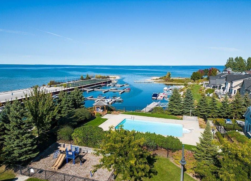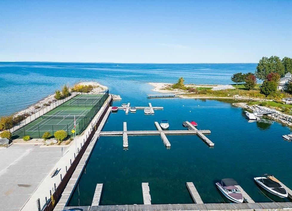 Welcome to blue shores, collingwood's premier waterfront community, where spring and summer living unfold effortlessly along the sparkling shores of georgian bay. This beautifully upgraded home offers an exceptional blend of comfort, elegance, and low-maintenance living in one of the area's most coveted enclaves. Thoughtfully designed for relaxed, easy living, the home features a main-floor primary suite with a spa-inspired ensuite and private laundry, perfect for main-level convenience. The airy, open-concept layout is ideal for entertaining, with multiple inviting living spaces, two spacious guest bedrooms on the second level with walk-in closets, and a fully finished lower level complete with a family room and two additional bedrooms, perfect for hosting weekend guests or extended family. As the seasons shift, blue shores truly comes to life. Spend your mornings walking along beautifully landscaped trails, afternoons lounging by the outdoor pool, and evenings entertaining friends at the shore club's social spaces. Enjoy tennis or pickleball under the sun, or take full advantage of the private marina, where boating, paddle boarding, and kayaking on georgian bay become part of your everyday routine. Just minutes from collingwood's vibrant shops, restaurants, golf courses, and waterfront amenities, and only 2 hours from toronto, this is a lifestyle defined by ease, connection, and outdoor living at its finest.