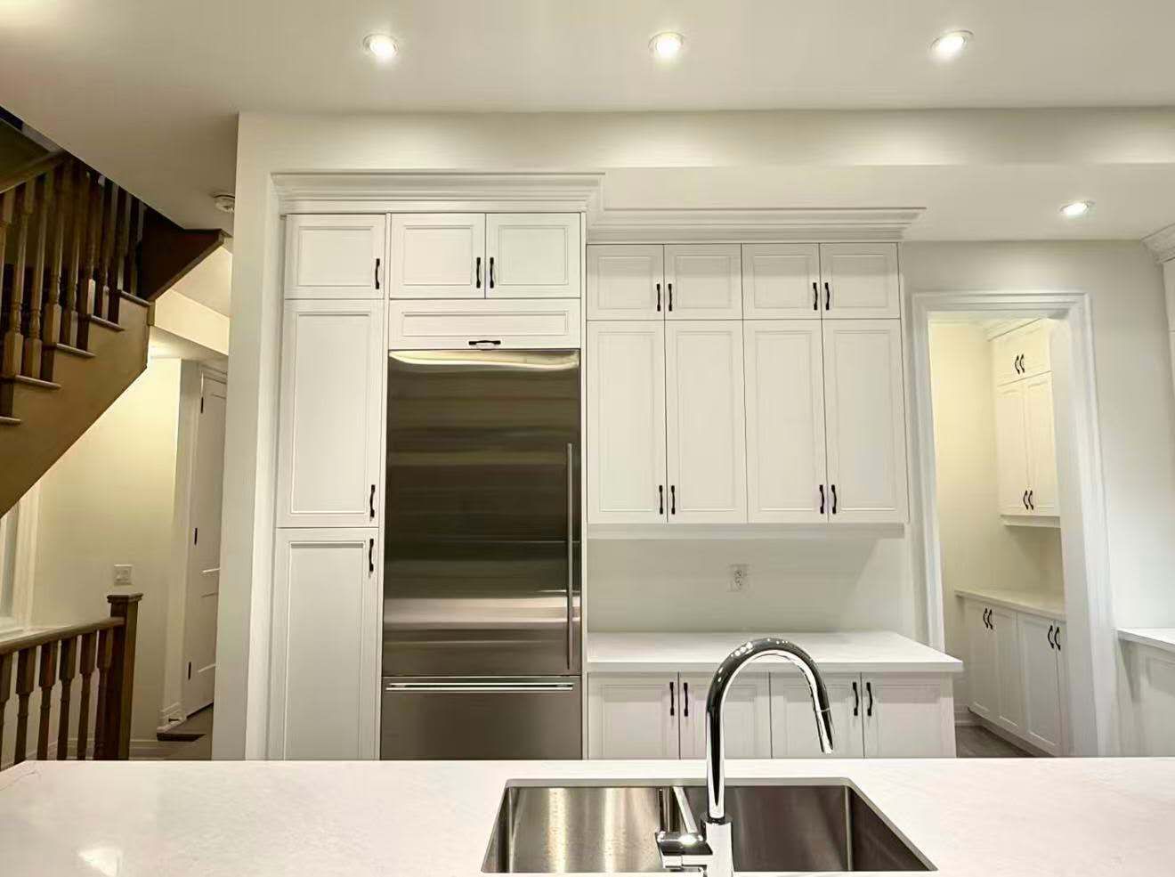 Welcome to 9 west village lane, where refined luxury meets modern living in this brand-new, move-in-ready end-unit kylemore executive townhome, ideally situated in the prestigious angus glen community. This rare 4-bedroom, 4-bath residence offers approximately 2,620 sq. Ft. Of thoughtfully designed living space on a premium ravine-backing lot, delivering exceptional privacy and serene treed views. Beyond the front door, the home is enhanced with smooth ceilings and premium white oak hardwood flooring throughout. The stunning main level boasts 10-ft ceilings, pot lights, and a versatile formal room that opens onto a spacious front balcony. At the heart of the home, the gourmet kitchen impresses with custom stacked cabinetry with crown molding, glass insert doors, quartz countertops, a massive centre island, walk-in pantry, and elite sub-zero & wolf appliances. The kitchen flows seamlessly into the family room, which features a walk-out to a private deck overlooking the tranquil ravine - perfect for both everyday living and entertaining. The upper level is designed for comfort and convenience, featuring a relocated laundry room and a luxurious primary retreat. The primary suite showcases a dramatic cathedral ceiling, two walk-in closets, a private balcony, and a spa-inspired ensuite with double vanity and an upgraded oversized frameless glass shower. The fully finished ground level offers outstanding versatility, complete with a spacious fourth bedroom or media room, custom 3-piece bathroom, and a walk-out to the fenced backyard, making it ideal for an in-law suite or extended family living. Finished with a double-car garage and located within the top-ranked pierre elliott trudeau high school district, this exceptional home is steps from parks, angus glen golf club, and main street unionville - offering an unparalleled lifestyle in one of markham's most sought-after neighborhoods.