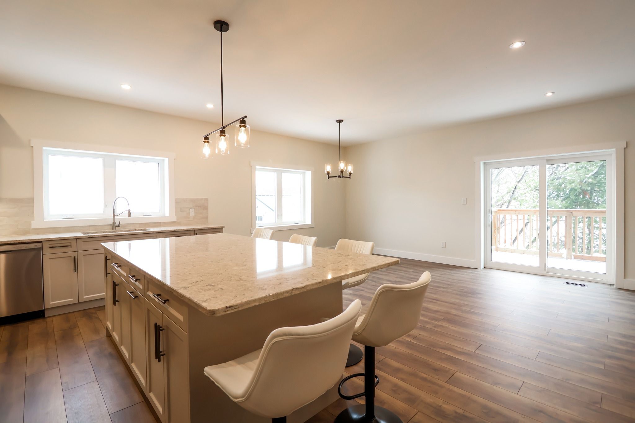 Check out this beauty! 9 williams drive in bancroft - a beautifully crafted home built in 2024 with exceptional attention to detail including high ceilings, the perfect floor plan and high end fixtures. Nestled in a quiet subdivision on a peaceful cul-de-sac. The main floor welcomes you with a spacious foyer featuring double closets, providing ample storage right at the entrance. The heart of the home is the bright, open-concept living space with a walkout to the back deck - perfect for entertaining or relaxing. The custom kitchen is a standout, showcasing quartz countertops, stainless steel appliances, and a large island with additional seating. Convenient main floor laundry includes built-in cabinetry and a laundry sink. The primary bedroom is a true retreat, offering generous space and a luxurious four-piece ensuite complete with a soaker tub and a separate shower. A second bedroom and two piece bath completes the main level. Downstairs, the fully finished lower level features a massive rec room, two additional large bedrooms, a full four-piece bathroom with double vanity, utility area, and plenty of storage throughout! Heated with a propane furnace and equipped with central air, this home ensures year-round comfort. Attached garage, high-speed internet, full cell service, municipal garbage and recycling, and walking distance to all bancroft amenities, this is a fantastic opportunity to enjoy modern living in a family-friendly neighborhood.