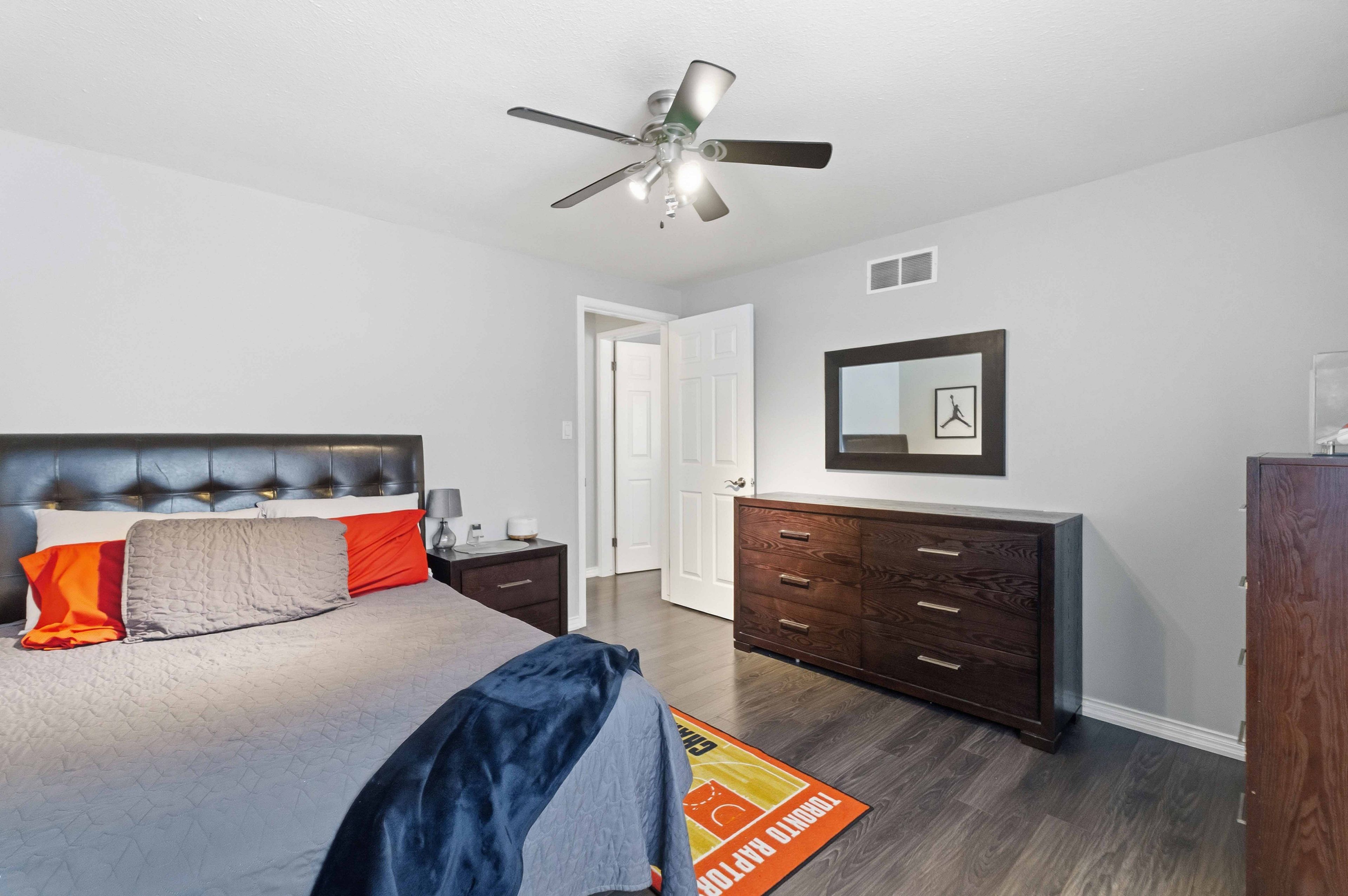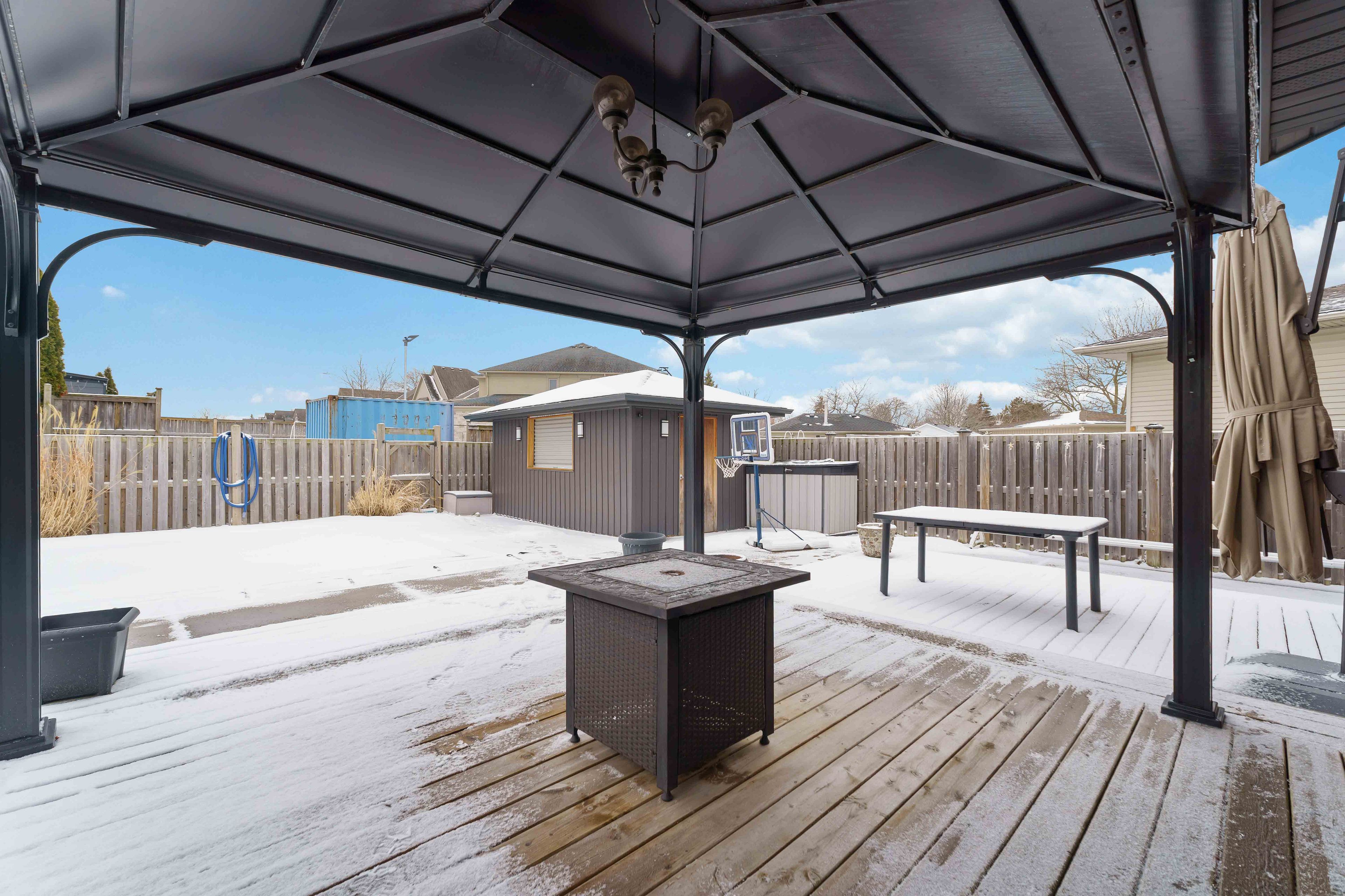 Welcome to 9 woodgarden court. North end living done right! A spacious two-storey home tucked away on a quiet cul-de-sac in one of the north end's most sought-after residential pockets. Short walk to the lake. Peaceful streets. Pride of ownership all around. Built in 1980 and thoughtfully laid out for real life. You'll love the double garage and oversized driveway, there's plenty of space for family and guests. Step inside to a bright, functional layout featuring a chef's kitchen with gas range, open to the dinette and main floor family room with a cozy wood-burning fireplace. This is where everyone gathers. Garden doors lead to a wood deck with gazebo, overlooking a private, fully fenced backyard built for entertaining. Family-sized, in-ground pool. Large pool/storage shed. Summer starts here. Main level also offers a formal dinning room and a convenient 2-piece powder room. Upstairs you'll find three generous bedrooms and a spacious 5-piece bathroom with separate shower, ideal for busy mornings. Downstairs? A large rec room perfect for movie nights, kids' space, or a home gym, plus a 4-piece bathroom for added flexibility, large enough for an additional bedroom. Move in, unpack and enjoy. Superb north end location. It's quiet, established and close to the lake, it's close to everything. This is the kind of home families wait for.