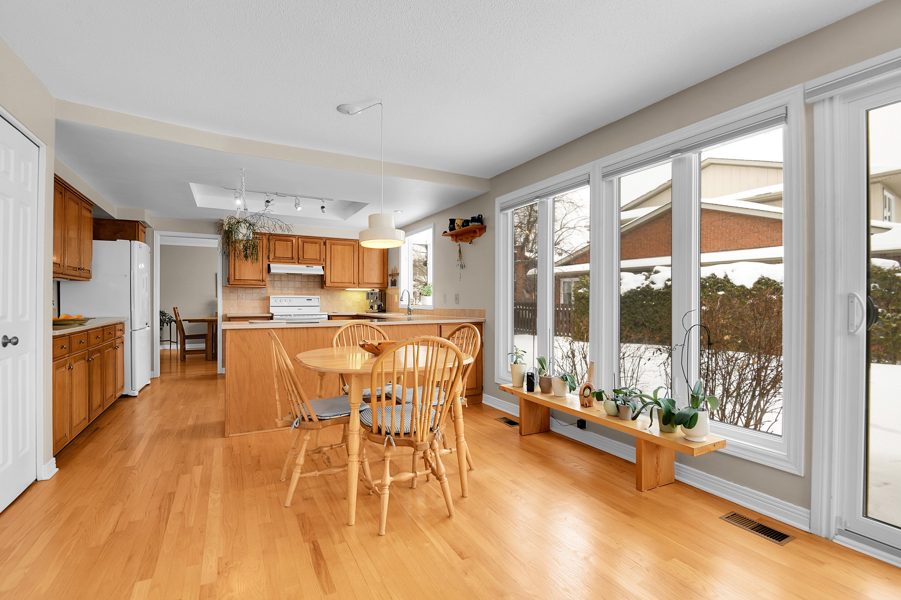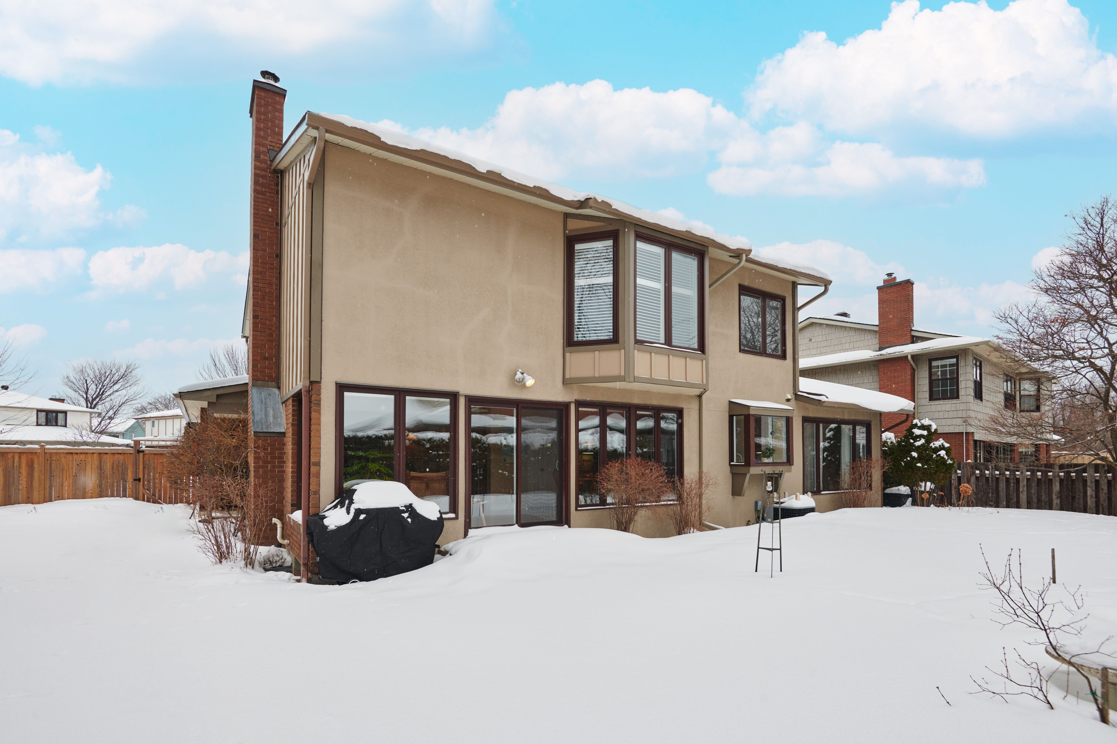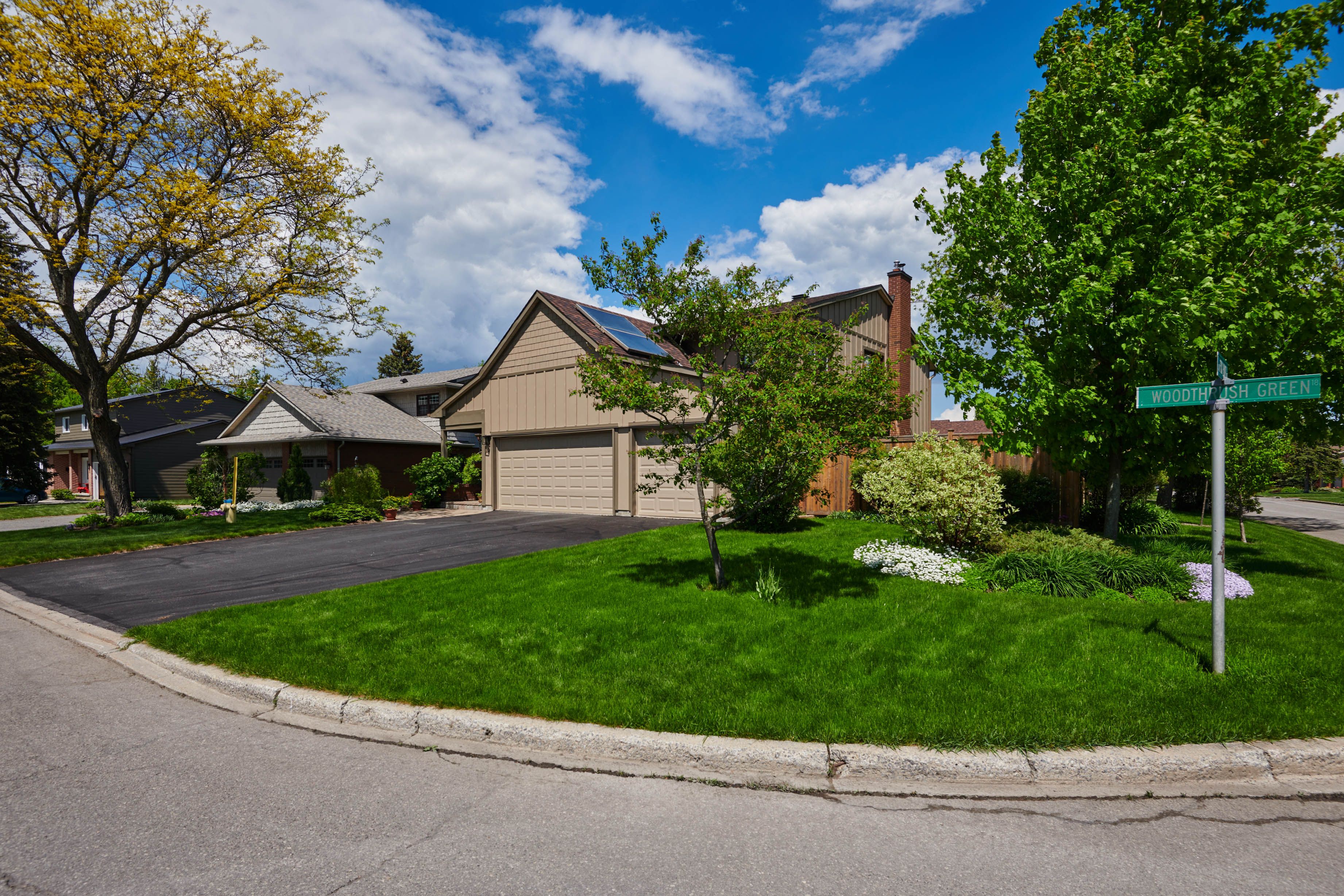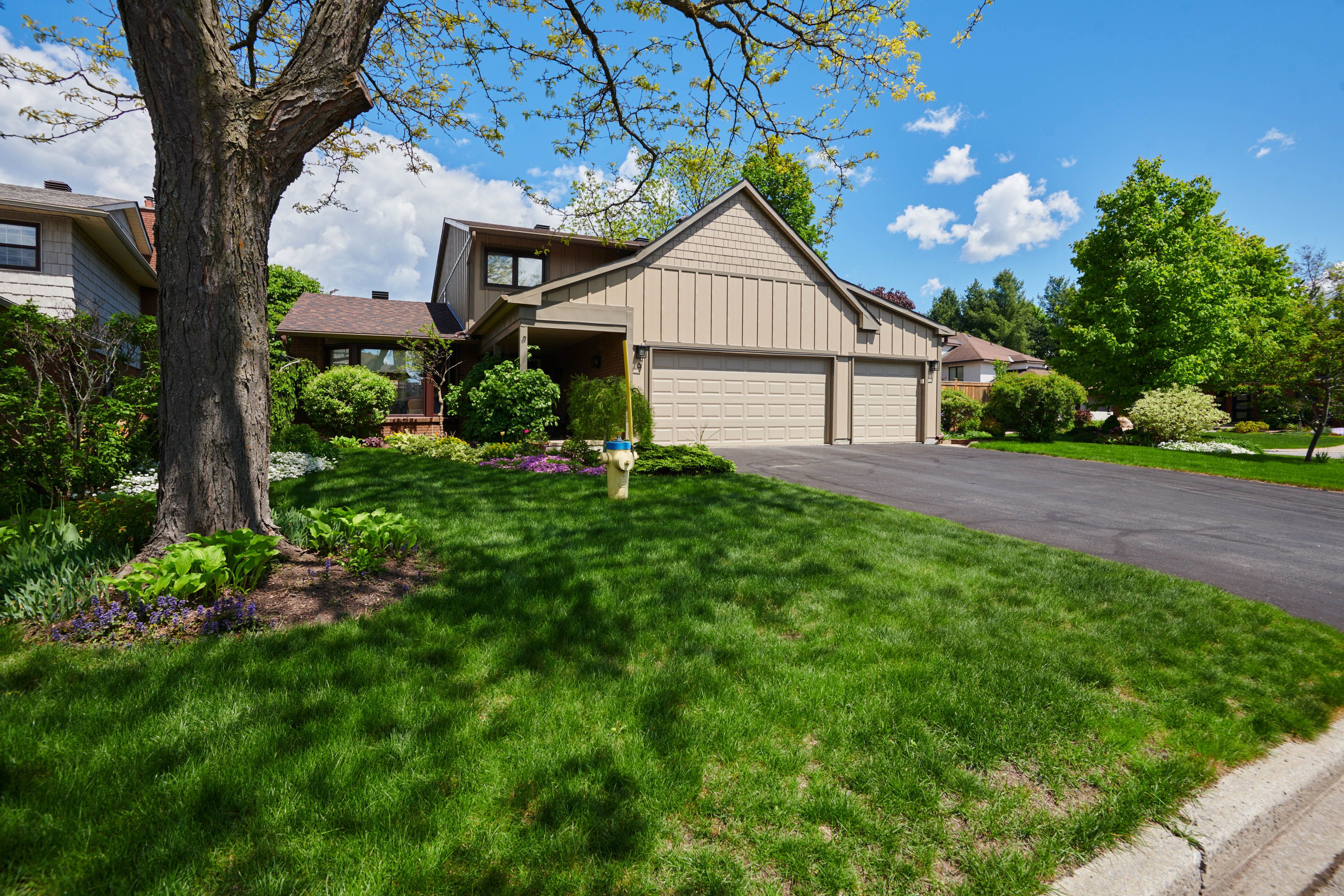 Welcome to this meticulously maintained home, beautifully positioned on a corner lot on a quiet street in the sought-after community of hunt club woods. Thoughtfully landscaped and equipped with an irrigation system, the outdoor spaces have been carefully cultivated over years of attention and heart, creating a peaceful and private setting. Inside, the main level offers hardwood flooring, a warm and inviting family room with a wood-burning fireplace insert, and a bright eat-in kitchen featuring corian countertops and a bay window overlooking the garden. Practical touches include main-level laundry conveniently located off the side-door entrance, custom blinds on the main floor, and a wet bar in the family room. Four bedrooms are located on the second level, including the spacious primary retreat, which features a walk-in closet and a beautifully renovated 4-piece ensuite with heated flooring. An additional bedroom on the lower level provides flexible space for guests, a home office, or extended family. Extensive updates provide peace of mind, including a new pressure-treated pine fence, triple-glazed windows, exterior siding that was recently replaced with durable james hardie board siding, painted garage doors and stucco, and new gutters with covers, offering long-term, low-maintenance living. Ideally located minutes from hunt club golf course, steps to walking paths, close to parks, schools, shopping, dining, transit, and major commuting routes, this move-in-ready home combines comfort, quality, and an exceptional location.