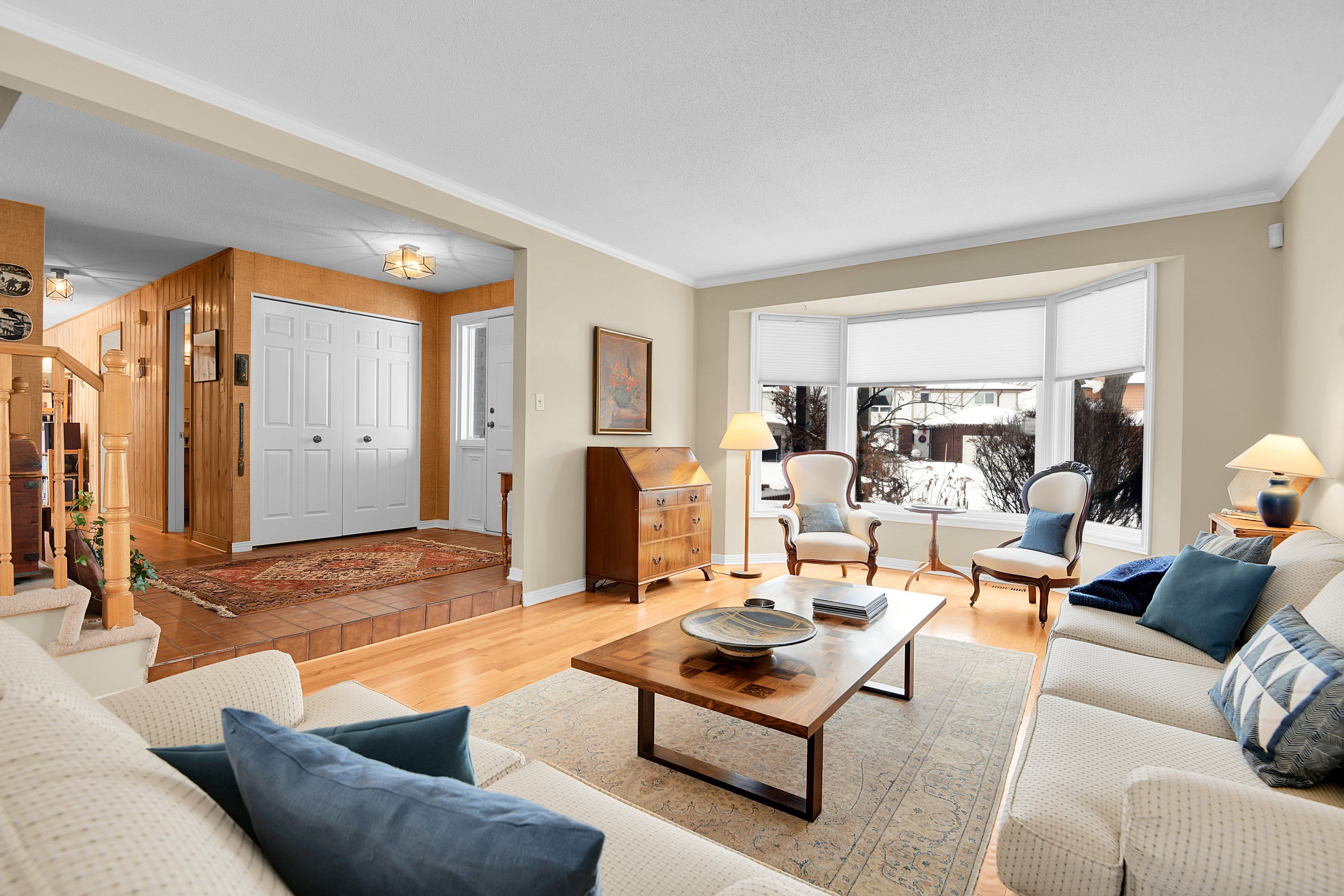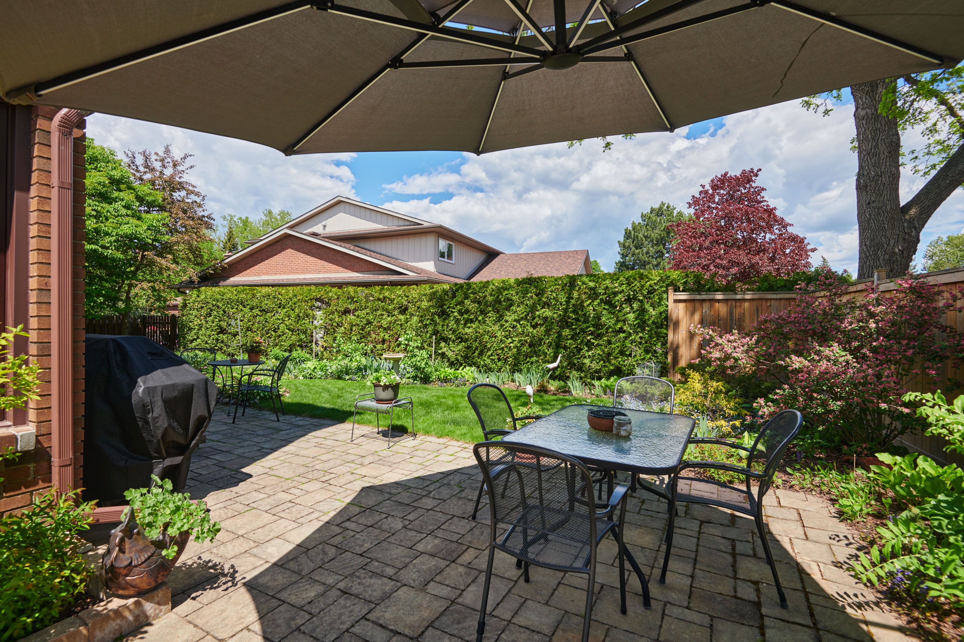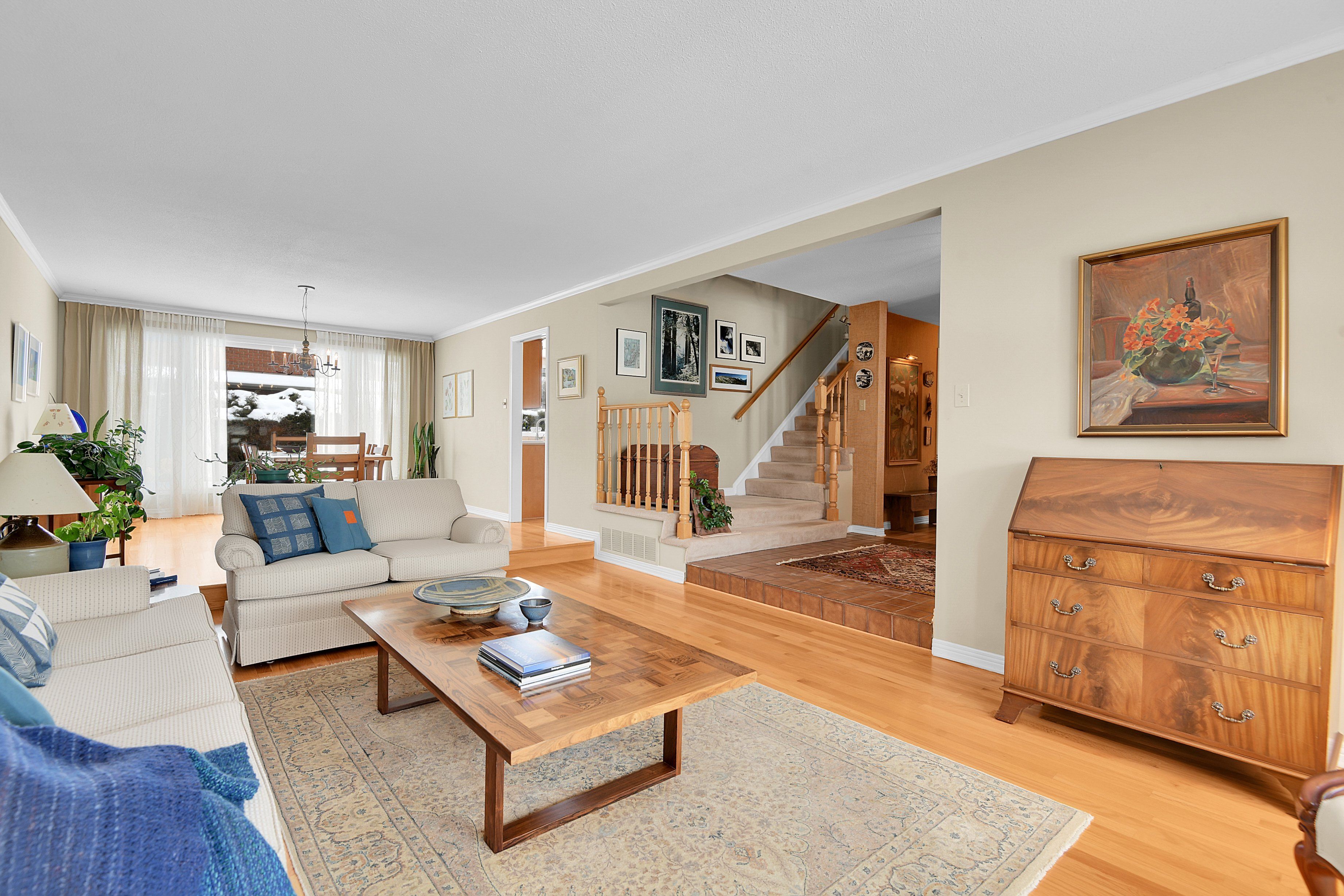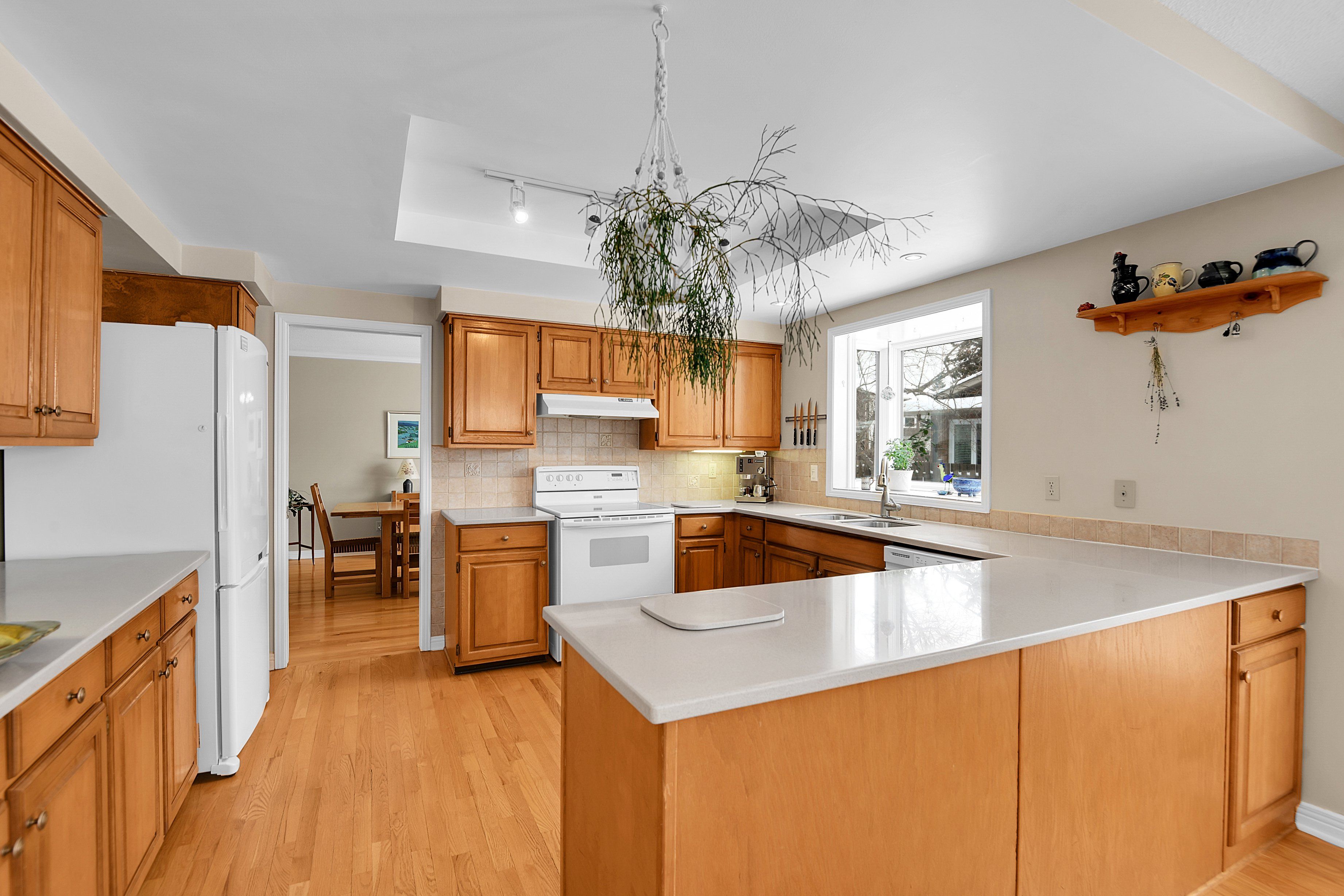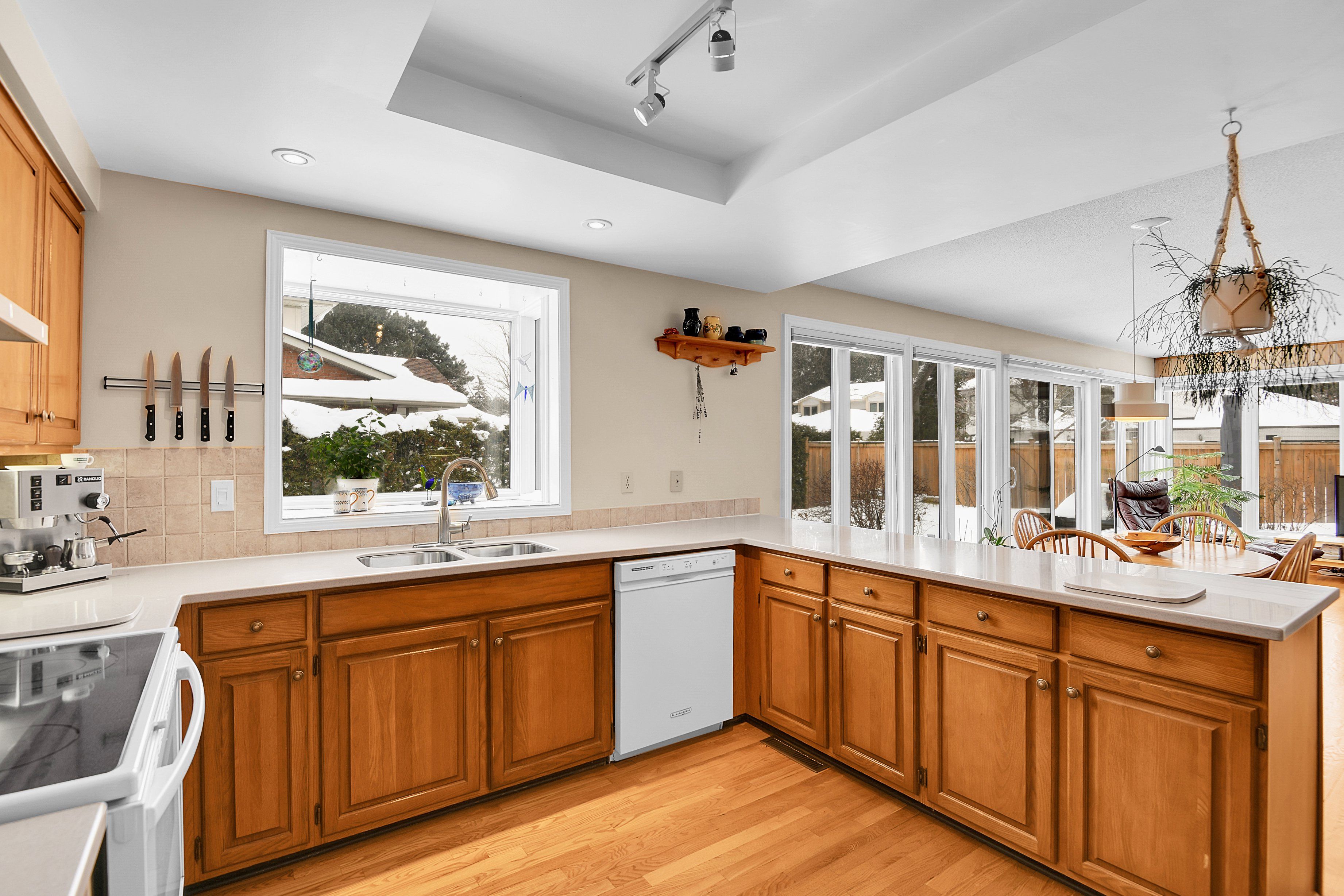 Welcome to this meticulously maintained home, beautifully positioned on a corner lot on a quiet street in the sought-after community of hunt club woods. Thoughtfully landscaped and equipped with an irrigation system, the outdoor spaces have been carefully cultivated over years of attention and heart, creating a peaceful and private setting. Inside, the main level offers hardwood flooring, a warm and inviting family room with a wood-burning fireplace insert, and a bright eat-in kitchen featuring corian countertops and a bay window overlooking the garden. Practical touches include main-level laundry conveniently located off the side-door entrance, custom blinds on the main floor, and a wet bar in the family room. Four bedrooms are located on the second level, including the spacious primary retreat, which features a walk-in closet and a beautifully renovated 4-piece ensuite with heated flooring. An additional bedroom on the lower level provides flexible space for guests, a home office, or extended family. Extensive updates provide peace of mind, including a new pressure-treated pine fence, triple-glazed windows, exterior siding that was recently replaced with durable james hardie board siding, painted garage doors and stucco, and new gutters with covers, offering long-term, low-maintenance living. Ideally located minutes from hunt club golf course, steps to walking paths, close to parks, schools, shopping, dining, transit, and major commuting routes, this move-in-ready home combines comfort, quality, and an exceptional location.