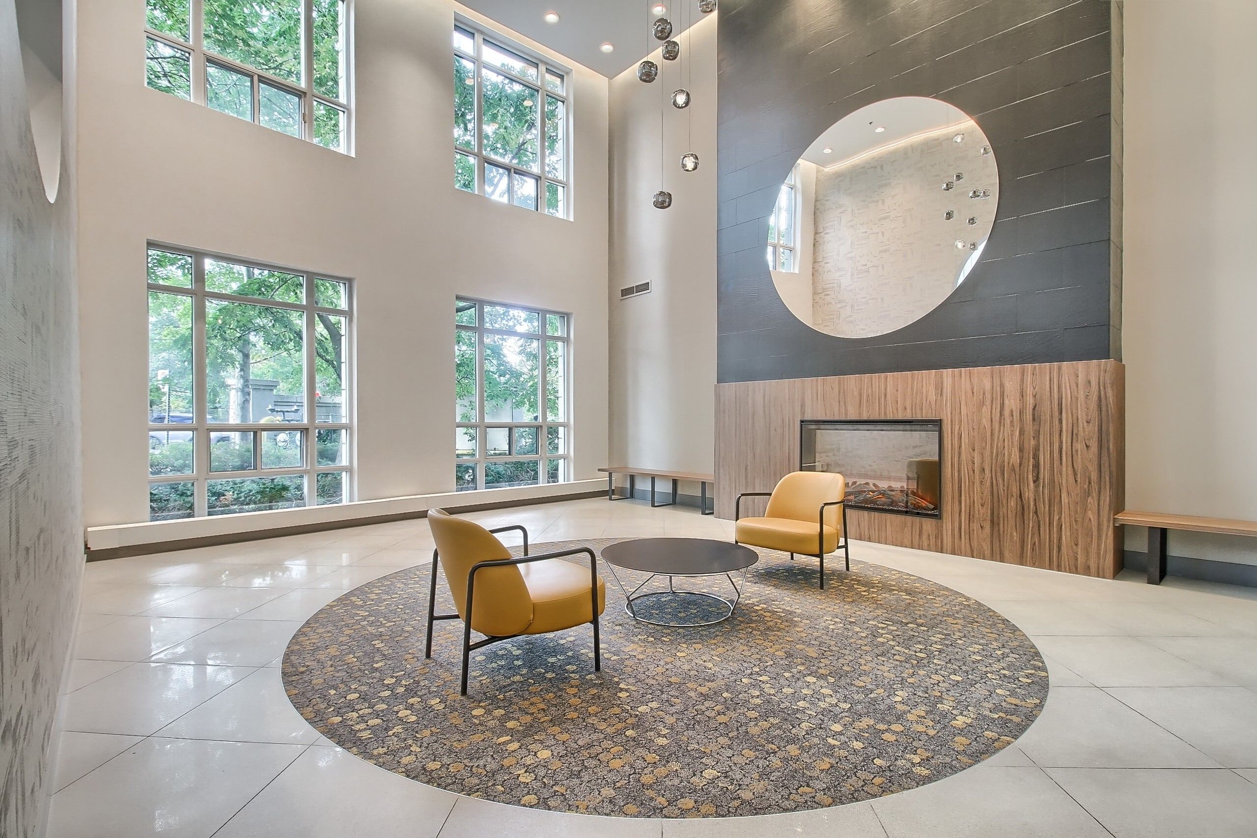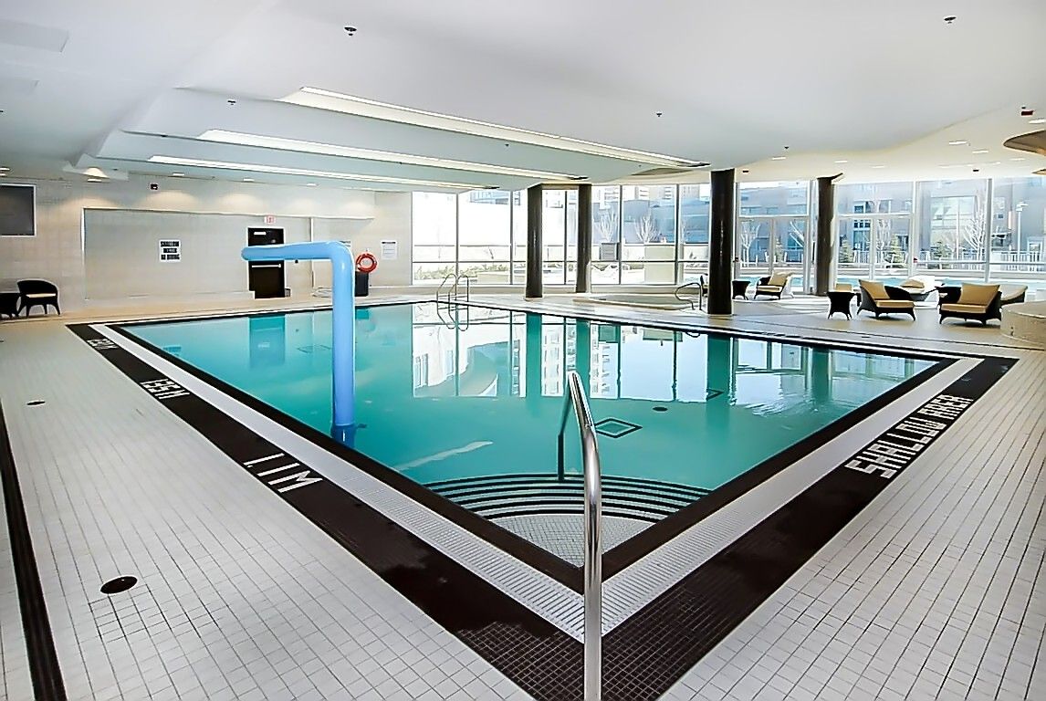 • Building amenities include pool, gym, library, and more for active living.