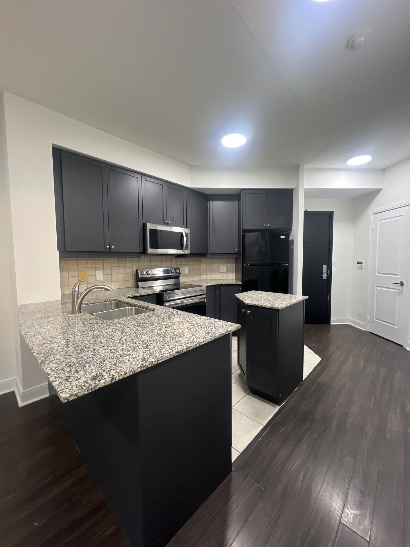 Welcome to unit 1107 at 90 absolute ave - a bright and modern 1-bedroom plus den condo available for lease in the heart of mississauga. This open-concept unit features newly painted cabinetry and has been freshly painted and professionally cleaned throughout, along with a centre island and granite countertops. The enclosed den with sliding doors offers flexible use as a second bedroom, home office, or multi-purpose space. Enjoy access to premium amenities including a full fitness centre, indoor pool, sauna, basketball and squash courts, and 24-hour concierge. Unbeatable location steps to square one, transit, restaurants, shopping, sheridan college, and major highways. Includes one underground parking space and one locker.