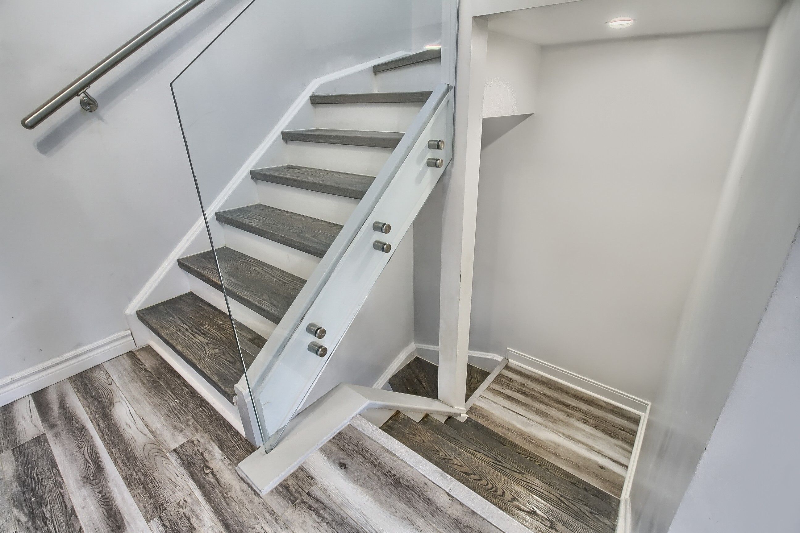 • Renovated three-level layout with modern finishes and laminate flooring.