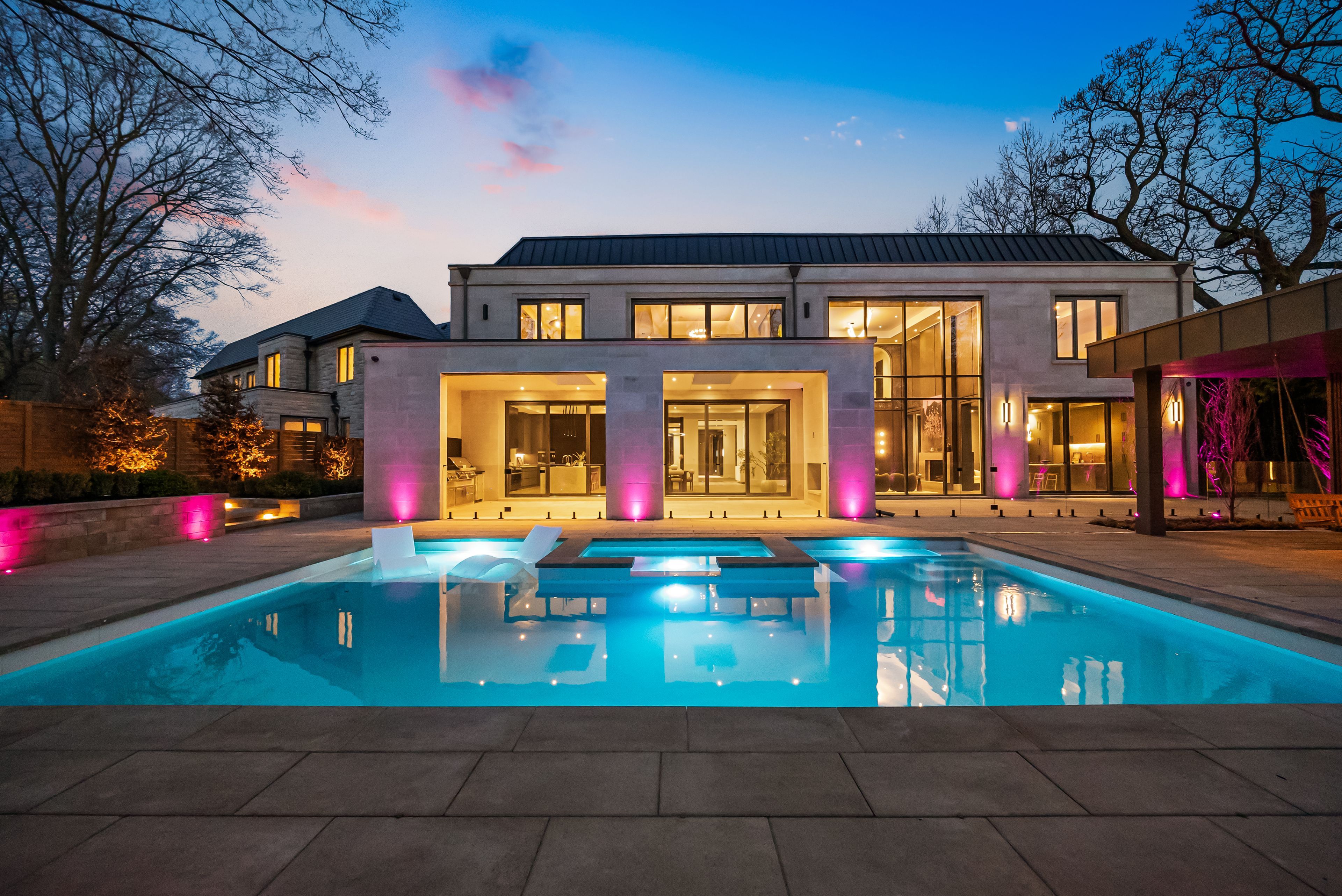 Bespoke architectural estate designed by acclaimed architect richard wengle & interior virtuoso carey mudford, this extraordinary residence represents the pinnacle of luxury living in toronto's prestigious the bridle path. Tucked within a quiet pie-shaped cul-de-sac on over 15,000sf w/ a rare 120ft rear width, the home is clad in indiana limestone on all 4 elevations, blending timeless european elegance w/ contemporary grandeur. A heated drive accommodates 6+ vehicles, complemented by a remarkable 10-car subterranean garage w/heated flrs, ev charging & auto co exhaust. Soaring 11ft ceilings, heated marble flrs, a double-entry elevator servicing all 4 levels, & custom arched doors set a tone of refined sophistication. The formal living room, anchored by a kingsman marble fireplace, flows into an elegant dining rm w/a glass-enclosed wine feature & lime-washed venetian plaster walls. The showpiece kitchen is centered around a dramatic 12ft valentino quartzite island w/ brass inlays, supported by a full suite of miele appl. In both main & prep kitchens, custom millwork & a sculptural brass hood. Stunning double-height family rm w/flr-to-ceiling glass opens to a bar lounge, while oversized sliding doors create seamless indoor-outdoor living. The 2,000sf primary retreat occupies its own wing, featuring textured leather walls, fireplace, private balcony, & a spa-inspired ens. W/heated marble flrs, steam shower, soaker tub, dual vanities & toilets, & separate dressing lounges beneath a skylight. 4 additional bedrooms each offer private ens. & custom closets. Lower level is dedicated to leisure, w/ heated flrs, marble wet bar, smart-glass garage viewing, soundproof theatre, guest suite, w/o, & a wellness zone w/gym, sauna & steam room. Resort-style grounds showcase a saltwater pool w/tanning ledge, hot tub, covered lounges w/fireplaces, cabana w/ changeroom & bath, & a fully equipped limestone outdoor kitchen. Just moments to the granite club, top schools, golf & downtown.