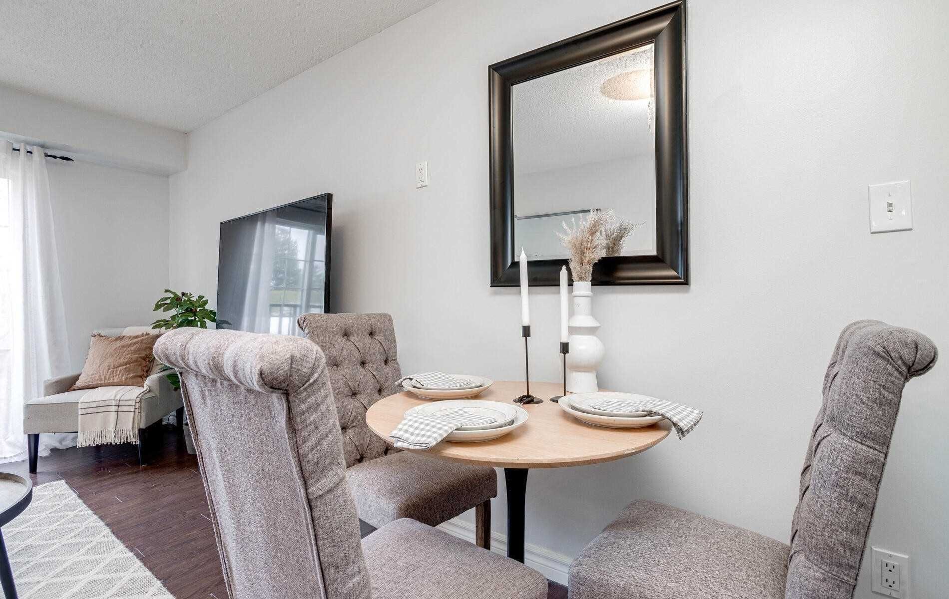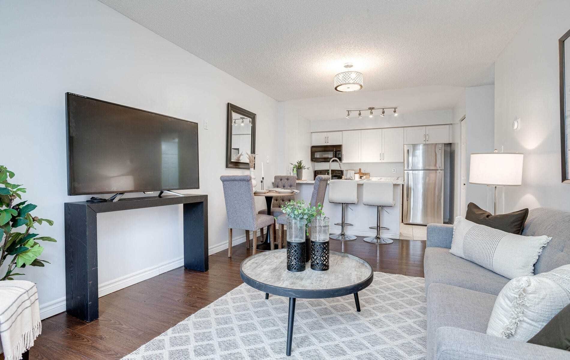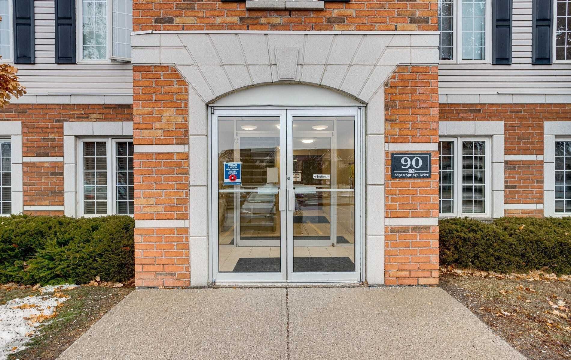 Welcome to unit 109 at 90 aspen springs drive - a spacious main-floor 2-bedroom condo in the sought-after aspen springs community. This bright suite features a functional open-concept living and dining area, a modern updated kitchen with stainless steel appliances and a breakfast bar, and easy access to a private terrace with peaceful greenspace views. Enjoy laminate flooring throughout, a generous primary bedroom with a walk-in closet, a versatile second bedroom, and the convenience of in-suite laundry. Ideally located close to shopping, schools, parks, restaurants, public transit and the go bus, with quick access to hwy 401 and 407 for commuters.