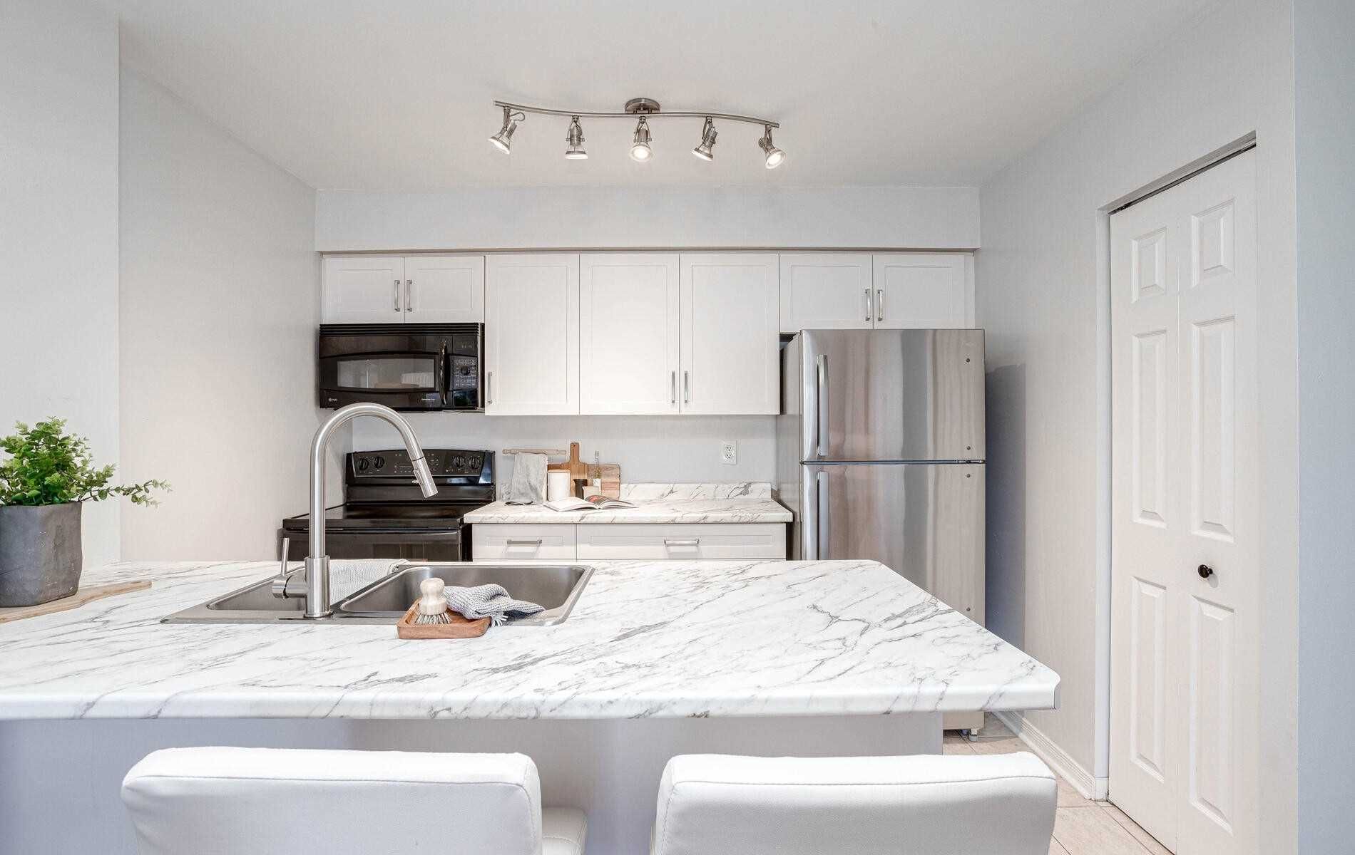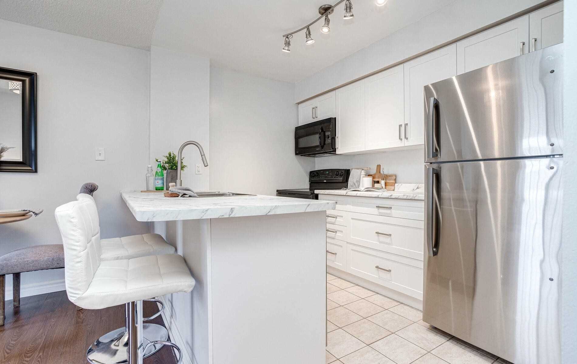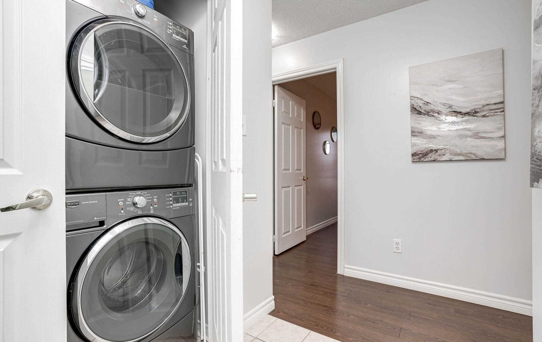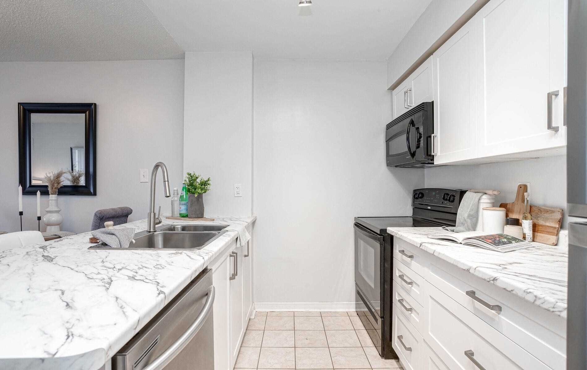 Welcome to unit 109 at 90 aspen springs drive - a spacious main-floor 2-bedroom condo in the sought-after aspen springs community. This bright suite features a functional open-concept living and dining area, a modern updated kitchen with stainless steel appliances and a breakfast bar, and easy access to a private terrace with peaceful greenspace views. Enjoy laminate flooring throughout, a generous primary bedroom with a walk-in closet, a versatile second bedroom, and the convenience of in-suite laundry. Ideally located close to shopping, schools, parks, restaurants, public transit and the go bus, with quick access to hwy 401 and 407 for commuters.