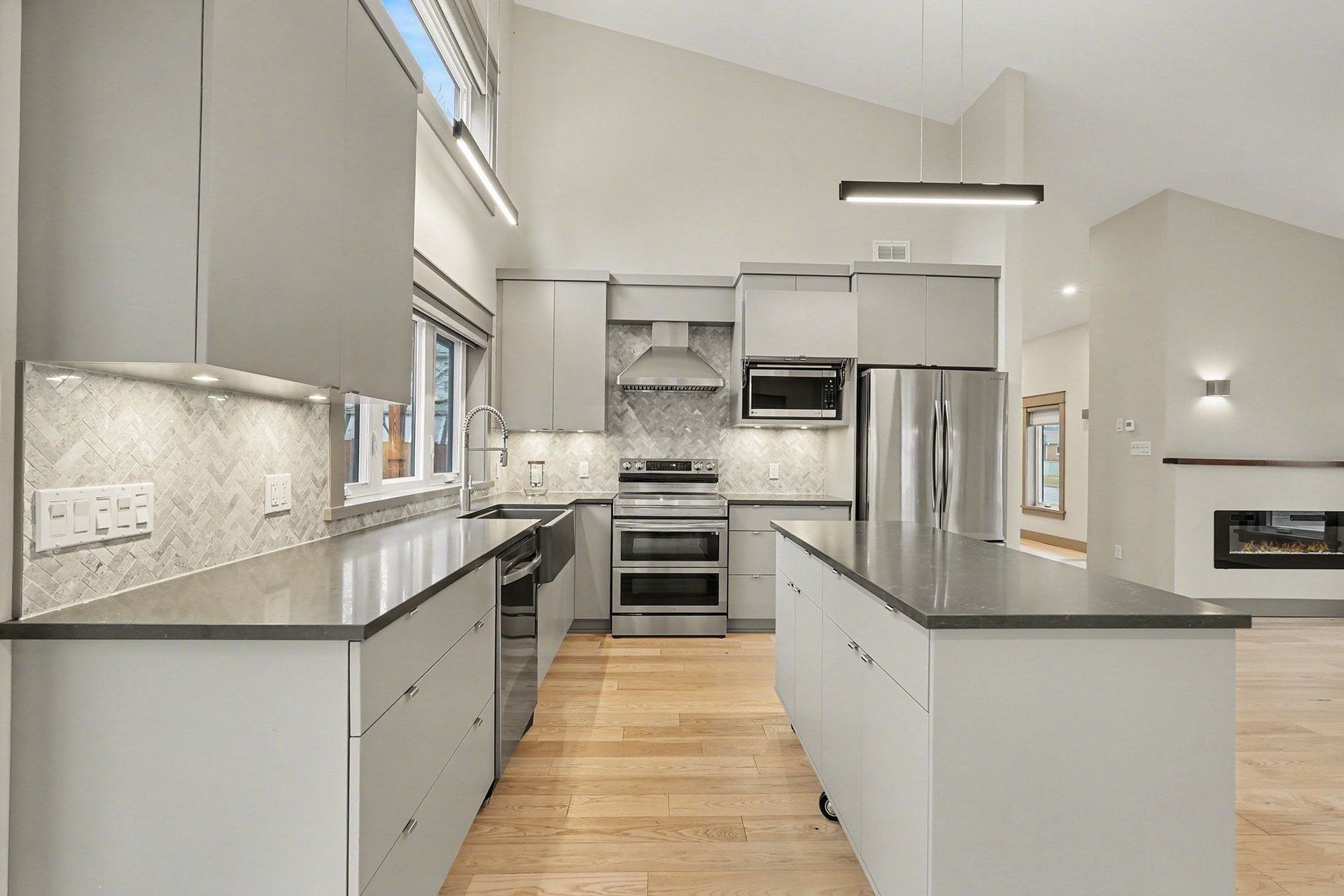 • Bright open-concept layout with vaulted ceilings and custom chef's kitchen.