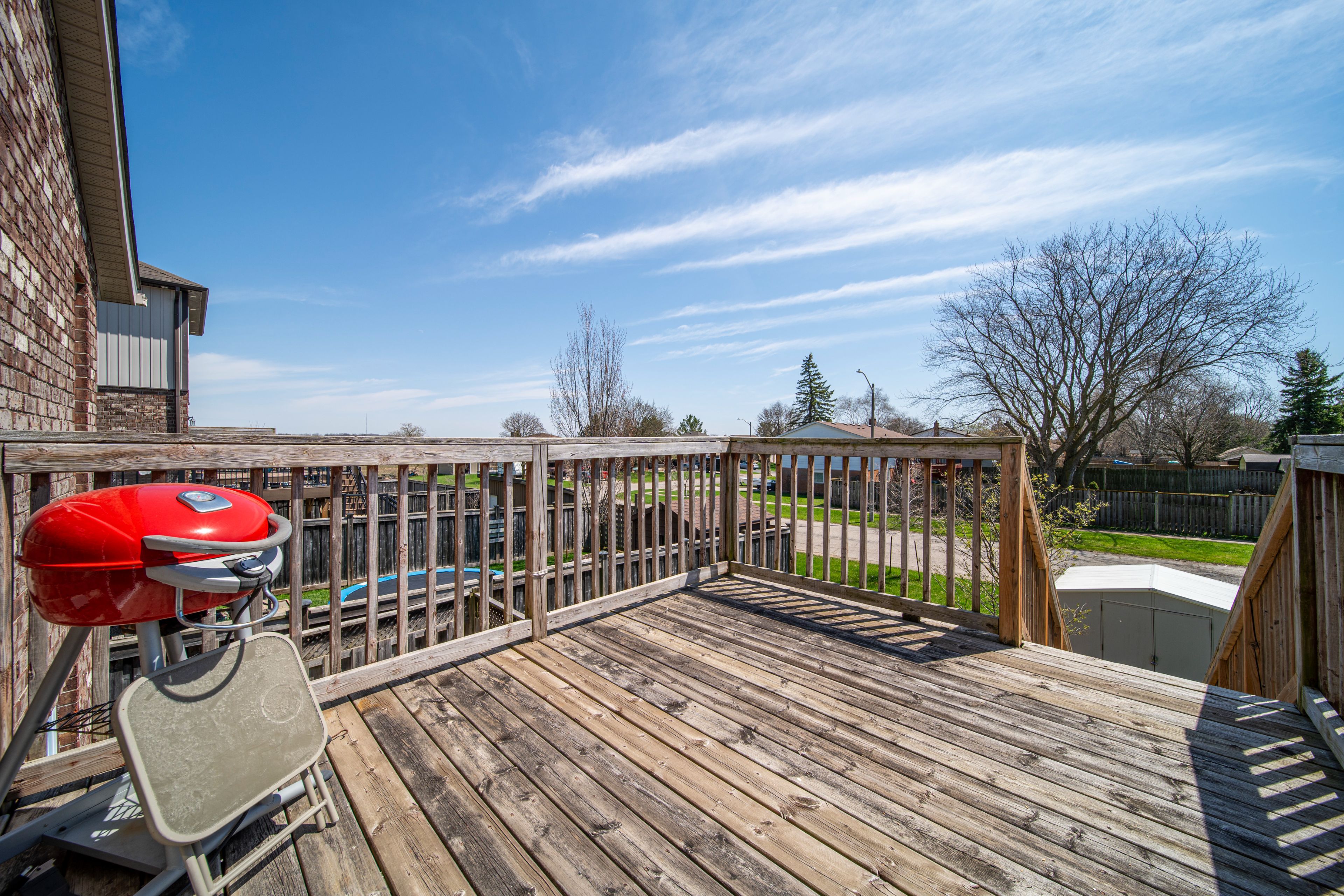 • Thoughtfully designed backyard with a deck, patio, and storage shed.
