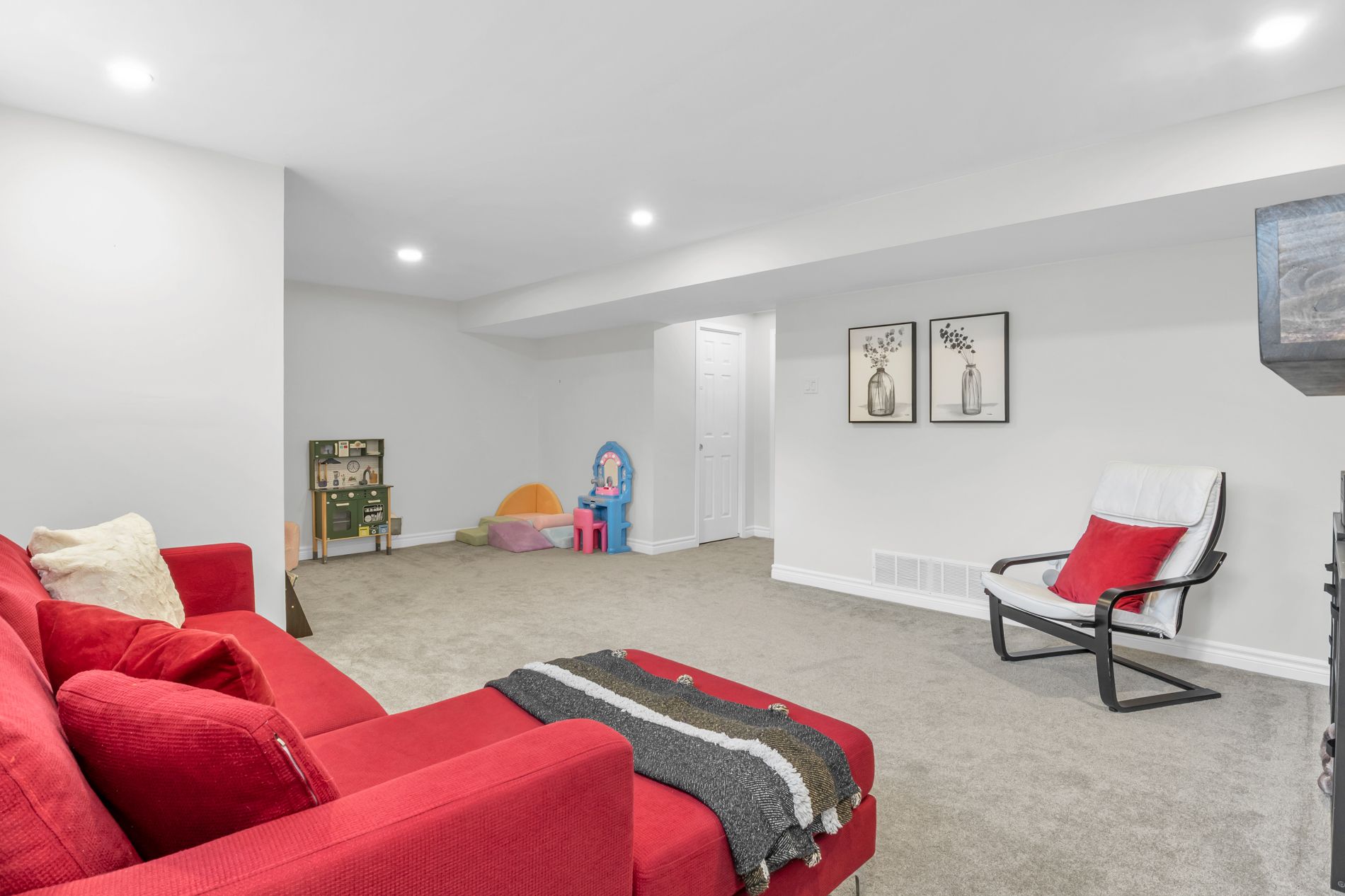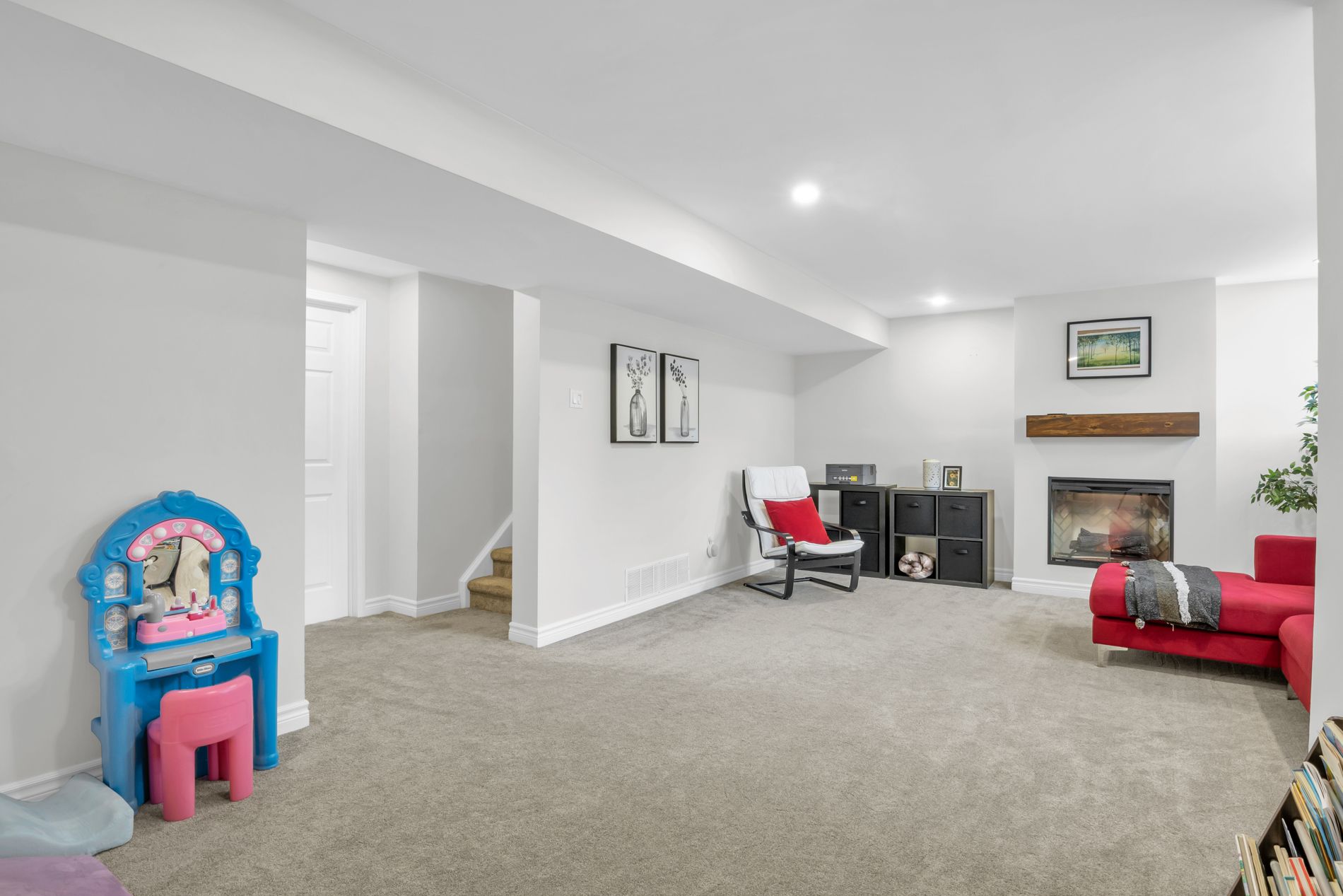 • Finished basement with natural light and cozy fireplace for additional living space.