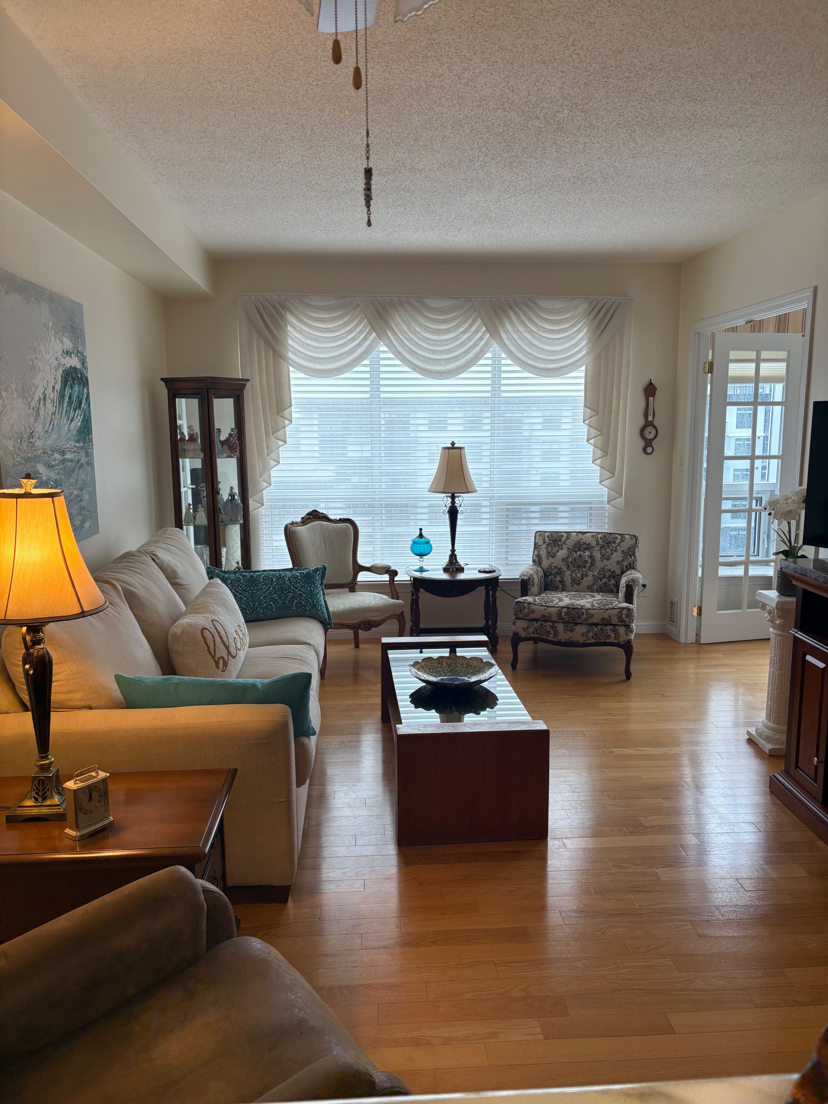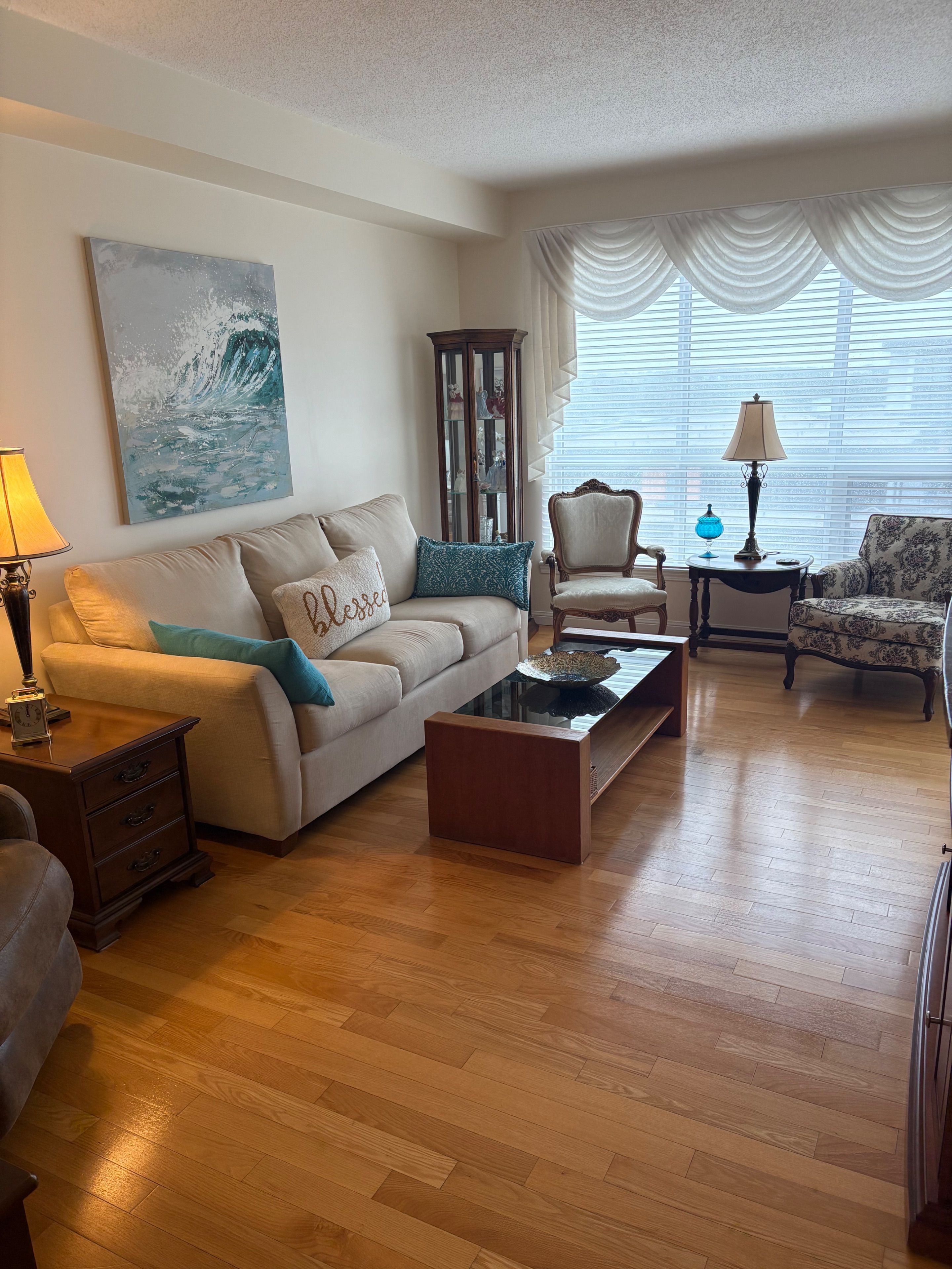 Client remarksthe terraces of heritage square is a adult over 60+ building. These buildings have lots to offer, party rooms, library, computer room and a second level roof top gardens. Ground floor lockers and parking. |these buildings were built with wider hallways with hand rails and all wheel chair accessible to assist in those later years of life. It is independent living with all the amenities you will need. Walking distance to the library, restaurants and shopping. Barrie transit stops right out front of the building for easy transportation. This allandale suite is 1 bedroom with ensuite bath with a one piece shower with seat and safety bars. There's also a convenient 2 piece powder room across from the den. The kitchen overlooks the living rooms with convenient look through. The kitchen has updated counters and a separate panty and extra pots and pan drawers and counter. Ceramics in the foyer through to the kitchen. Hardwood flooring throughout the rest of the suite. In suite laundry with added storage. Open house tour every tuesday at 2pm please meet in lobby of 94 dean ave