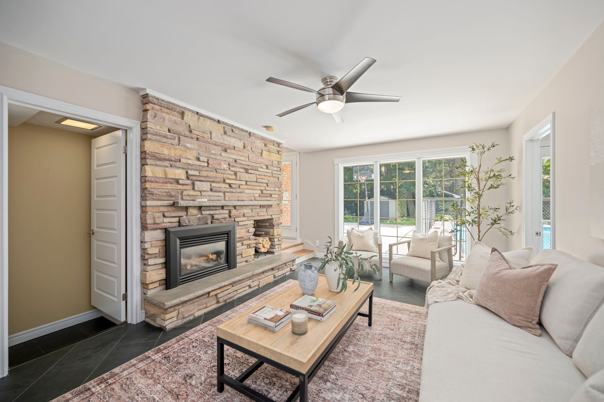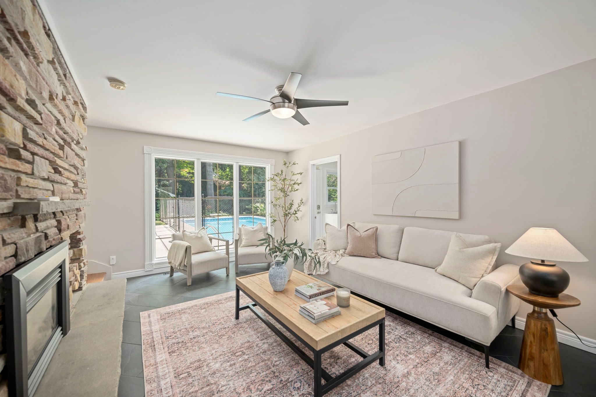• Private backyard oasis with a heated saltwater pool for summer fun.