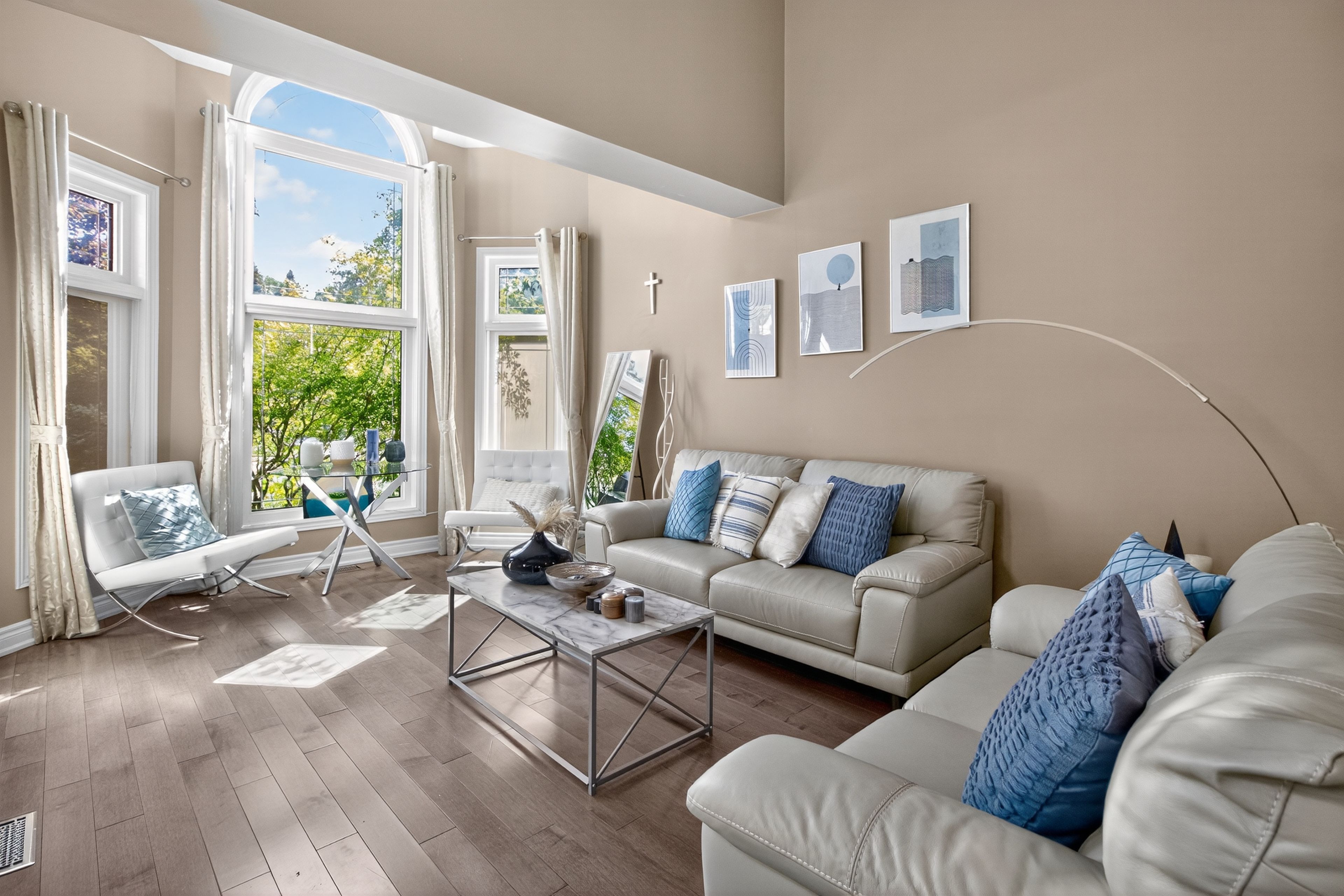 • Energy-efficient windows and designer lighting add elegance throughout.