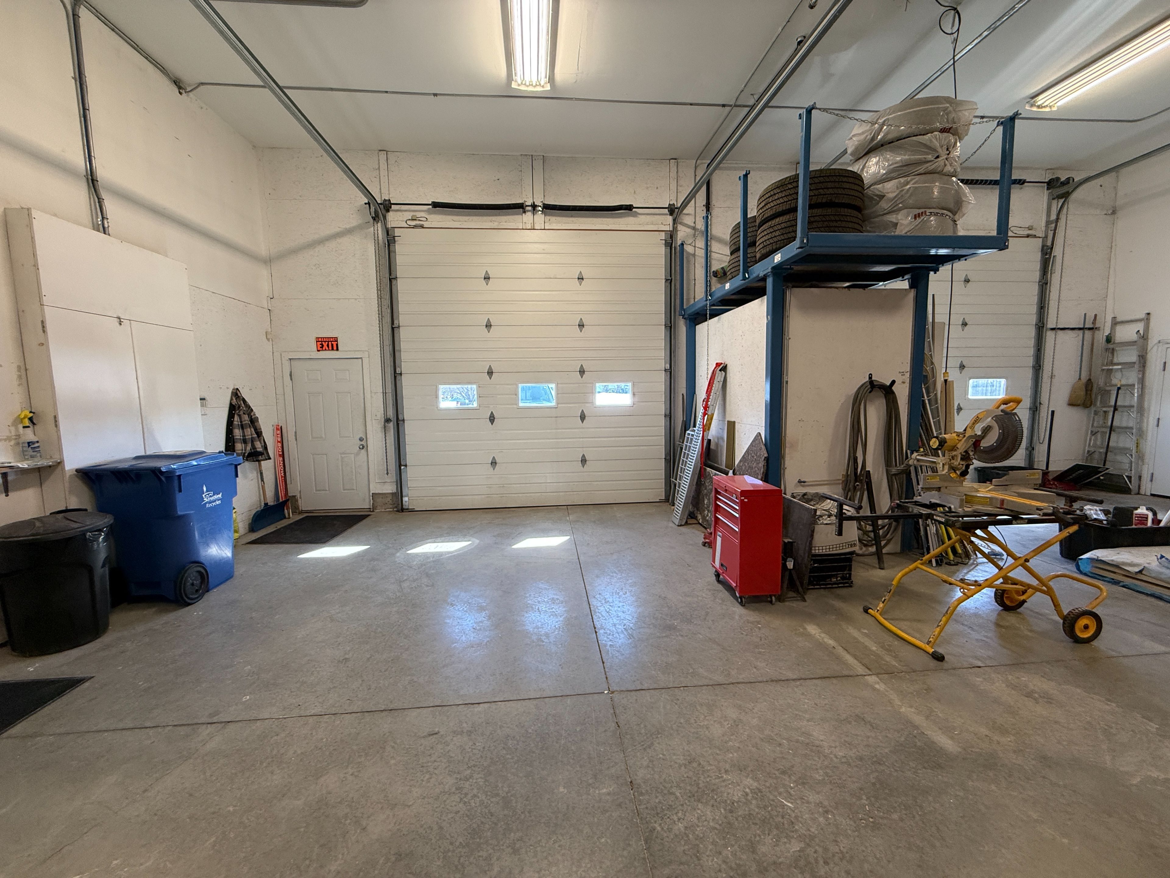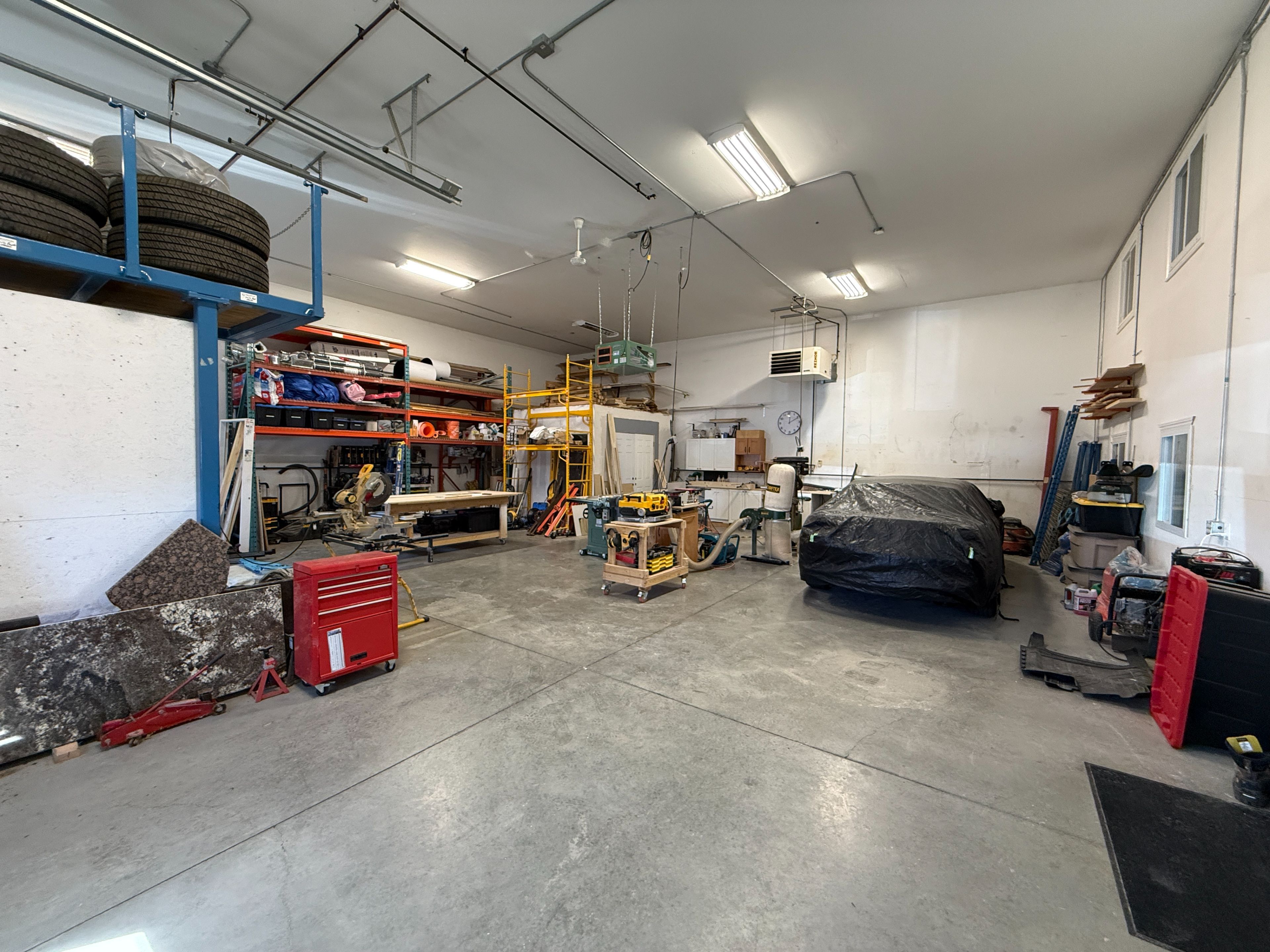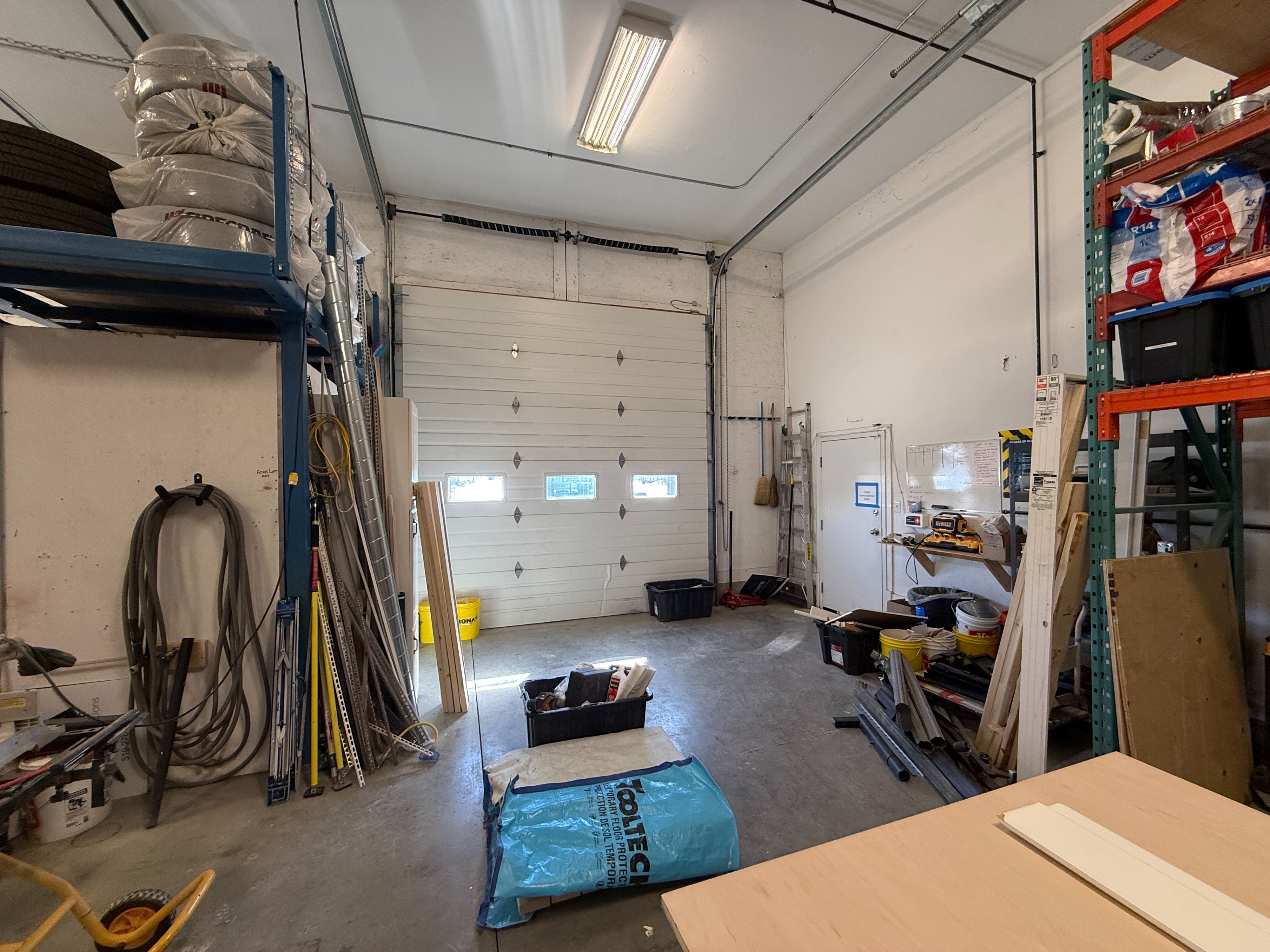 • Approximately 1610 sq ft of high-ceiling shop space available.