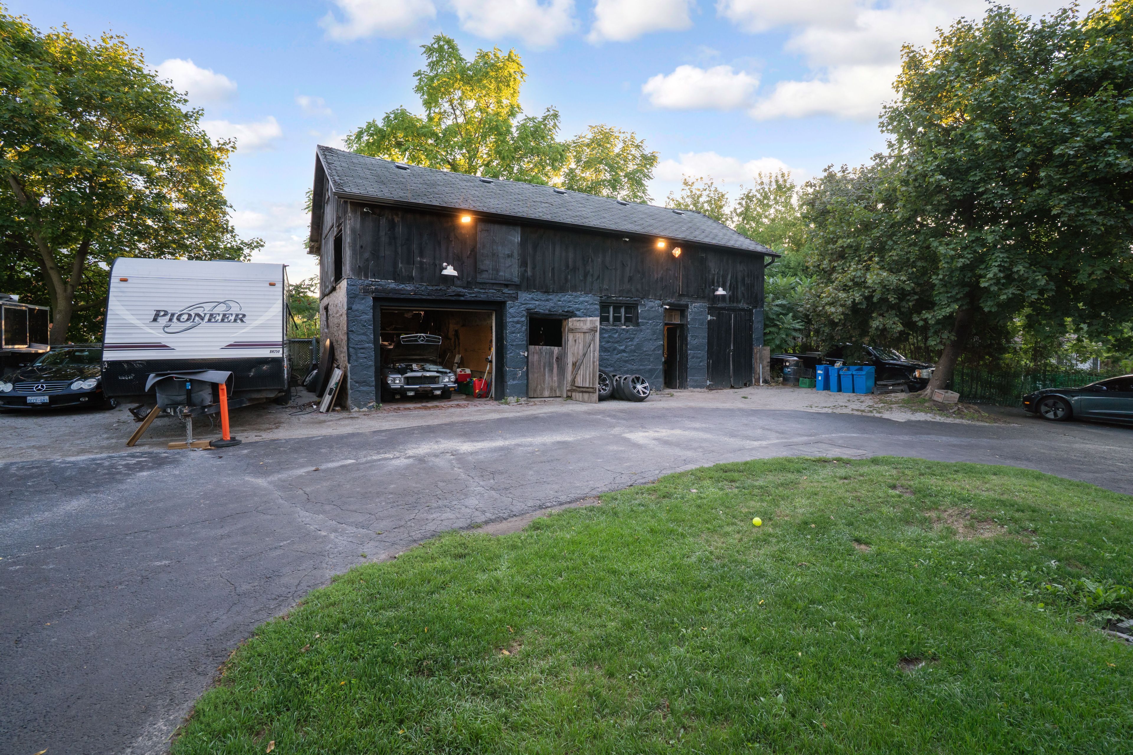 Mix-use property zoned c-4 hamlet commercial allows multiple residential & commercial uses. Currently 3 separate units. Basement apartment, main floor has 3 bedrooms with kitchen & bath. 2nd floor comes with open concept kitchen bedroom, living area walkout to terrace. Circular driveway, stone barn with 2 car garage with extra storage on 2nd floor, fully fenced, ample of parking space, backup generator. Drilled well and septic, 200amp power supply. Ample of opportunities when it comes to zoning allowance and can be great income potential property. Vacant possession will be provided.
