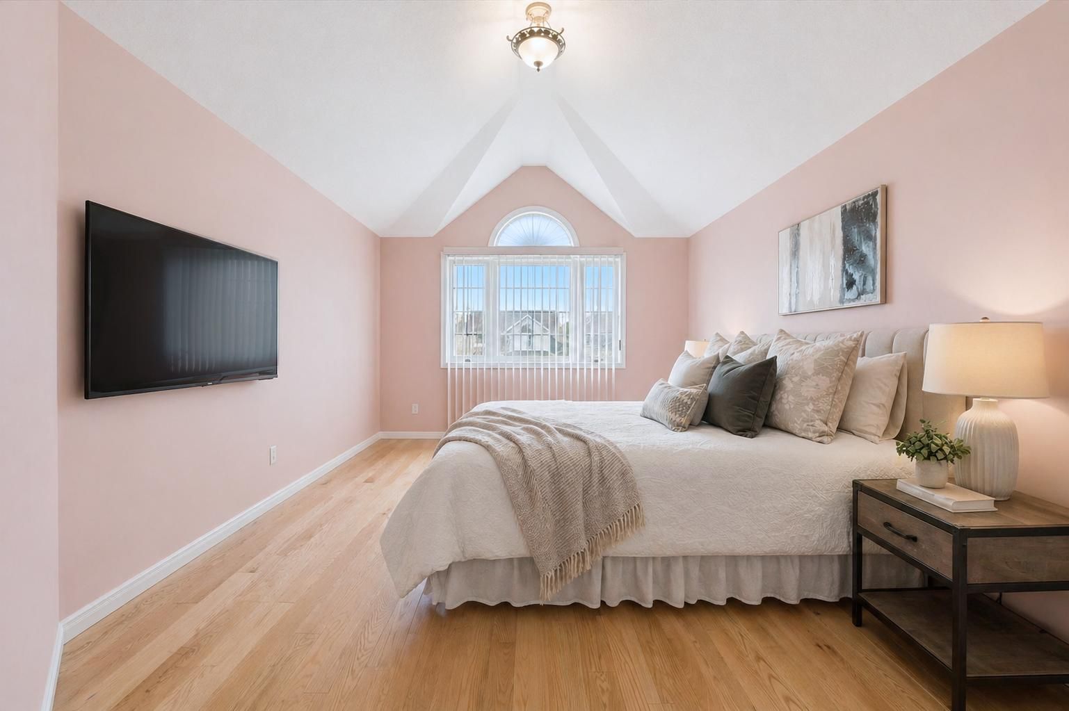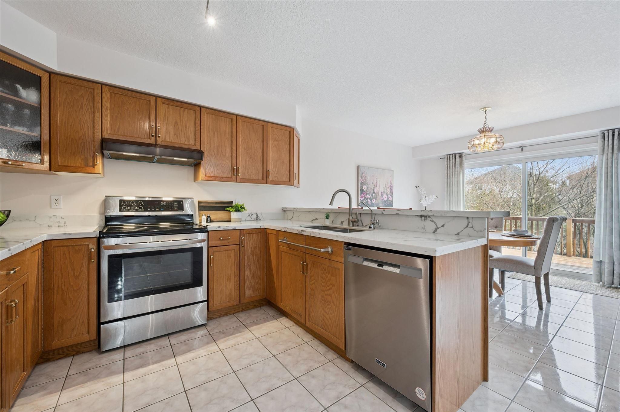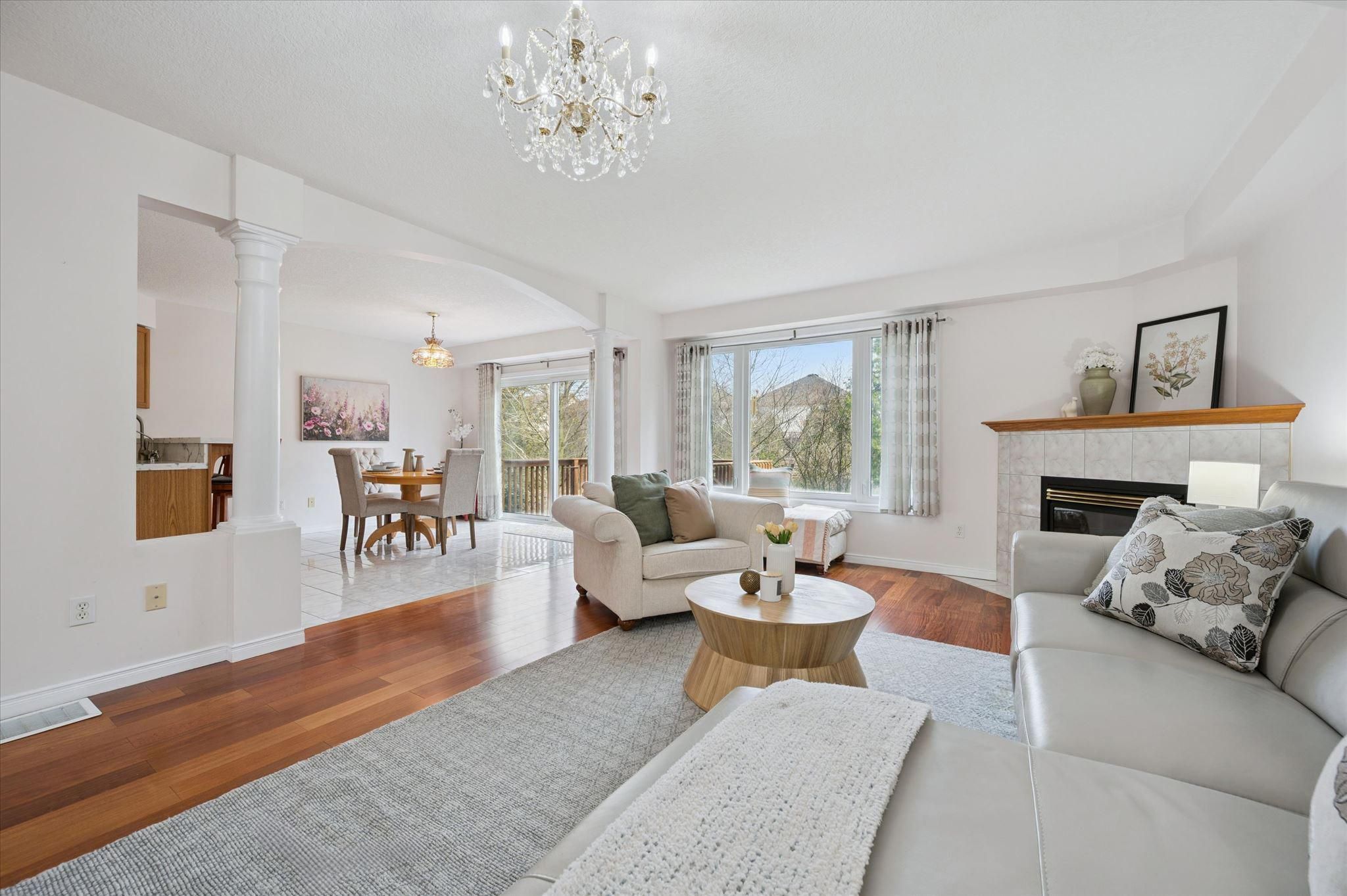 Spacious 3-bdrm home backing onto greenspace on quiet street in sought-after westminster neighbourhood! This home is thoughtfully designed, architecturally distinctive & offers a functional & unique layout. Curb appeal stands out w/mature trees, 2-car garage & front porch. Step inside to grand 2-storey foyer leading to living room w/hardwood floors, window overlooking greenspace & corner fireplace. Arched opening leads to eat-in kitchen w/quartz counters, s/s appliances, ample cabinetry & 2-tier breakfast bar. Bright eat-in area has large sliding doors that lead to back deck creating seamless indoor-outdoor flow. Large rear windows showcase tree-lined views. 2pc bath w/quartz counter & mudroom w/laundry complete main level. Solid wood stairs lead up to open loft, perfect as home office, add'l living space or play area. Primary suite w/arched window & w/i closet. Ensuite w/ whirlpool tub, sep shower, skylight & updated vanity w/quartz counters. 2 add'l bdrms w/hardwood ,large windows & ample closet space. 4pc main bath w/modern vanity & skylight completes upper level. Finished bsmt w/rec room, hardwood,3pc bath & 2 oversized windows. A divider wall provides flexibility to create sep zones while the window size offers potential to convert space into add'l bdrms. Enjoy large deck overlooking the greenspace. Fenced yard offers lots of room for kids & pets to play. Home has been maintained &updated over the yrs: led lighting in bsmt & hwt 2026, washer, dryer & dw 2023, quartz counters in ensuite & main bath 2021, quartz counters in kitchen & powder room 2020, roof & furnace 2017. Backing onto marsh trail you'll have access to trails connecting to parks &schools. Walk to sir isaac brock ps (top-rated school), colonial dr park & st. Ignatius of loyola catholic school. Mins to pergola commons w/groceries, restaurants, fitness & easy access to 401. Rare opportunity to own a beautifully designed home in family-friendly neighbourhood w/unbeatable access to nature & amenities