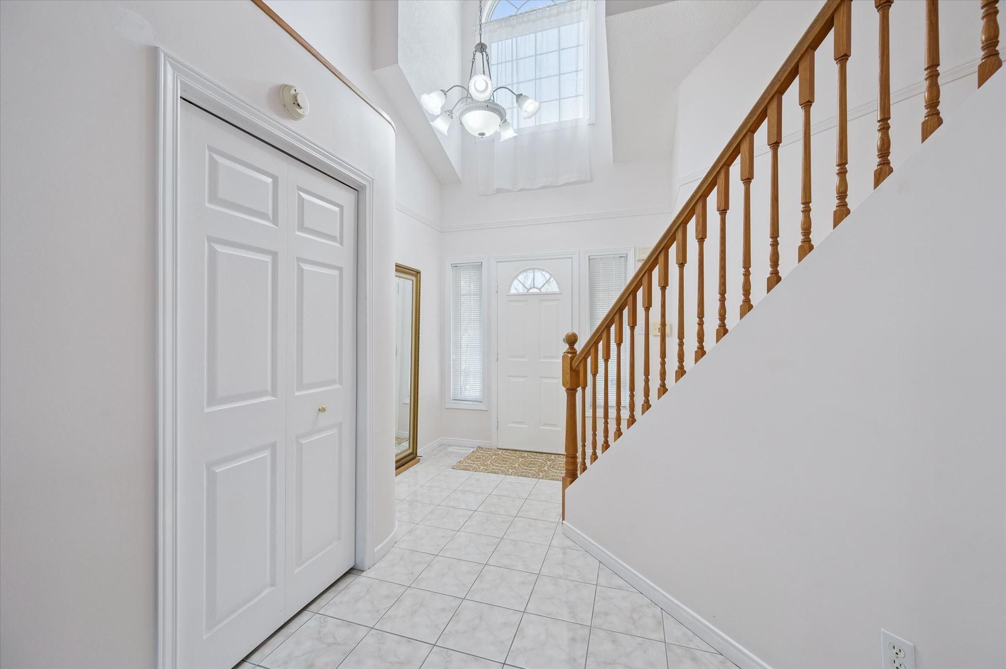 • Unique layout with grand foyer, hardwood floors, and corner fireplace.