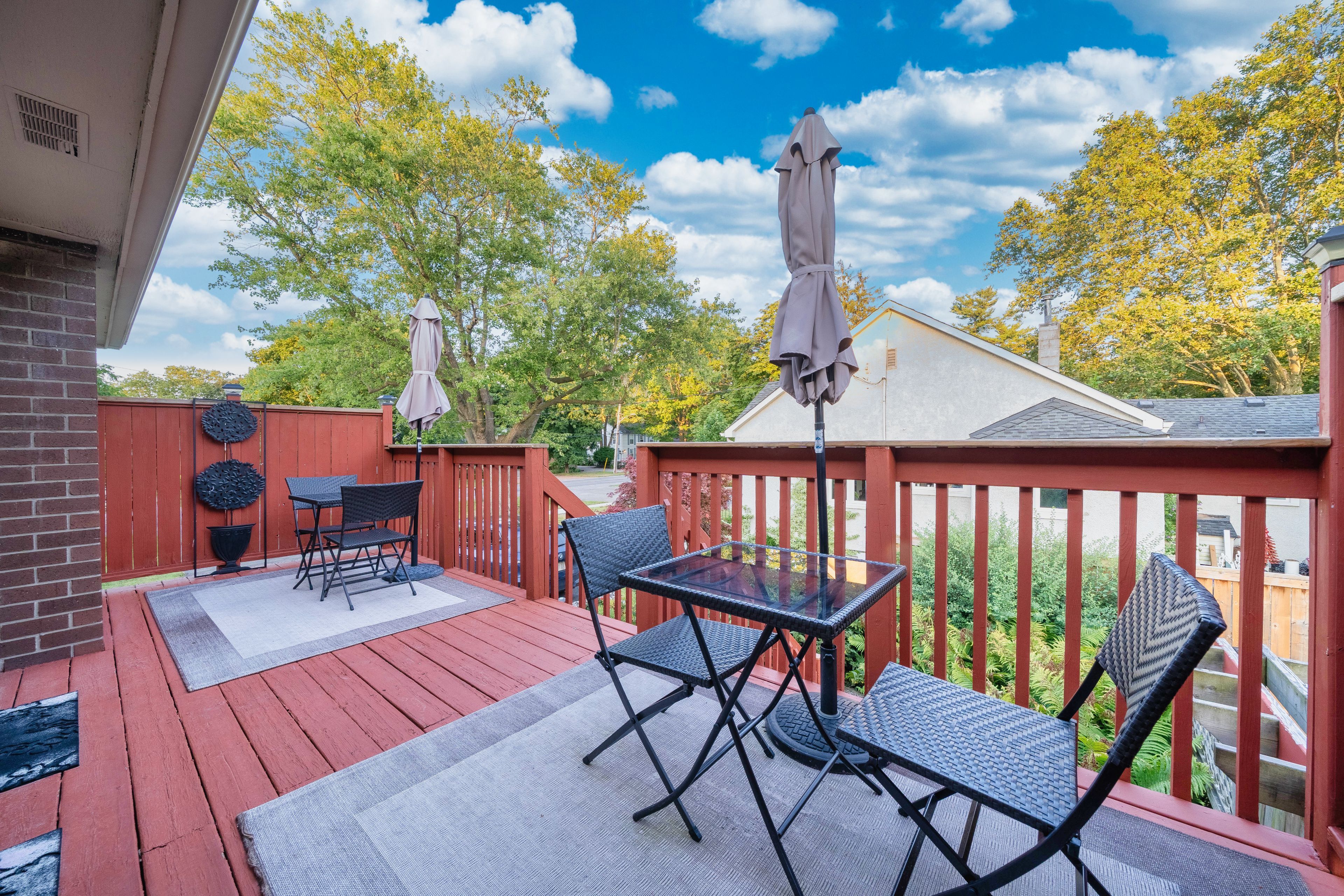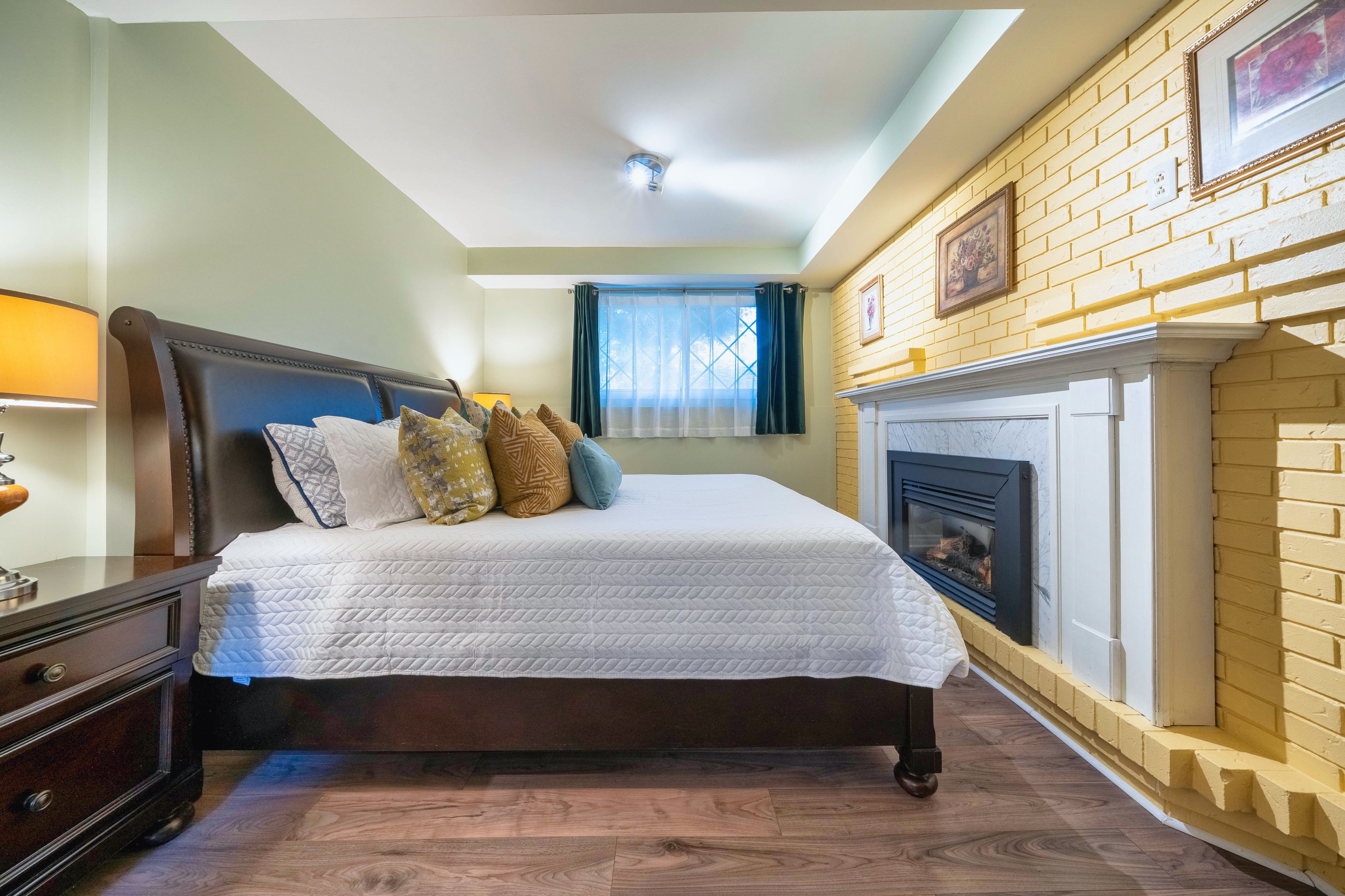 • Bright and open main level with a spacious living room and cozy fireplace.